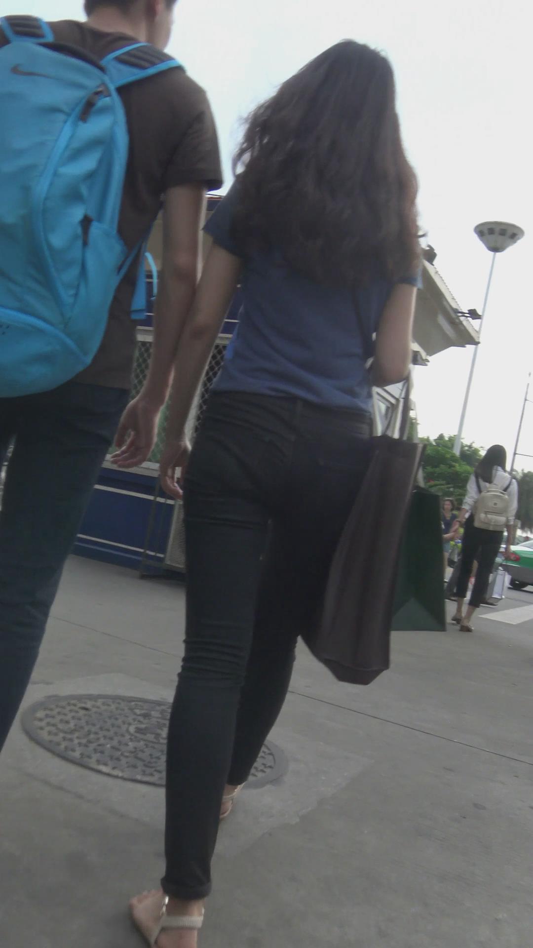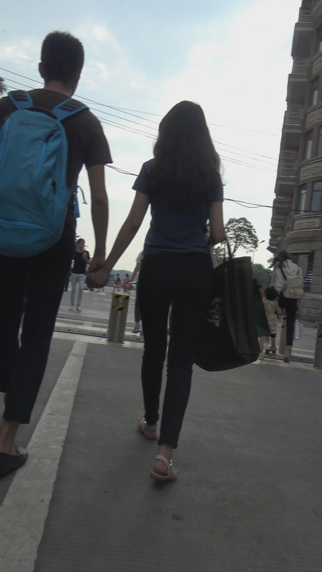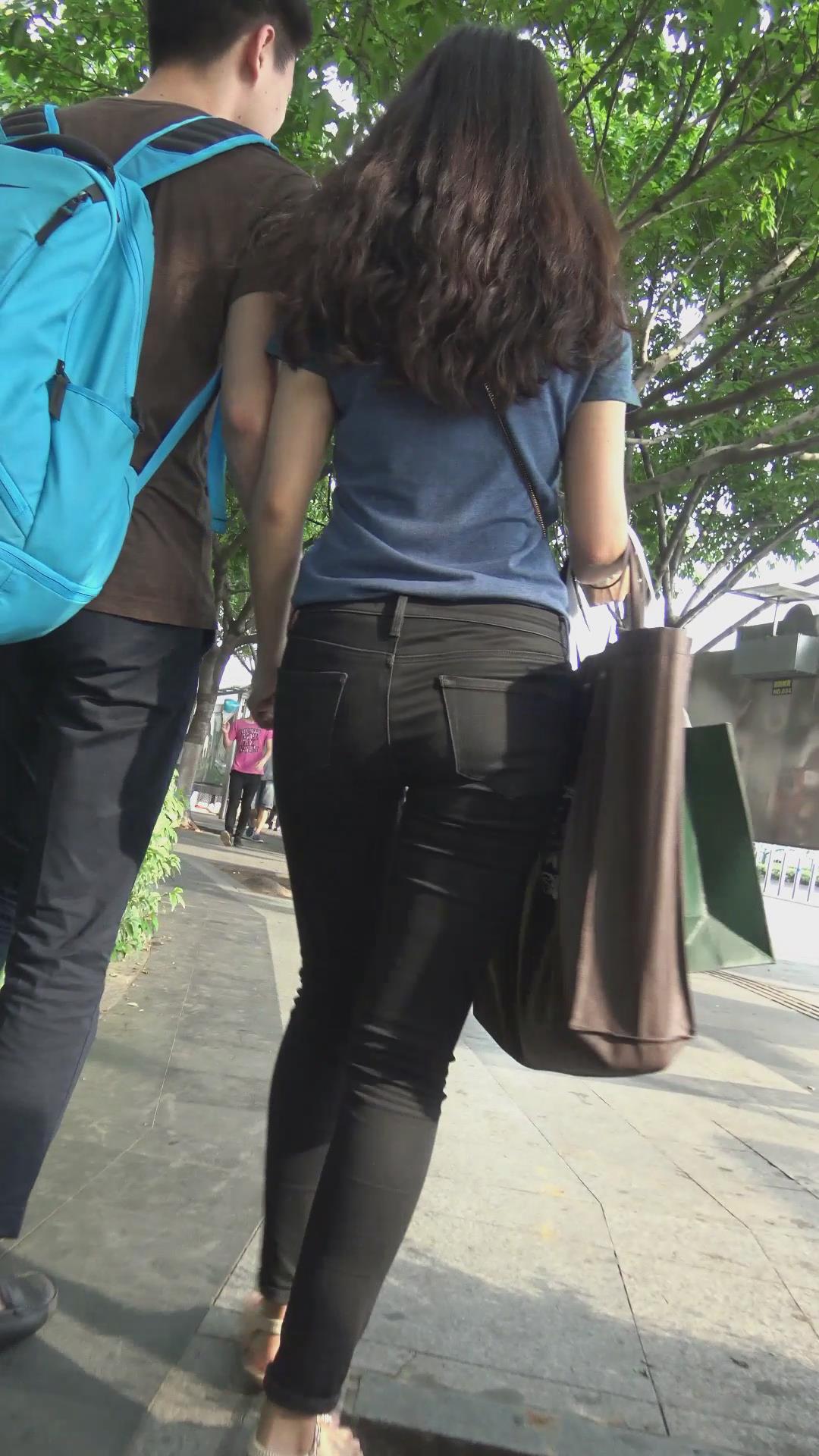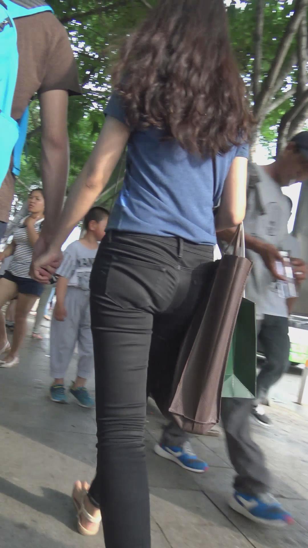 街拍苗条身材黑色紧身裤MM 编号6039