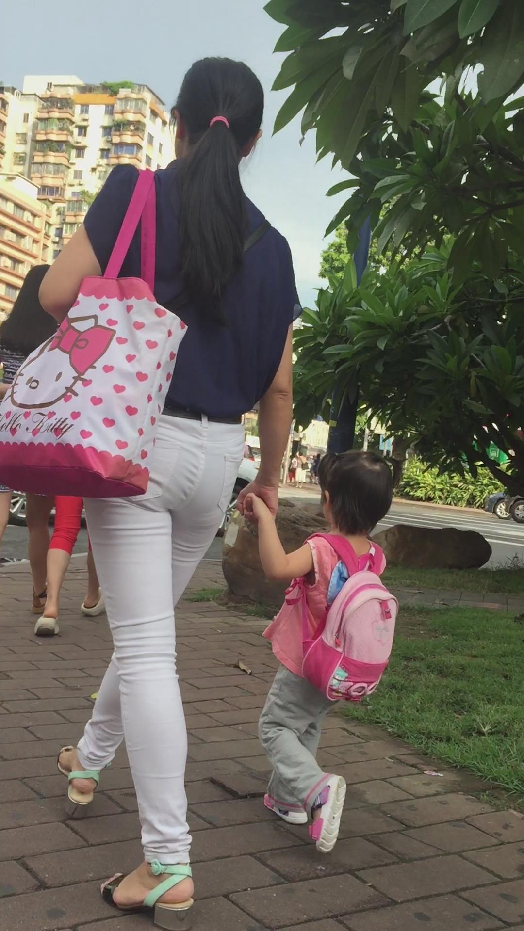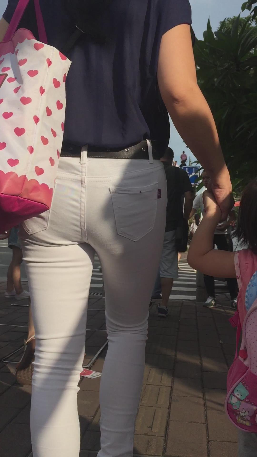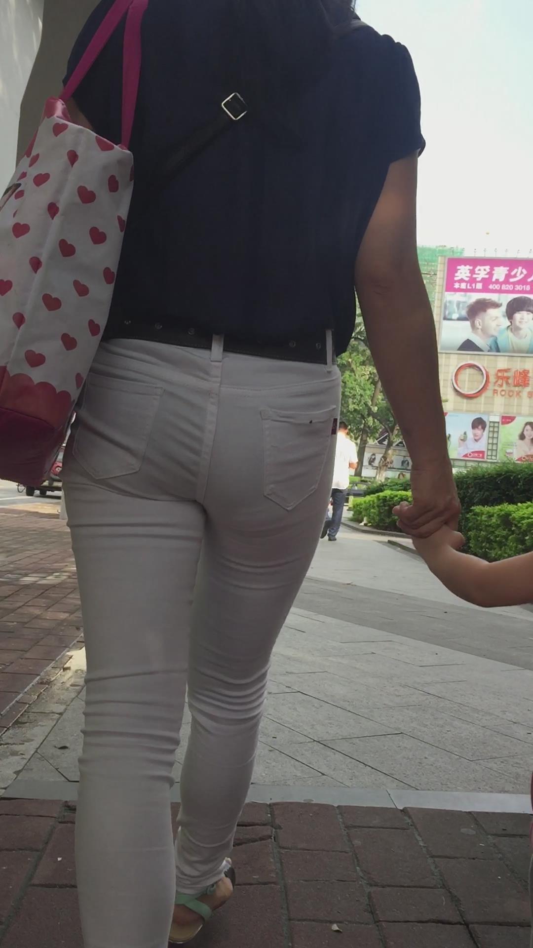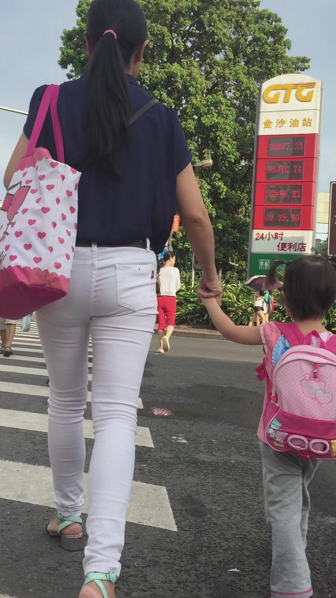 幼儿园刚接小孩回来的紧身白裤少妇 编号6056