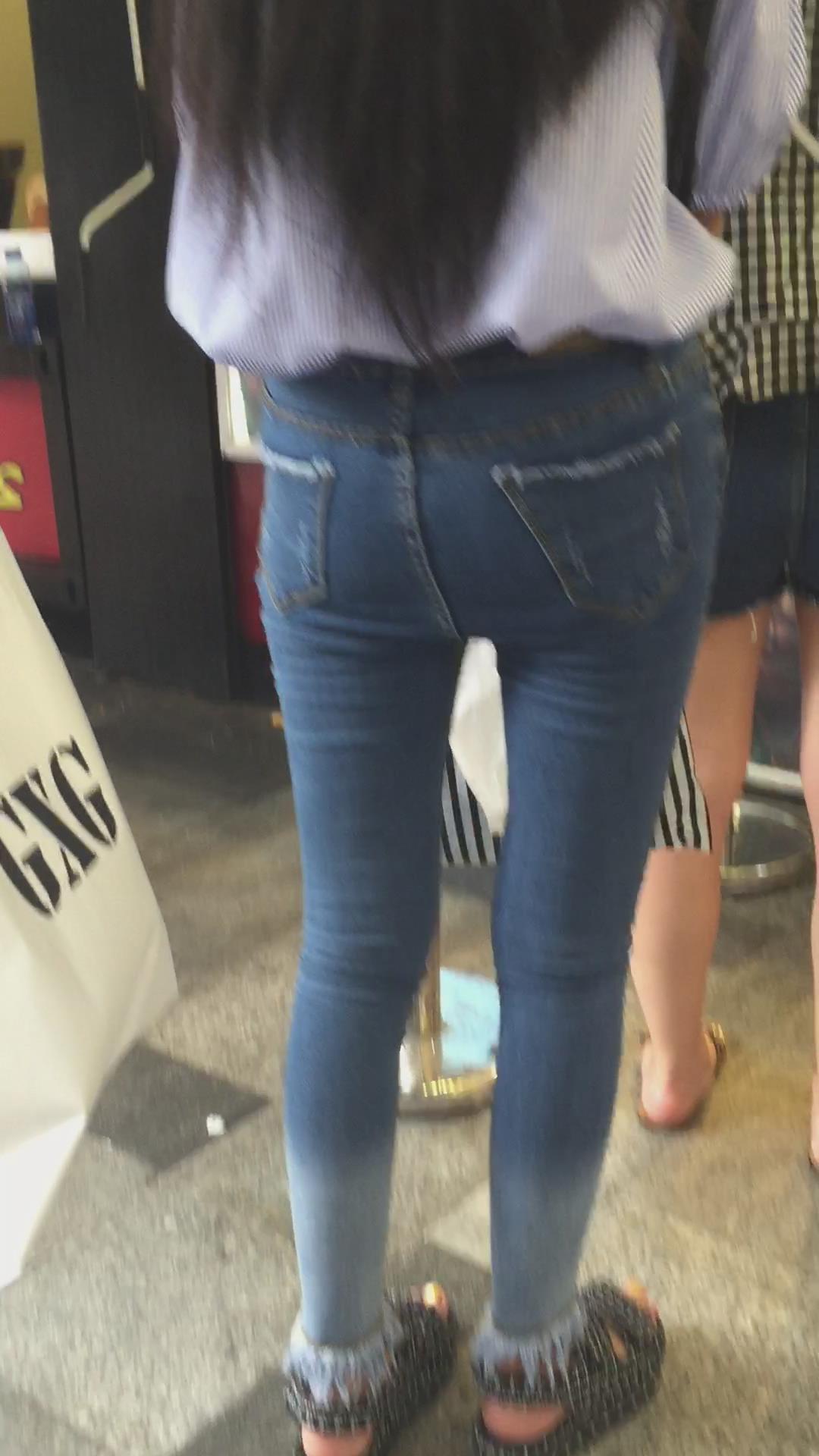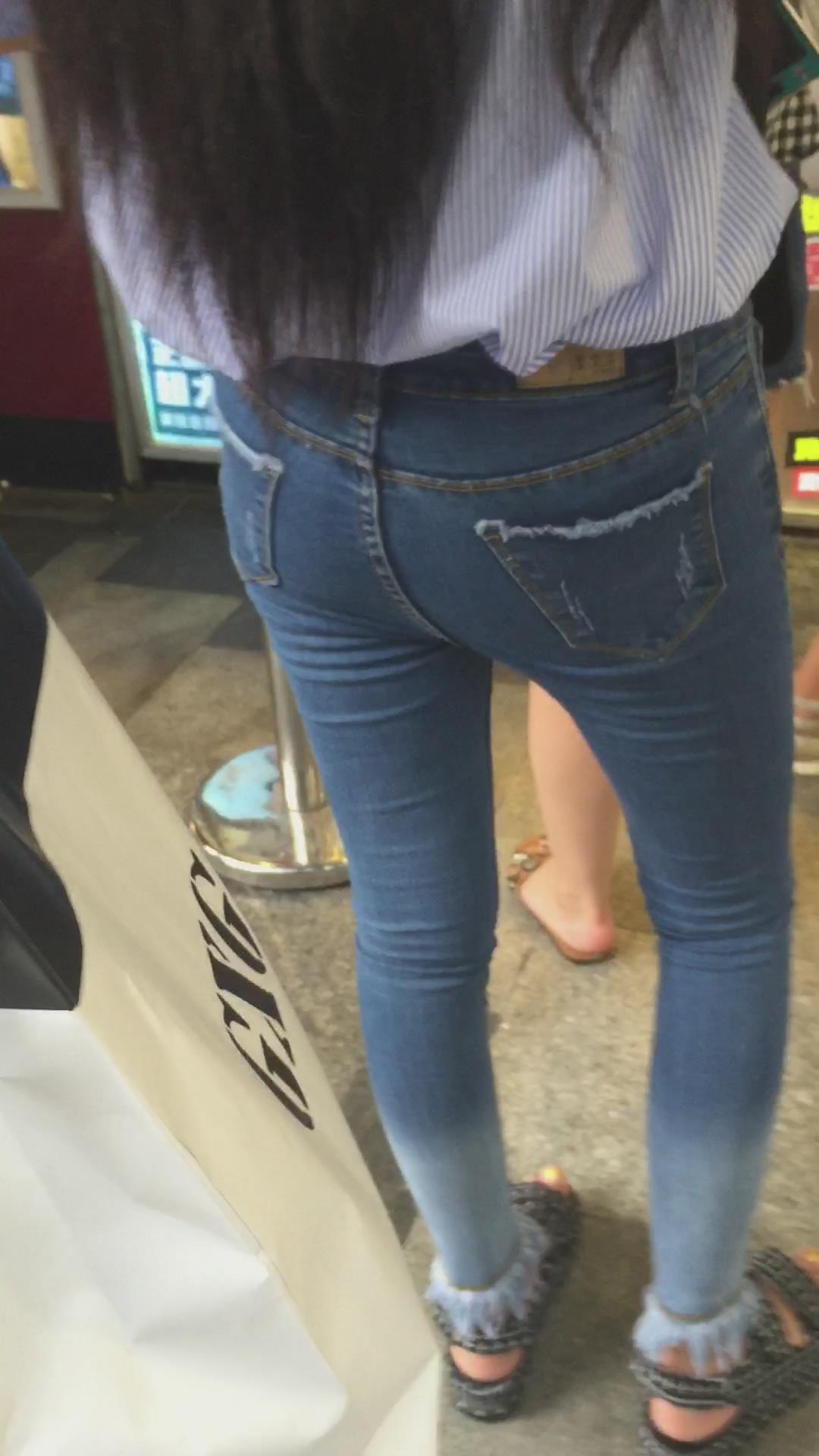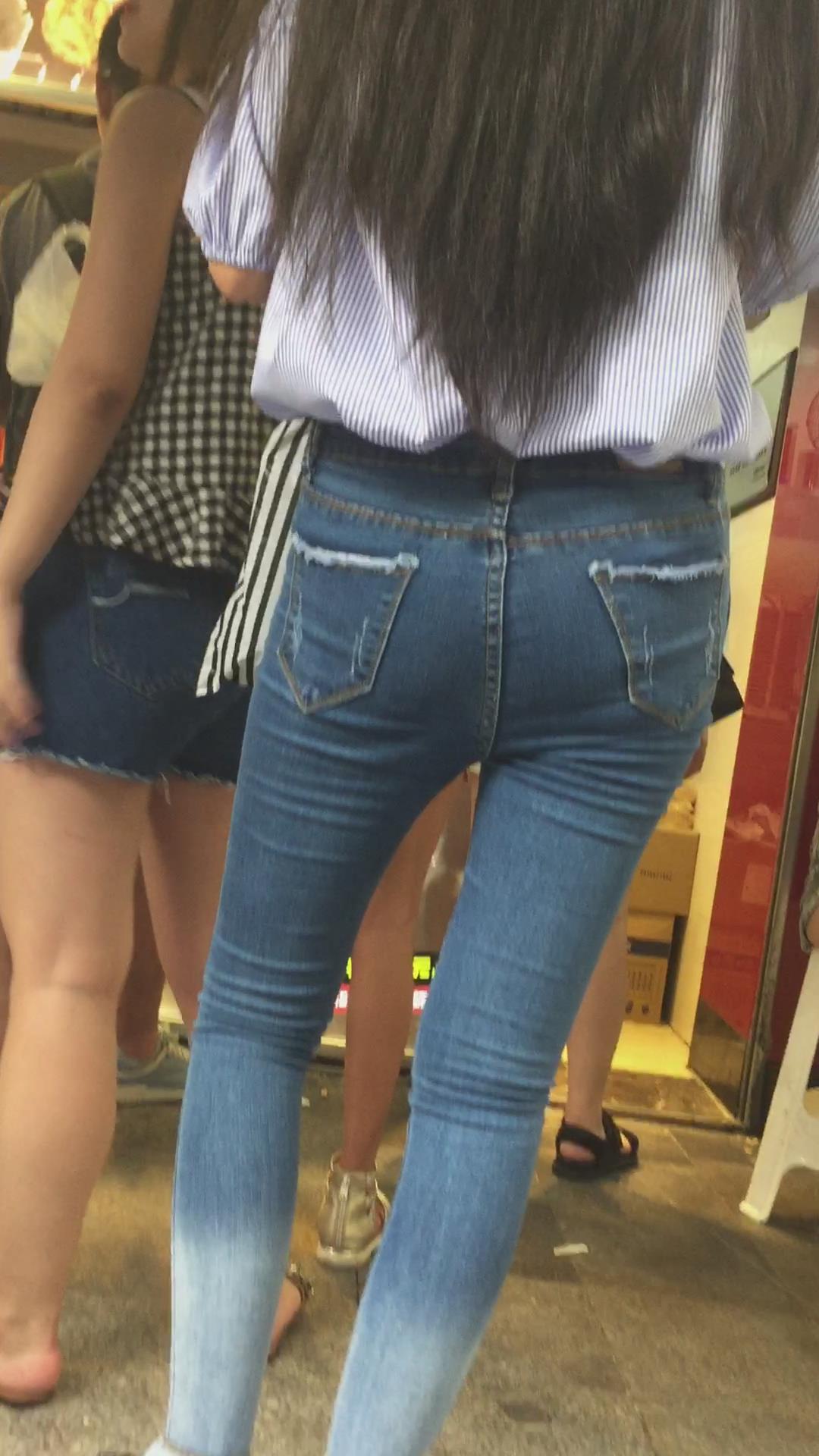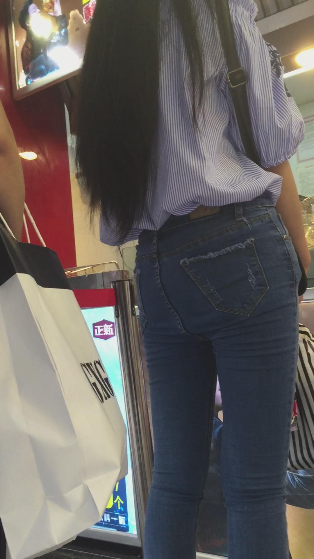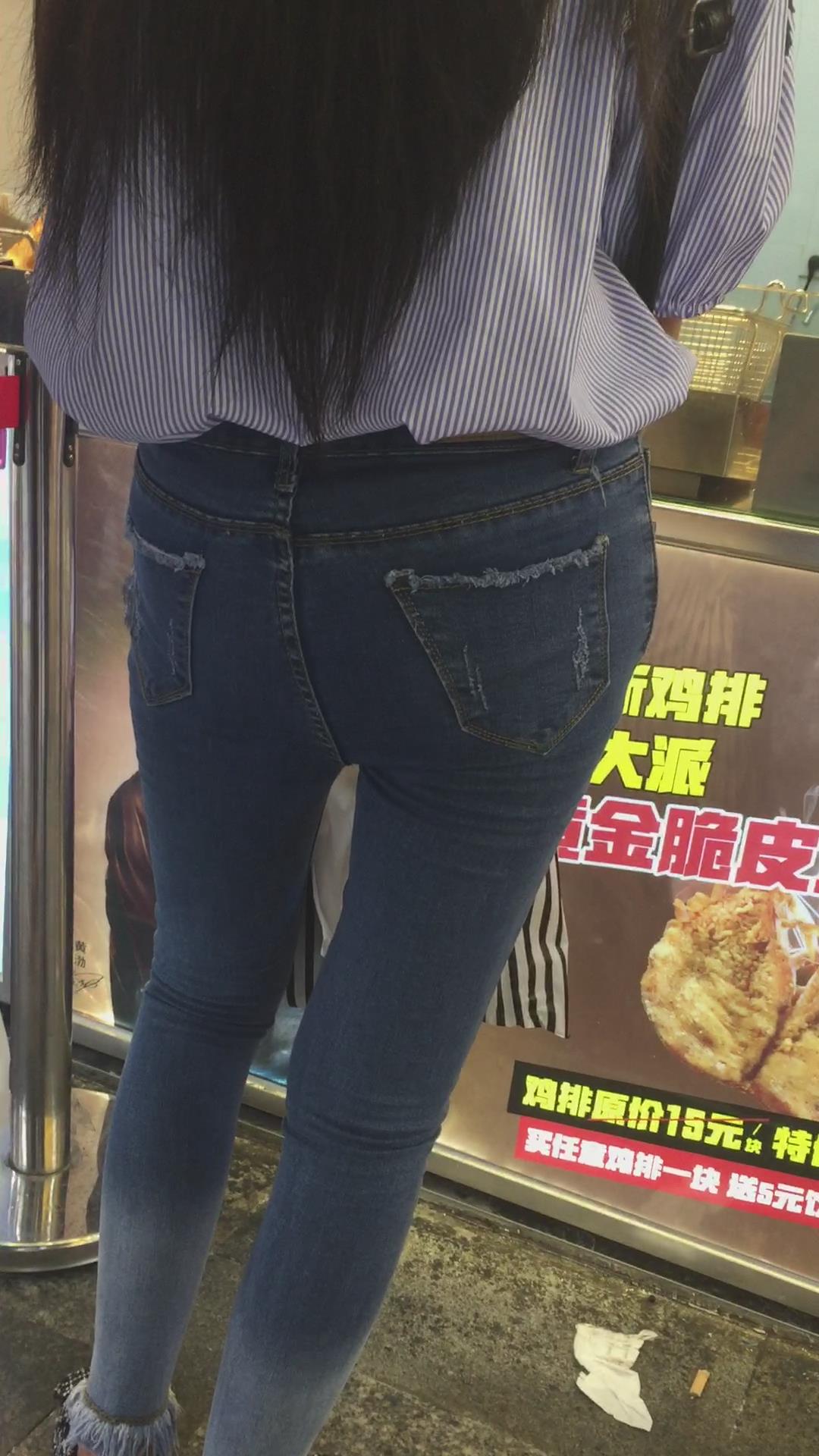 街拍蓝色衬衫牛仔裤小姐姐 编号6058