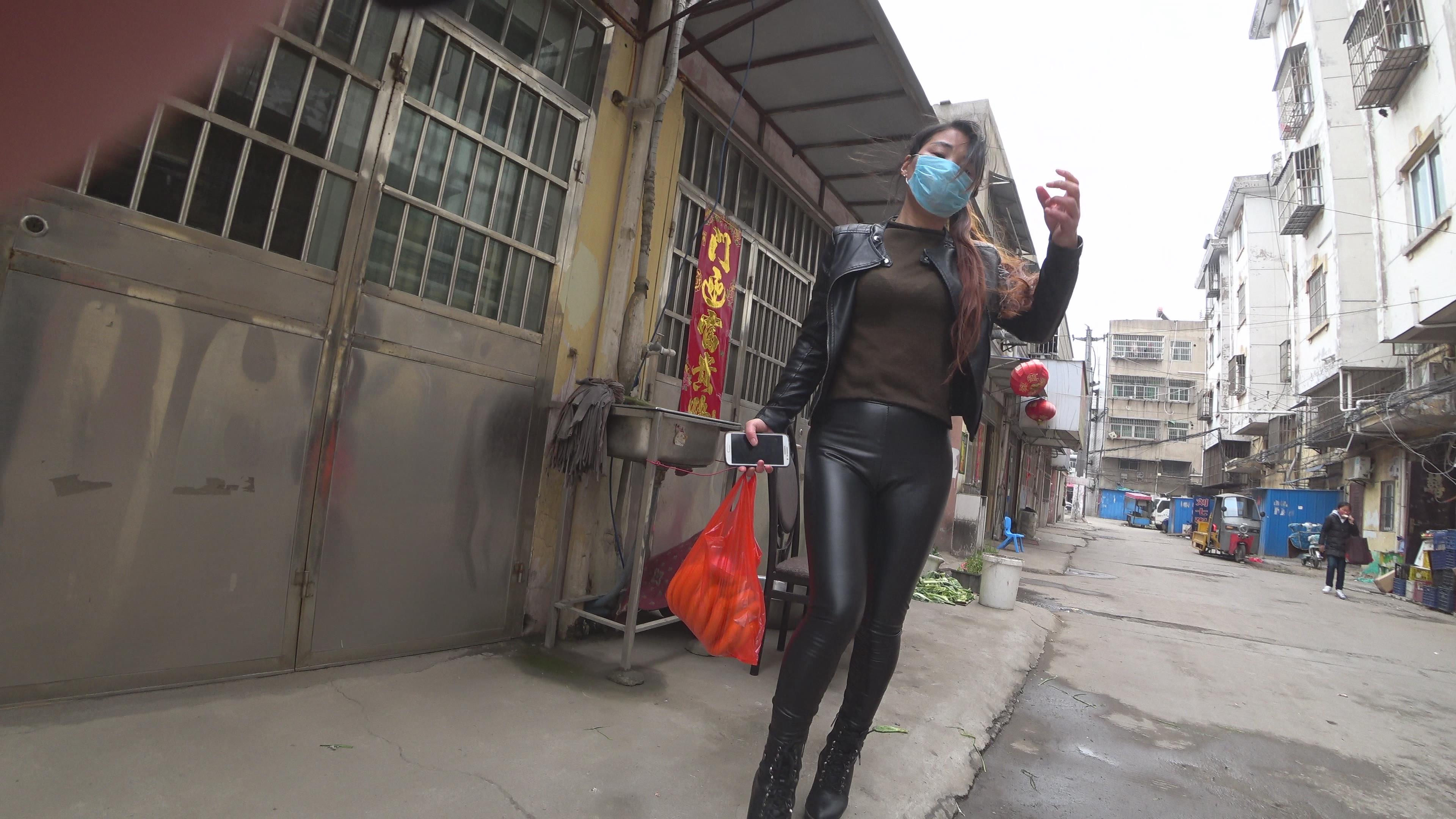 黑色紧身皮裤皮衣美女 编号6064