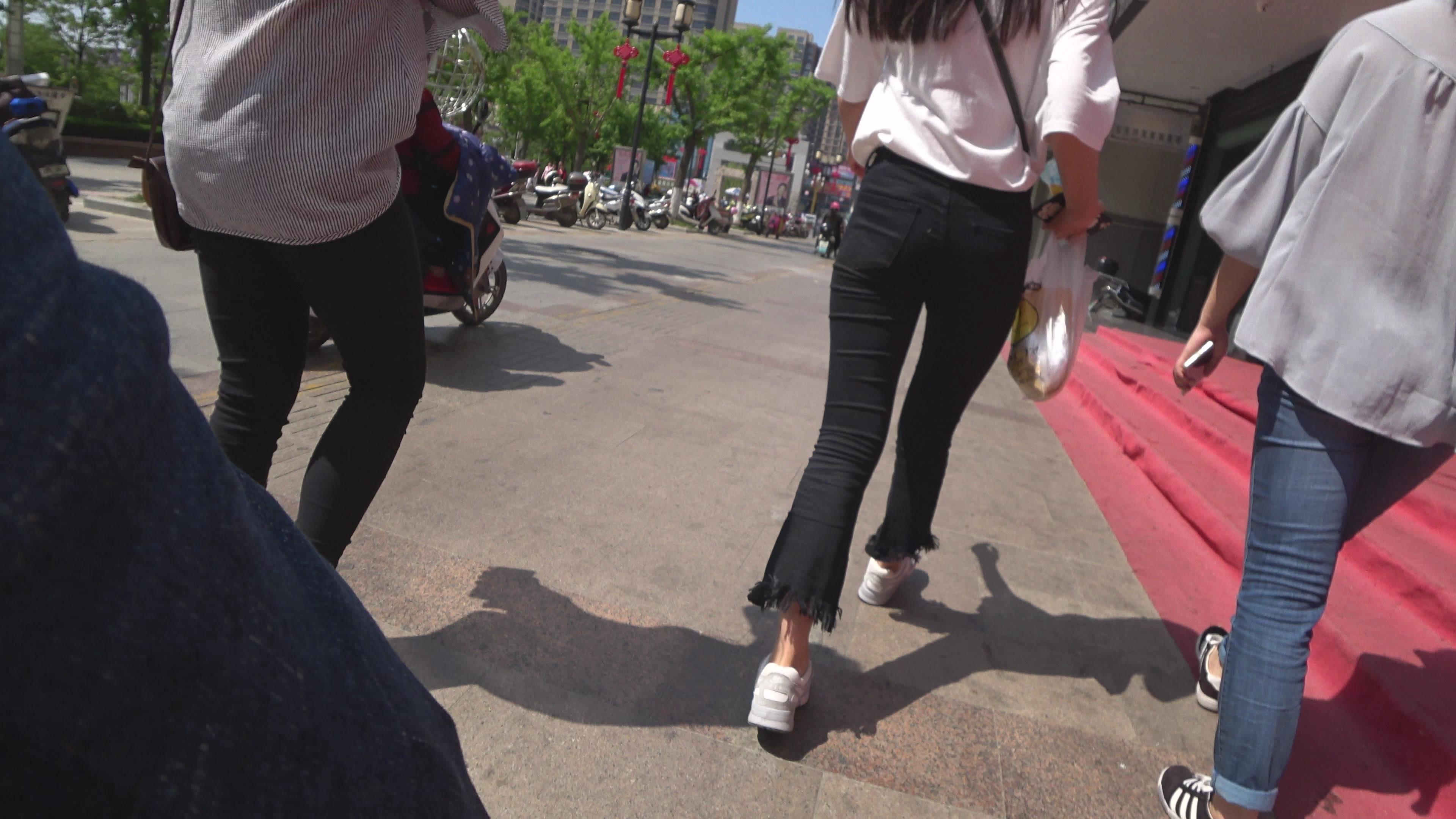 黑色紧身裤白T恤美女 编号6065
