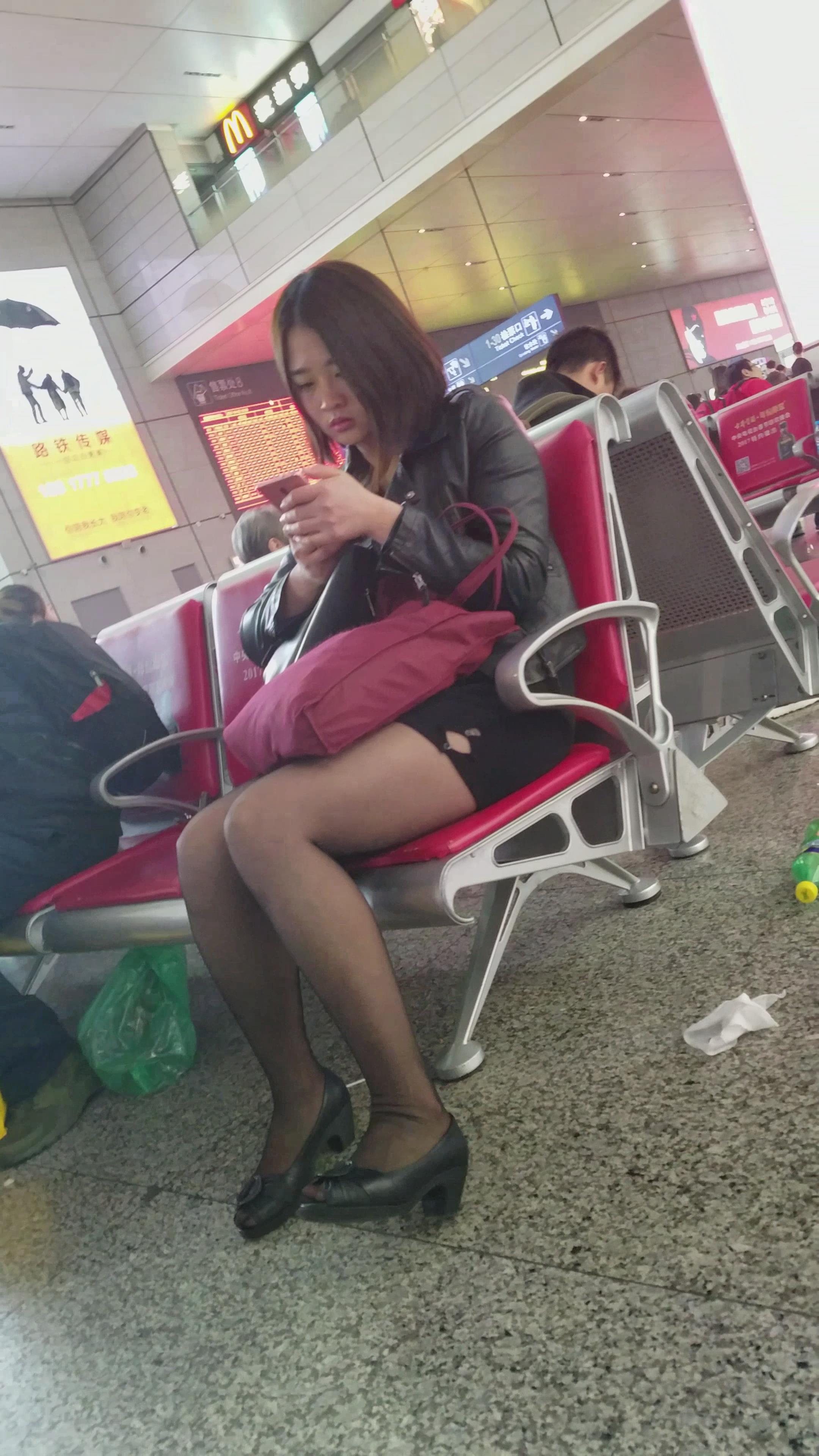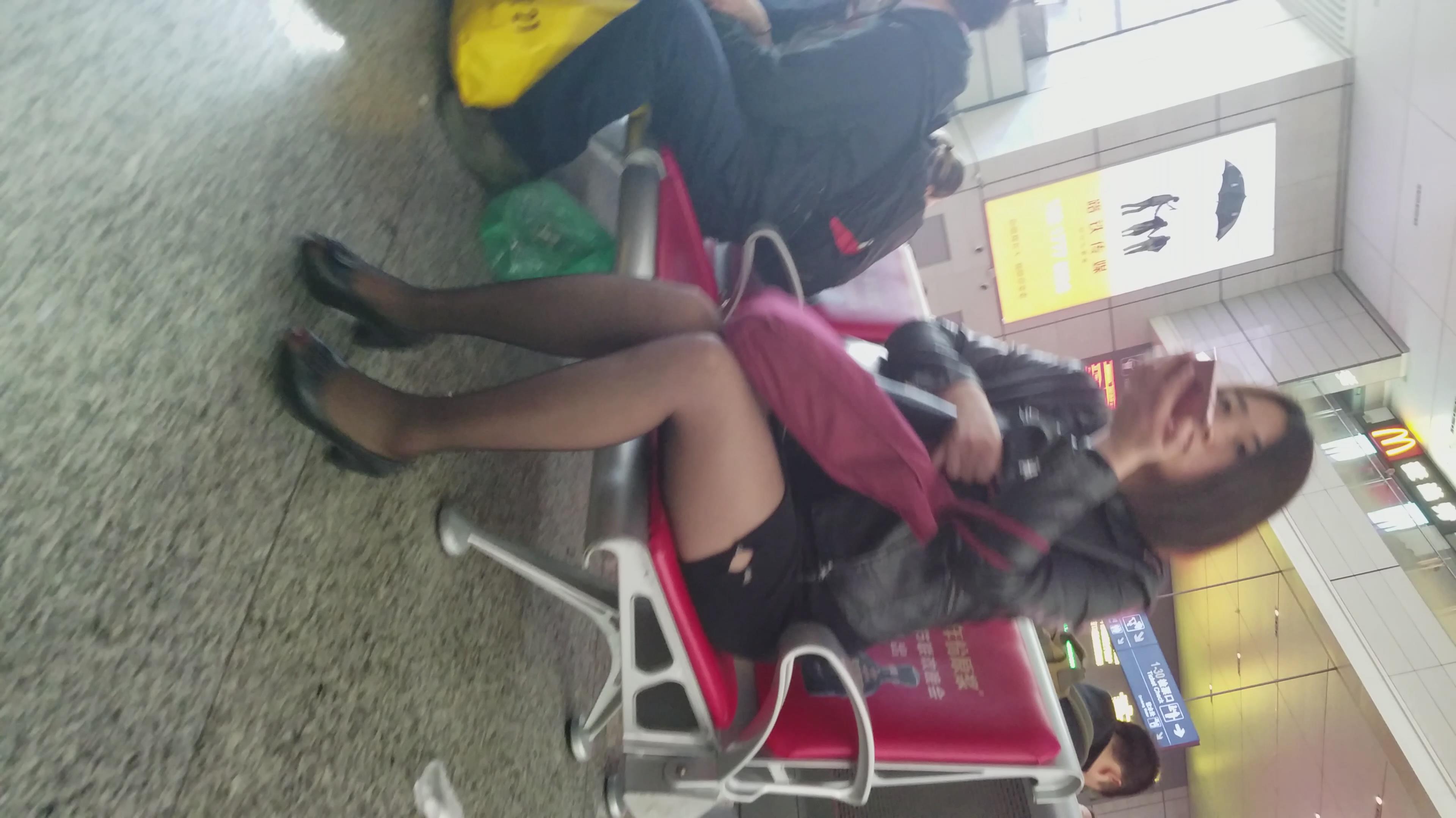 4K-短发街拍黑丝包臀裙性感靓女 编号2759