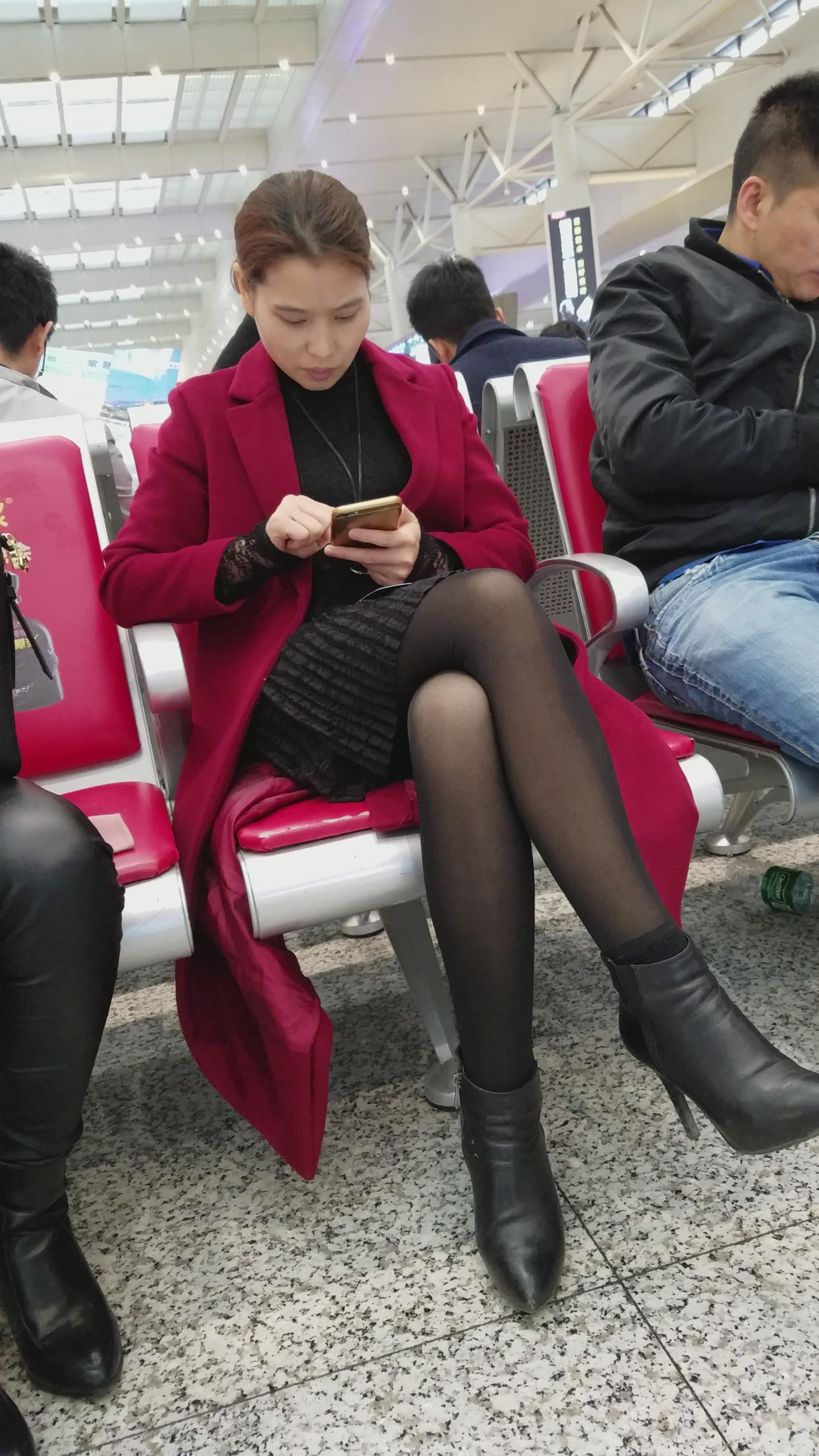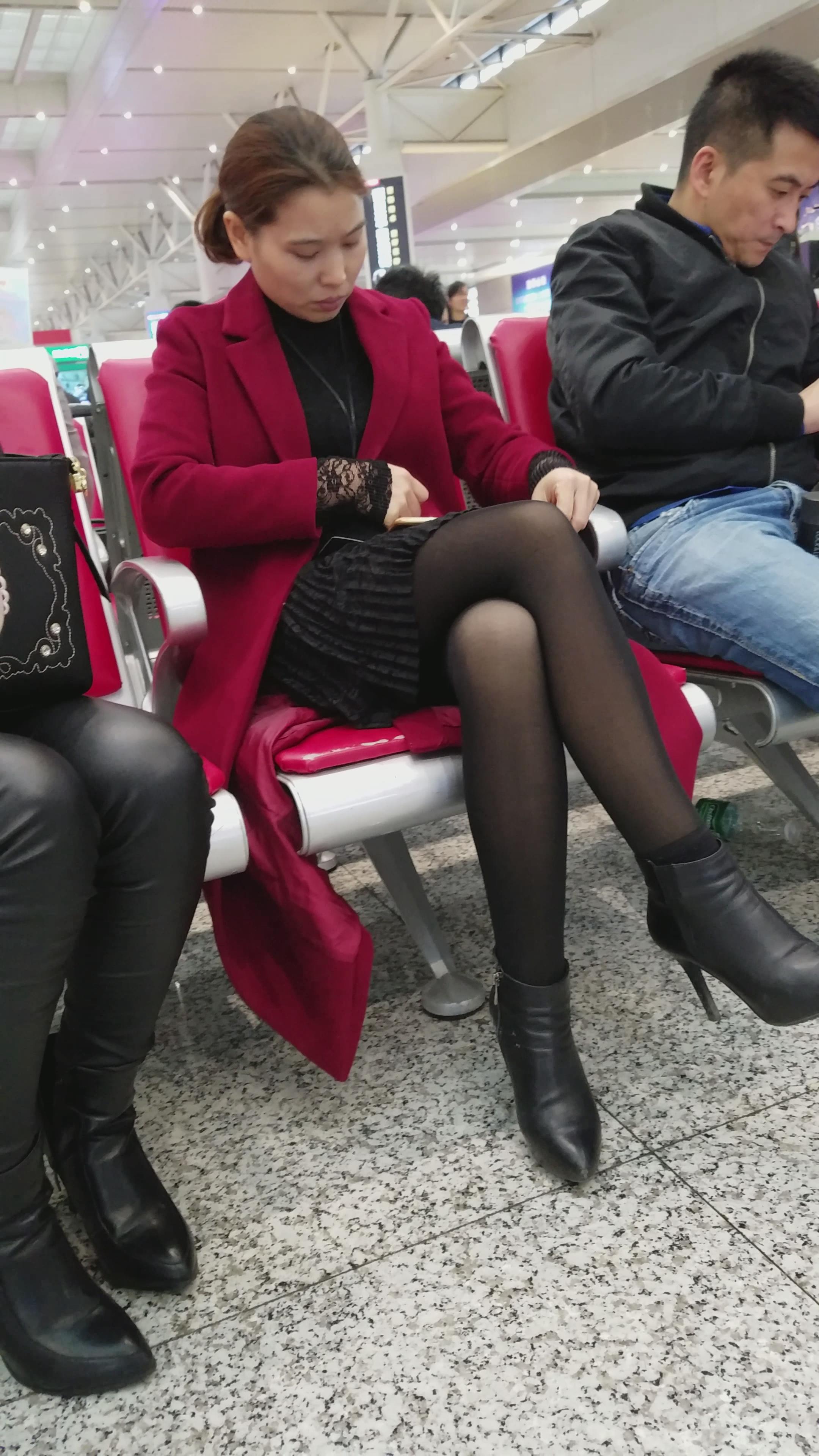 4k-大红外套街拍黑丝性感长腿御姐 编号2795
