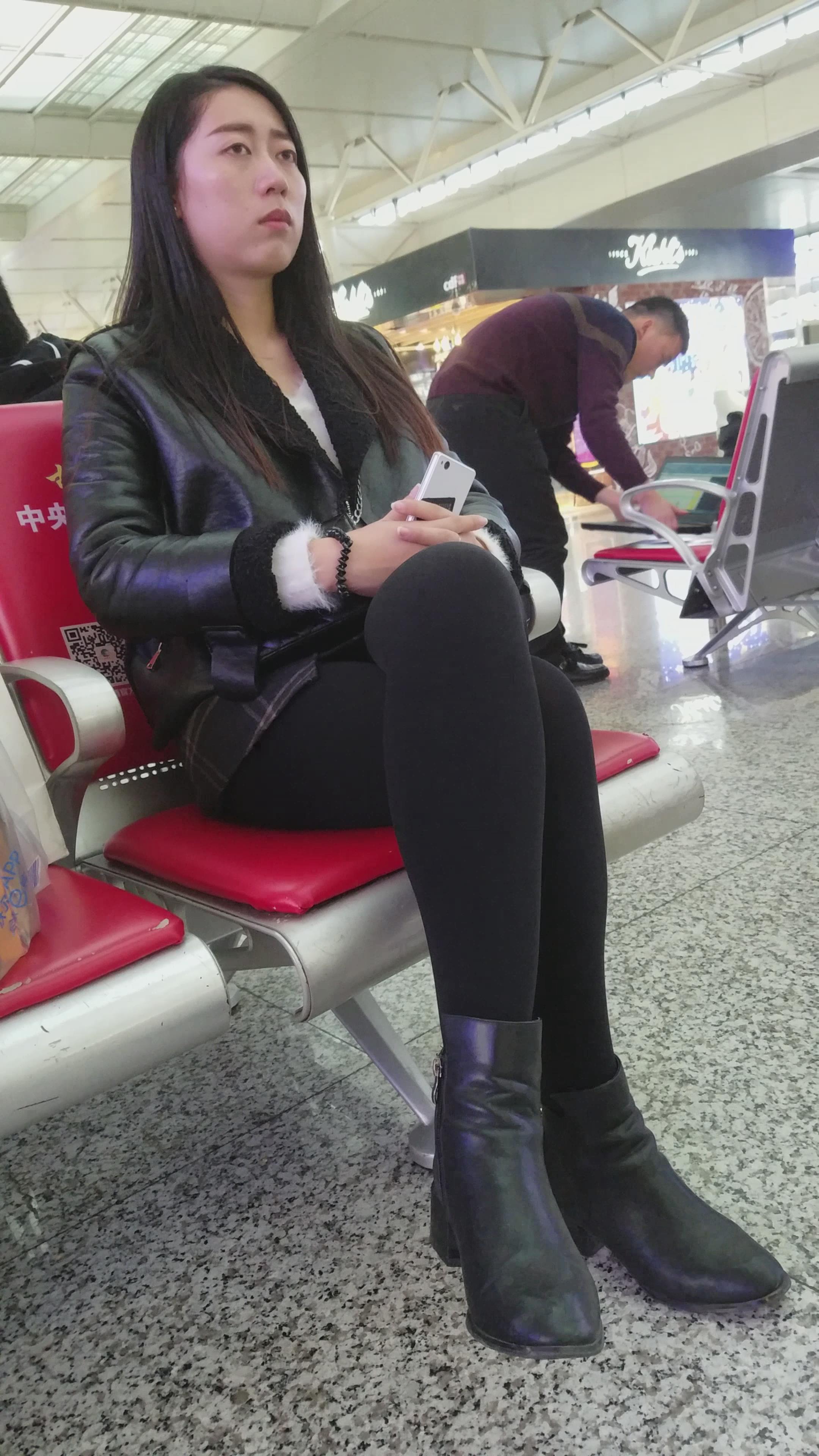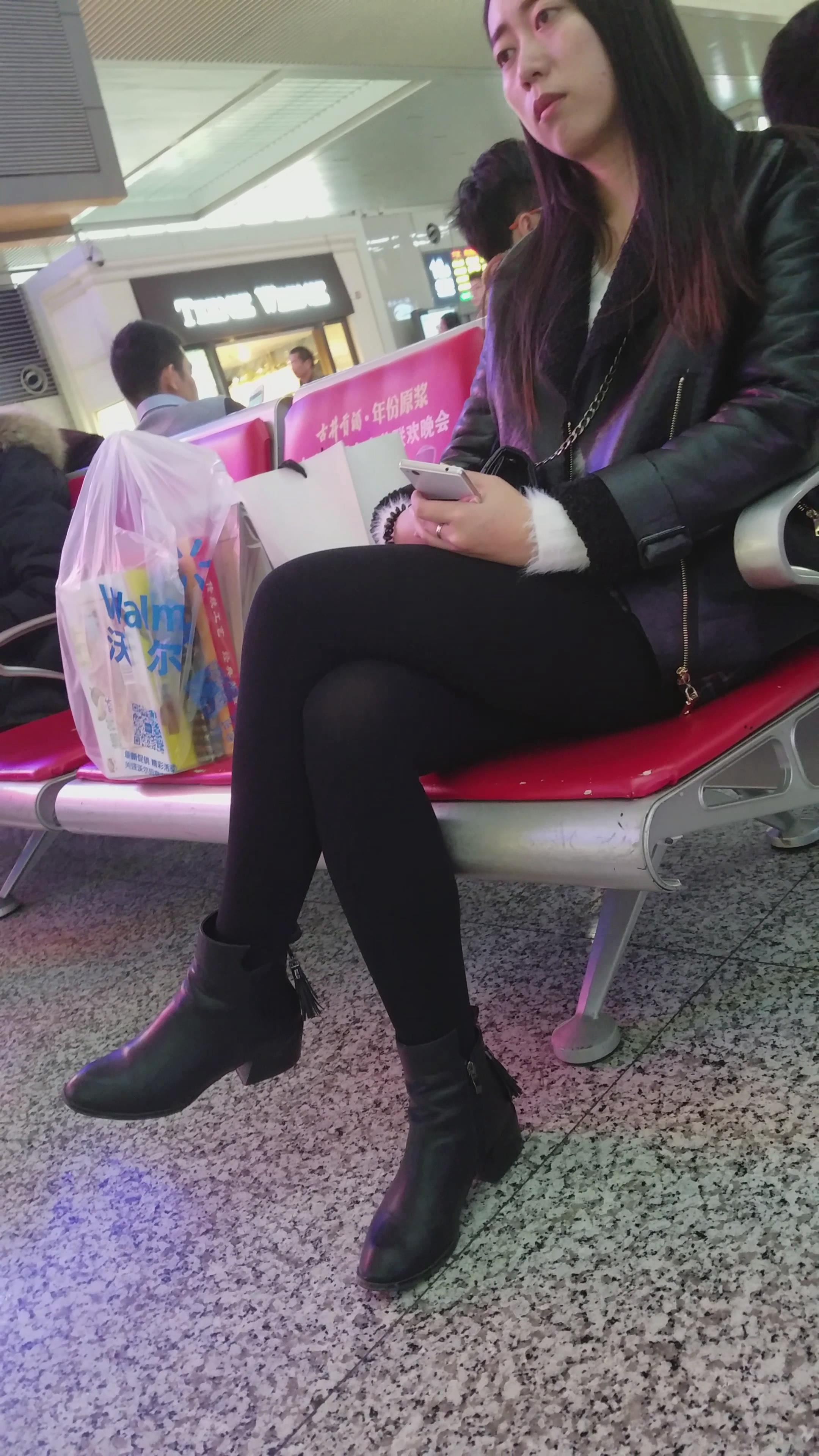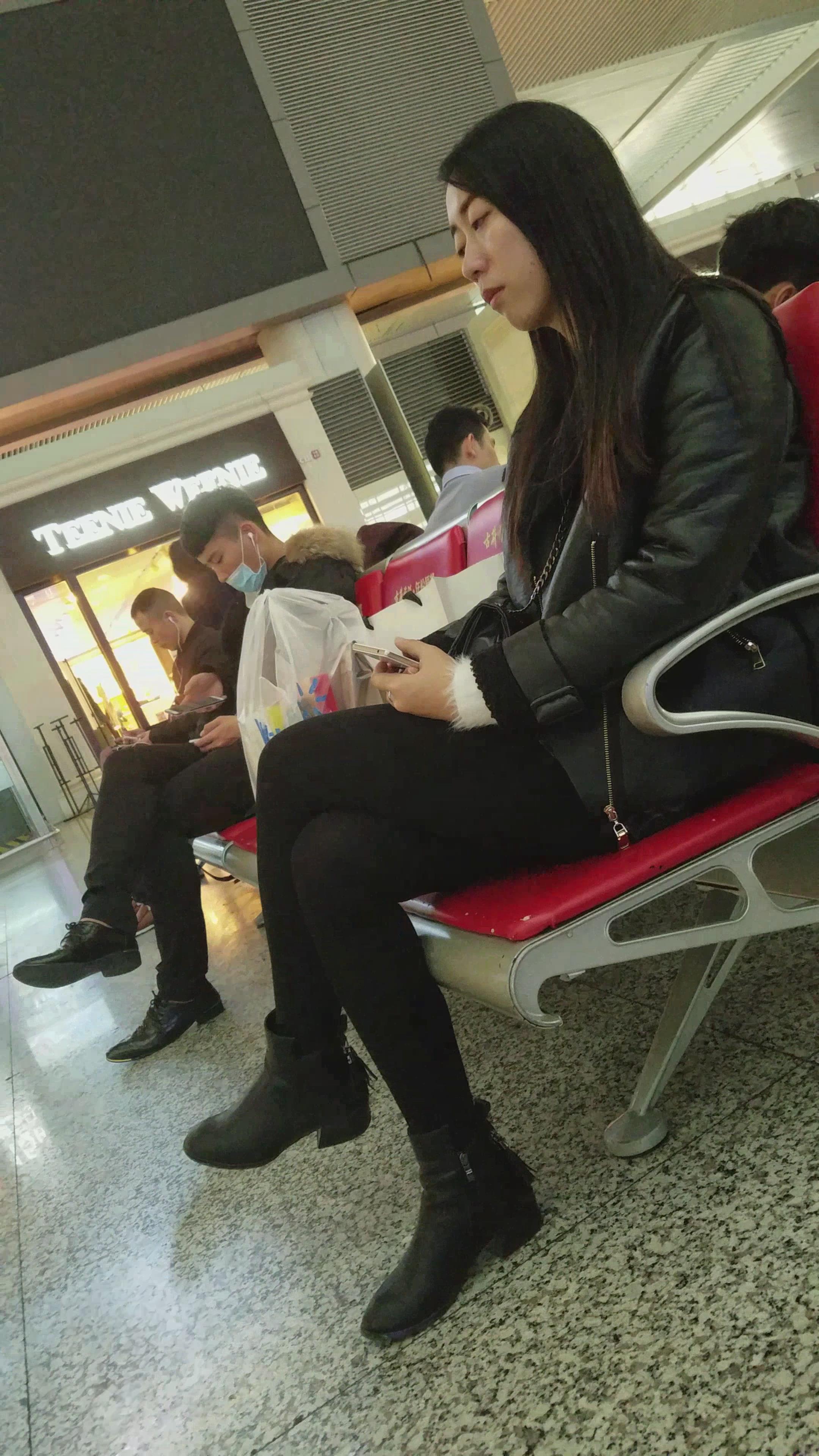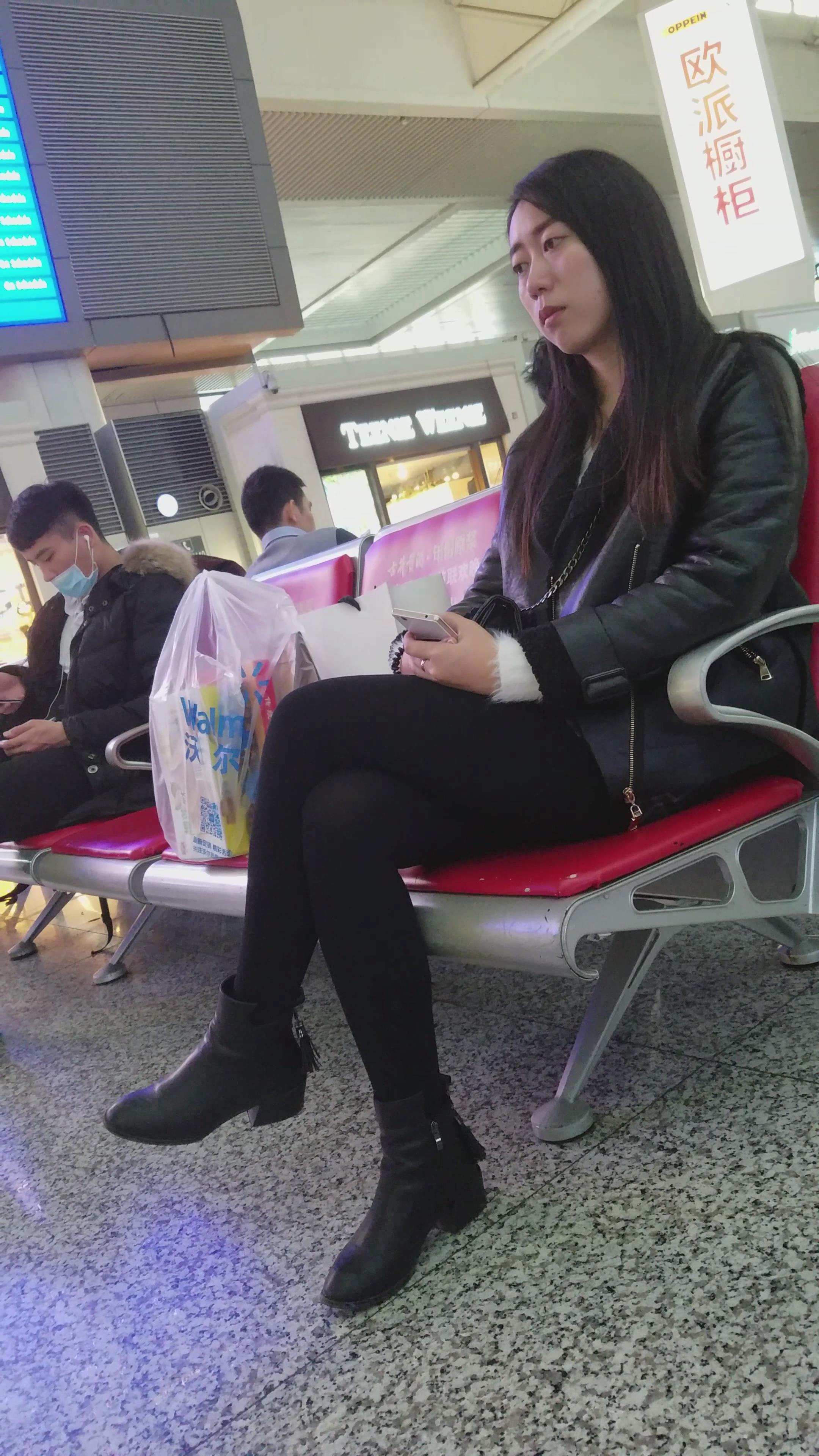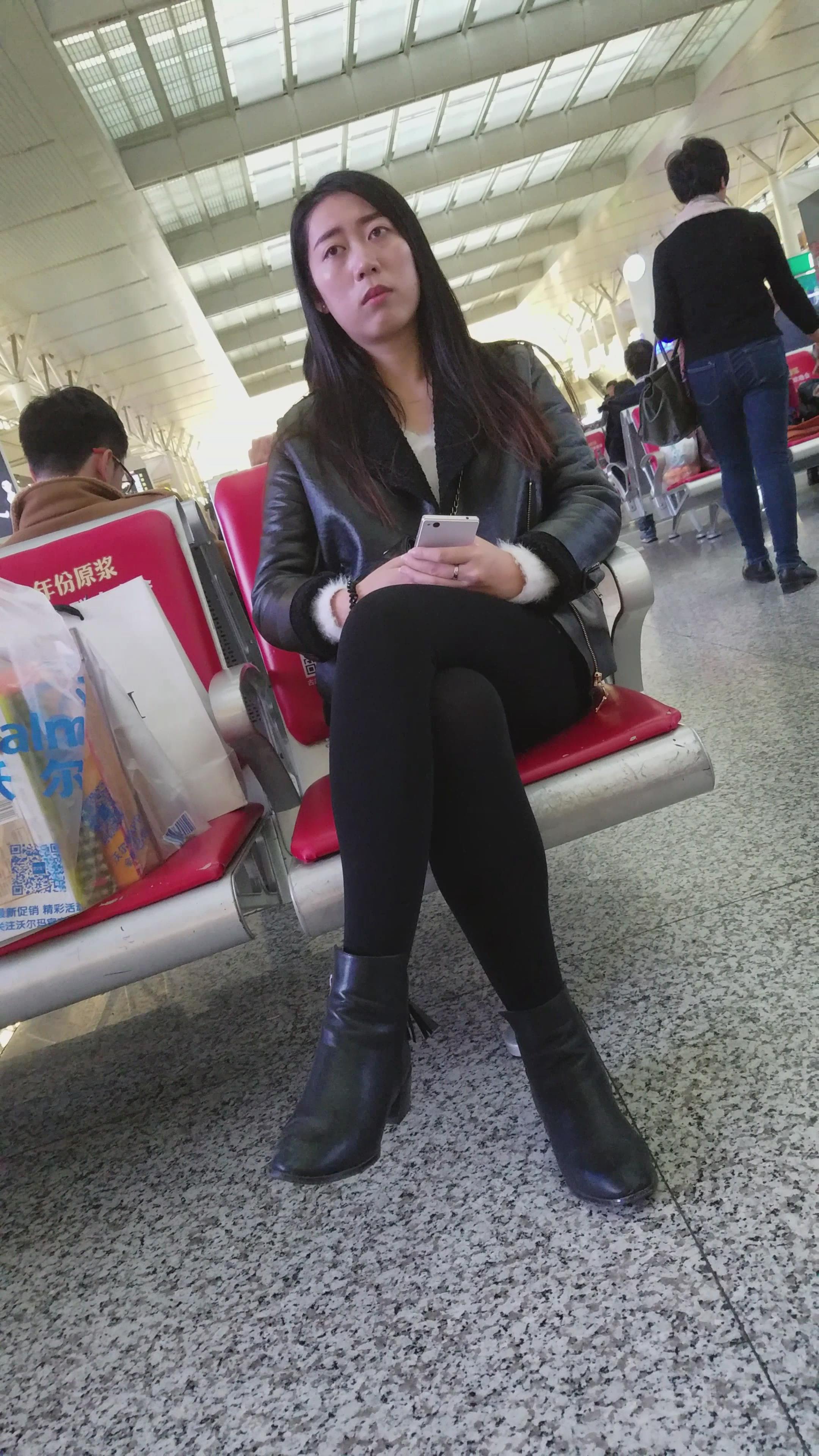 4k-候车室等车发呆的黑色系美女 编号2803