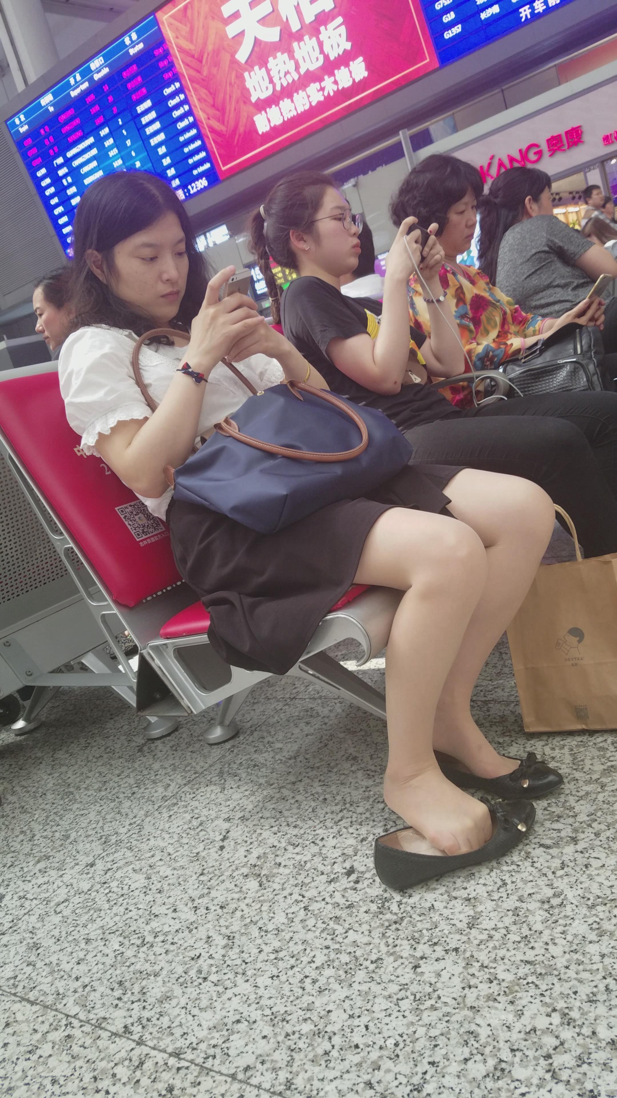 4k-候车室专心玩手机的小姐姐,趁人不备偷偷晾脚 编号2806