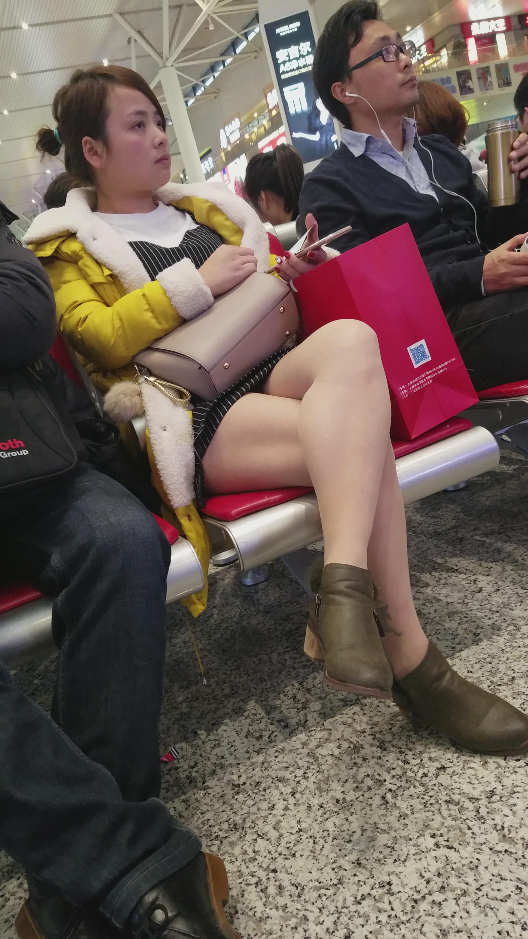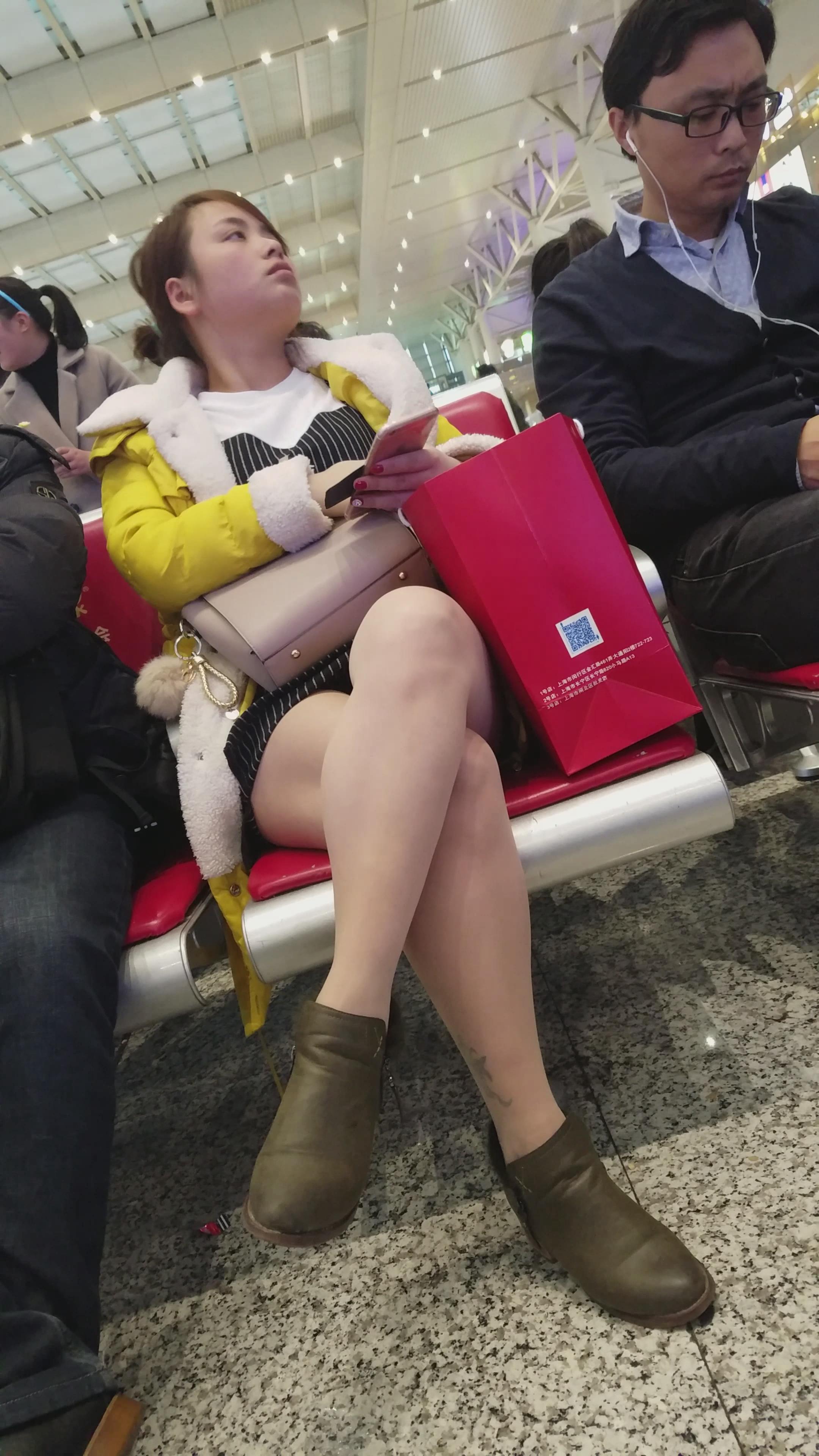 4k-候车室内东张西望仔细核对车票的美腿妹子 编号2823
