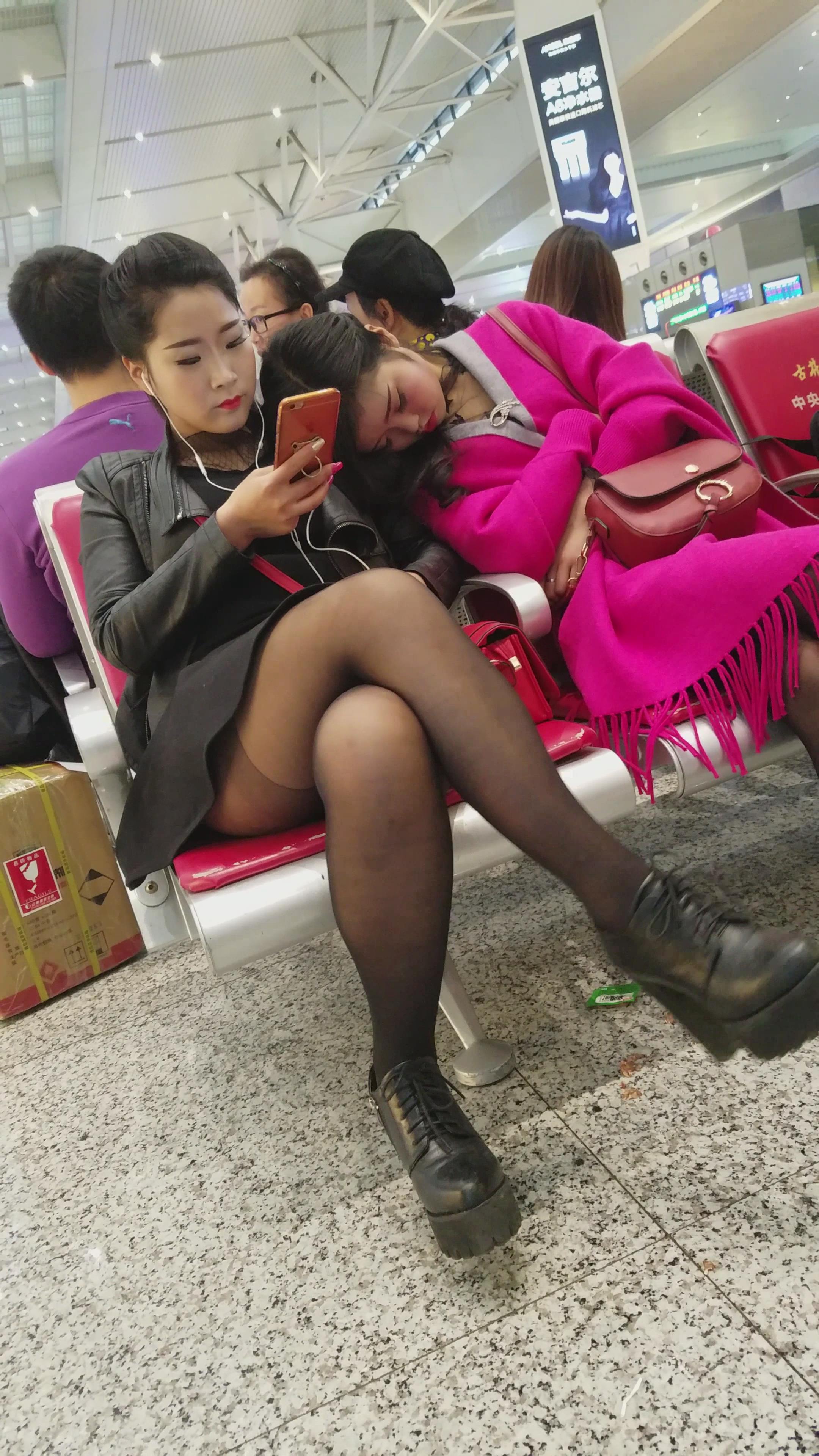 4k超清,高铁站候车室黑丝姐妹花 编号2887