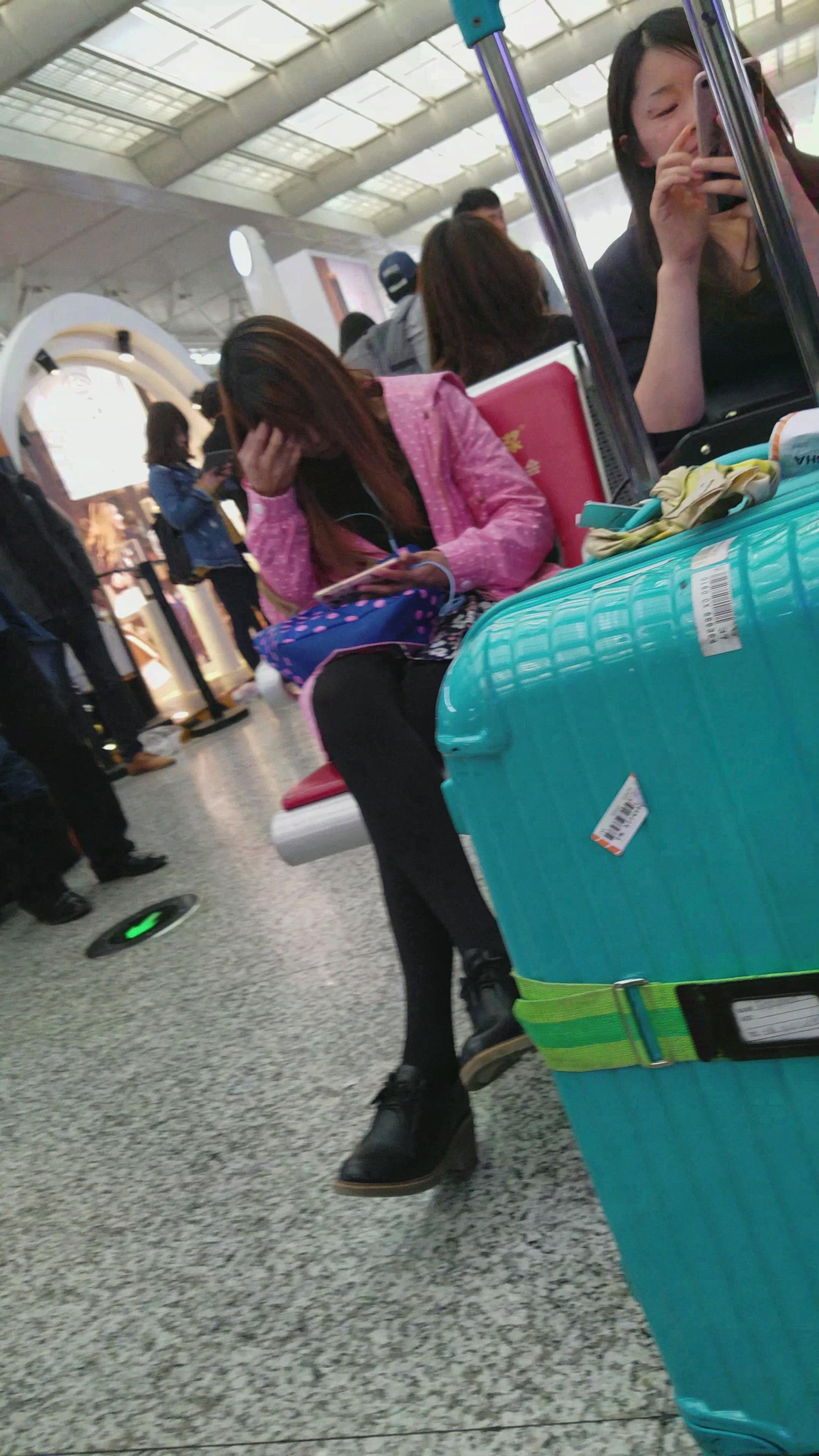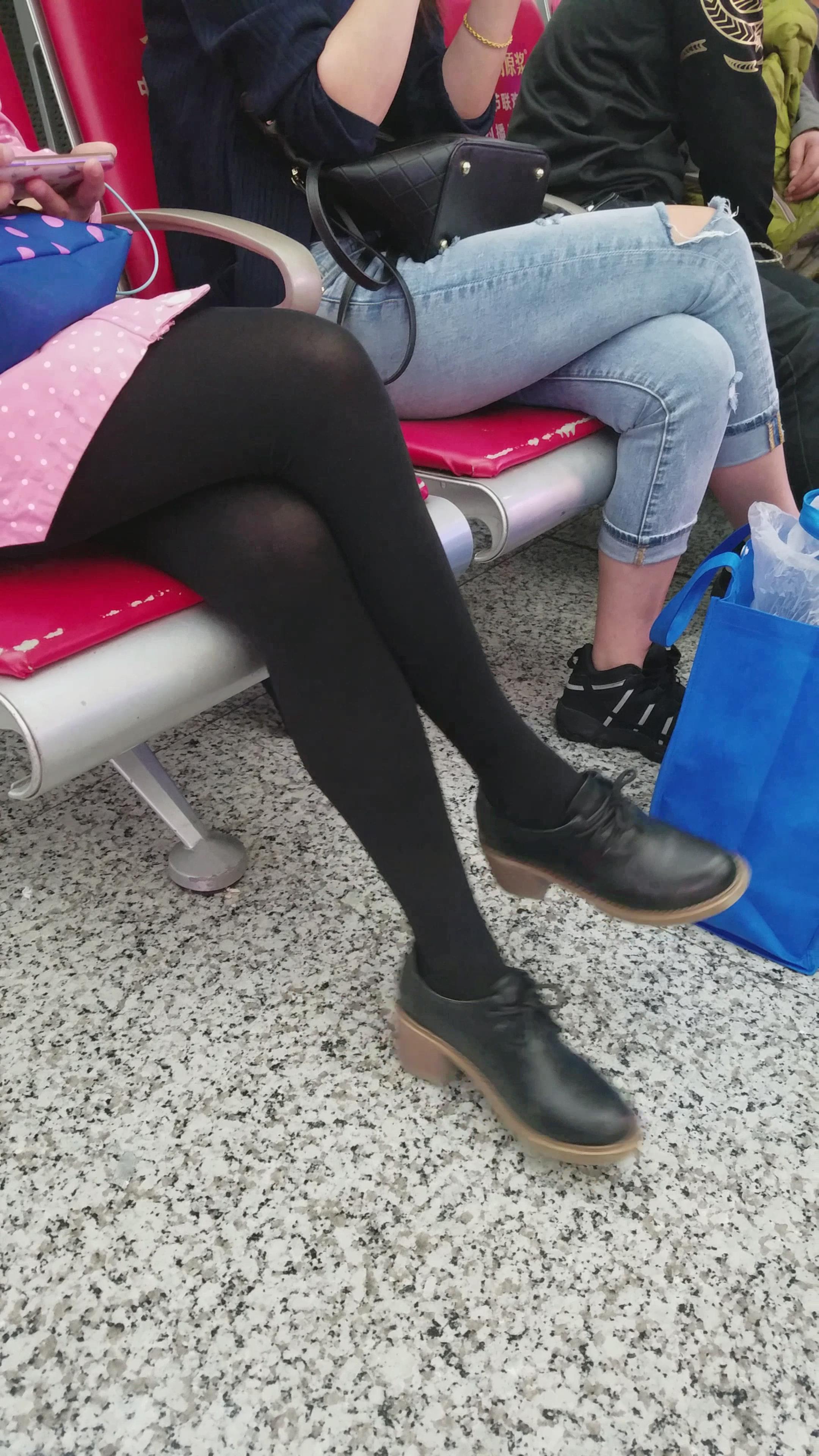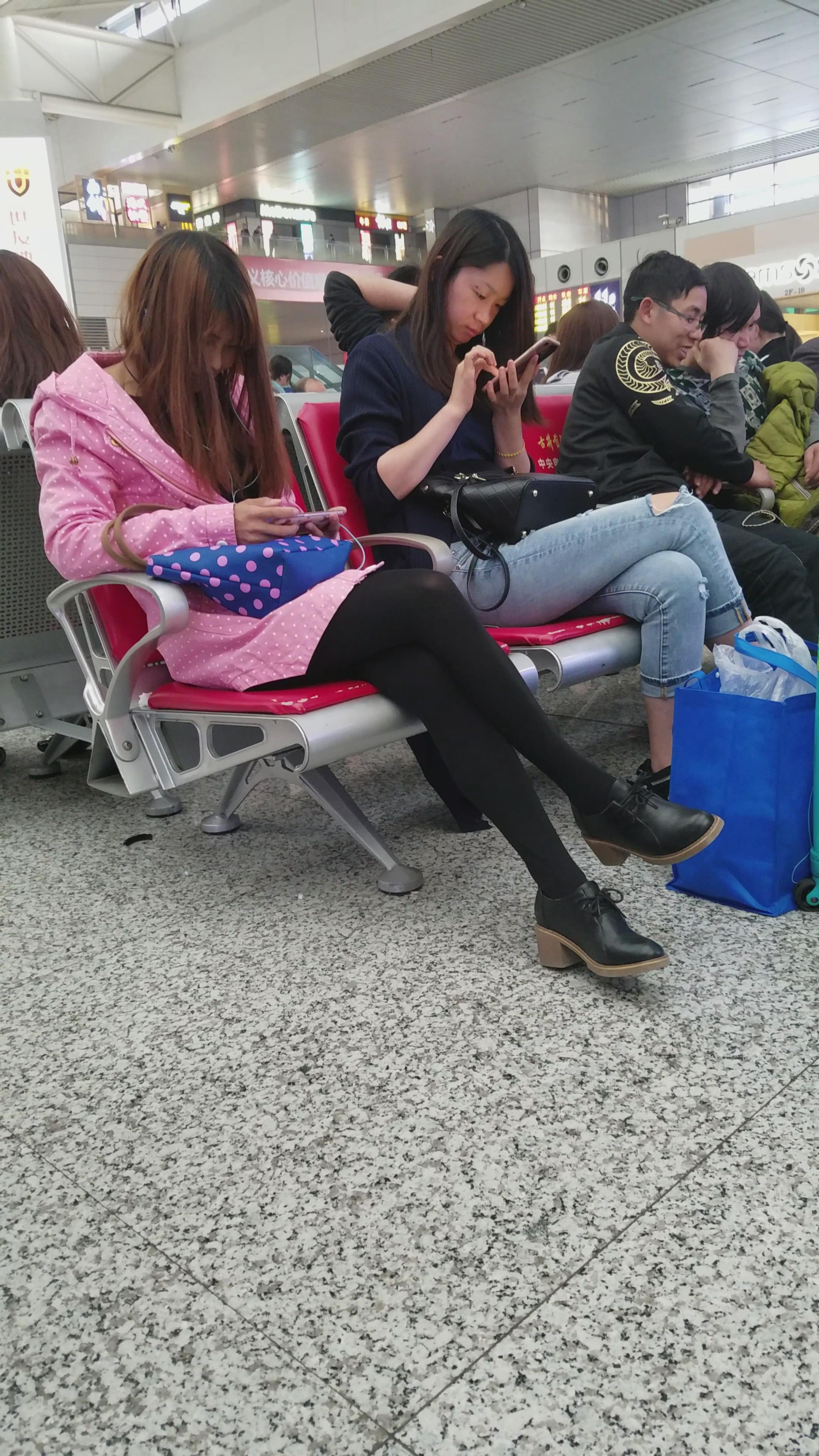 4k超清,候车室内低头玩手机的黑色裤袜小妹 编号2899