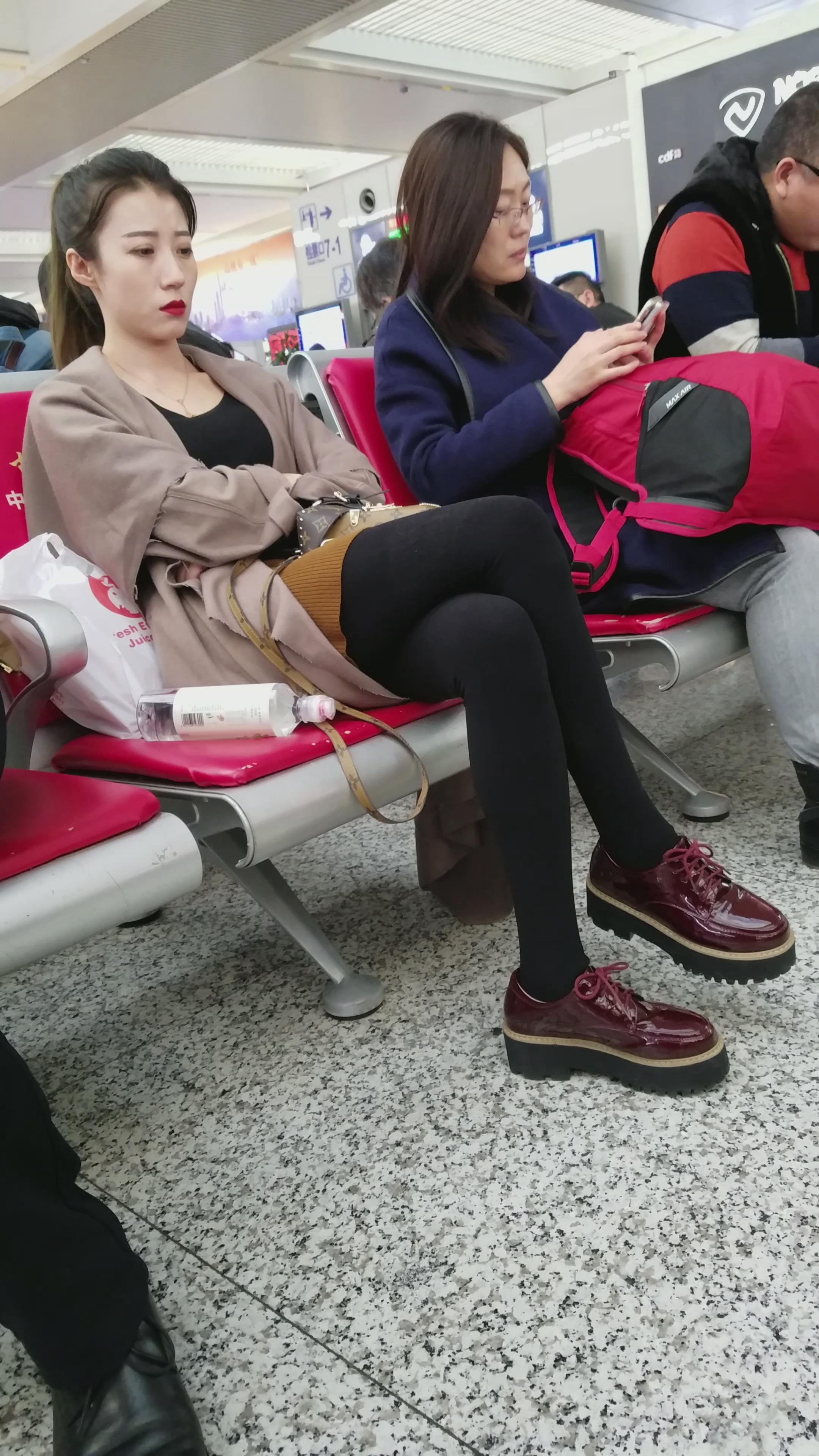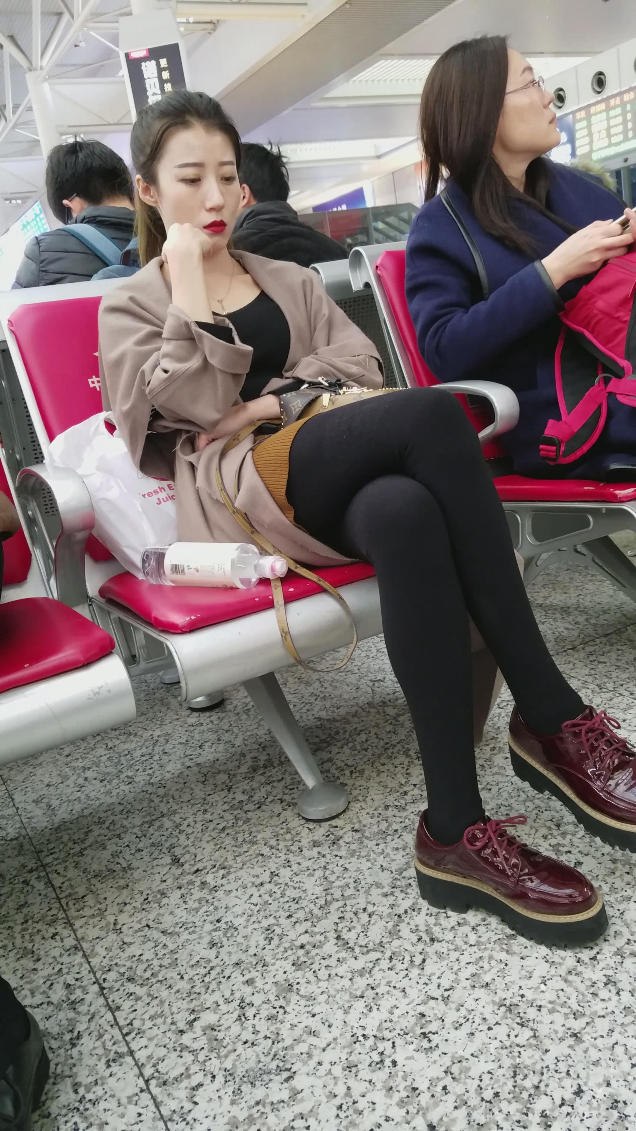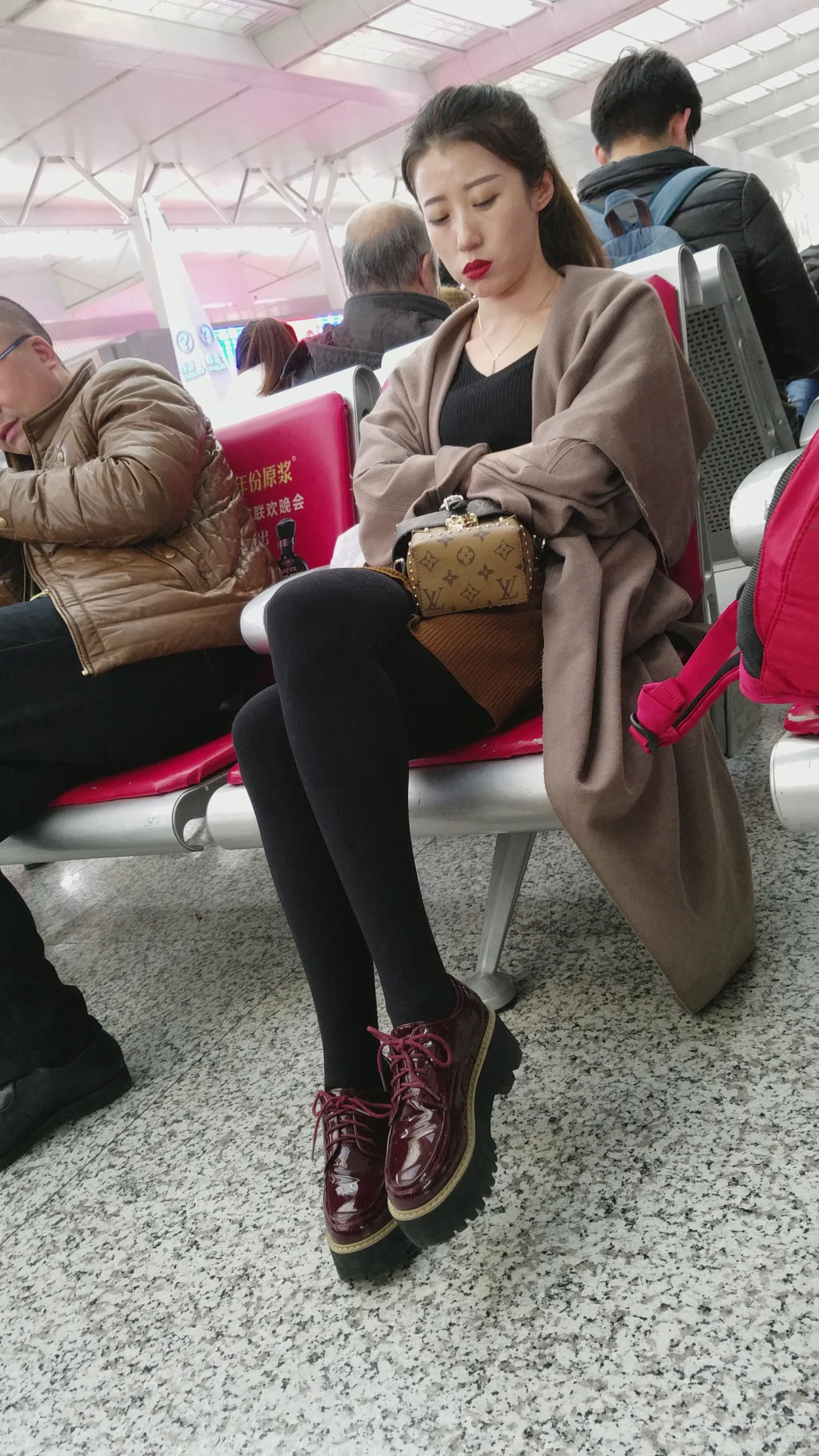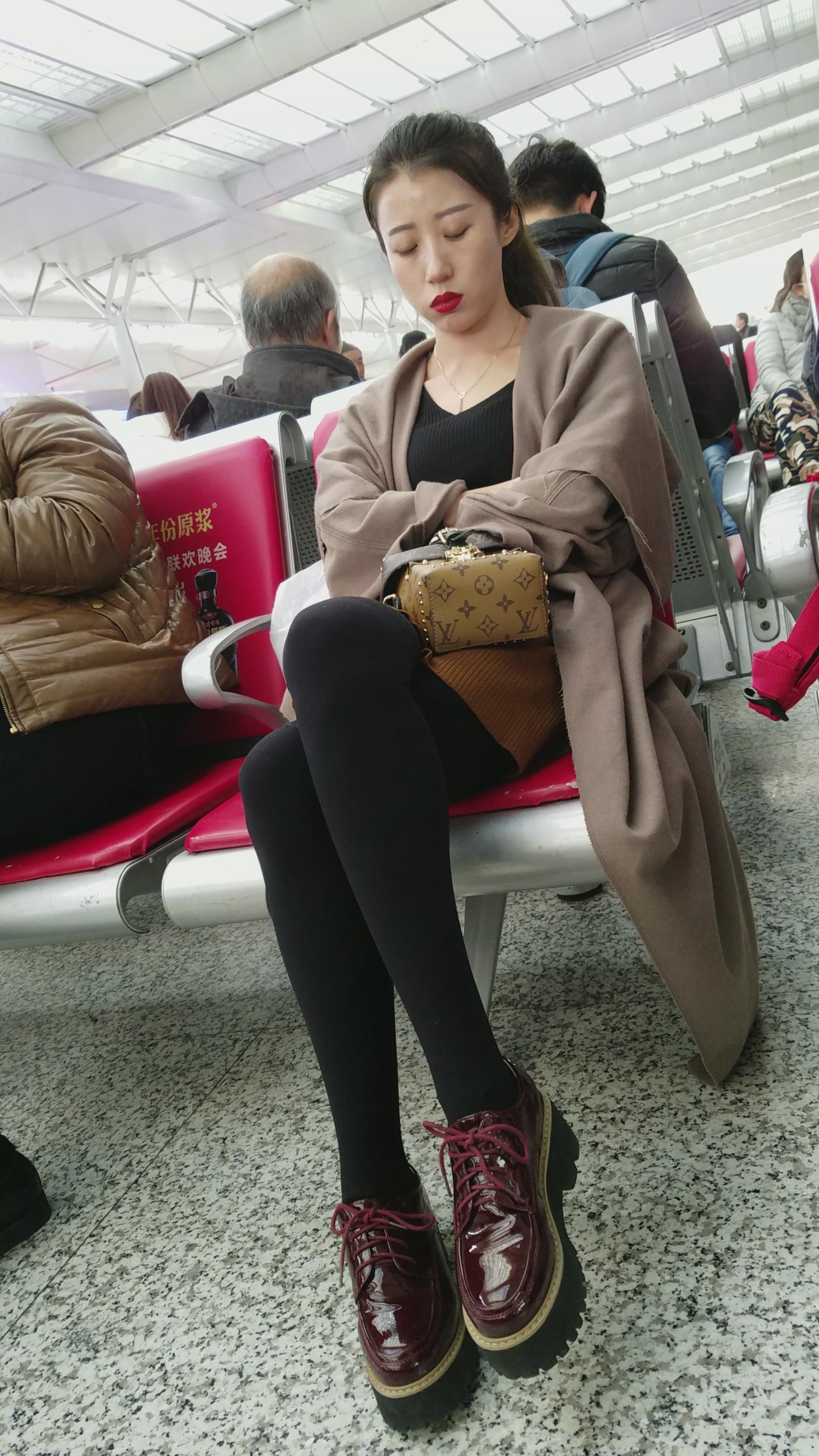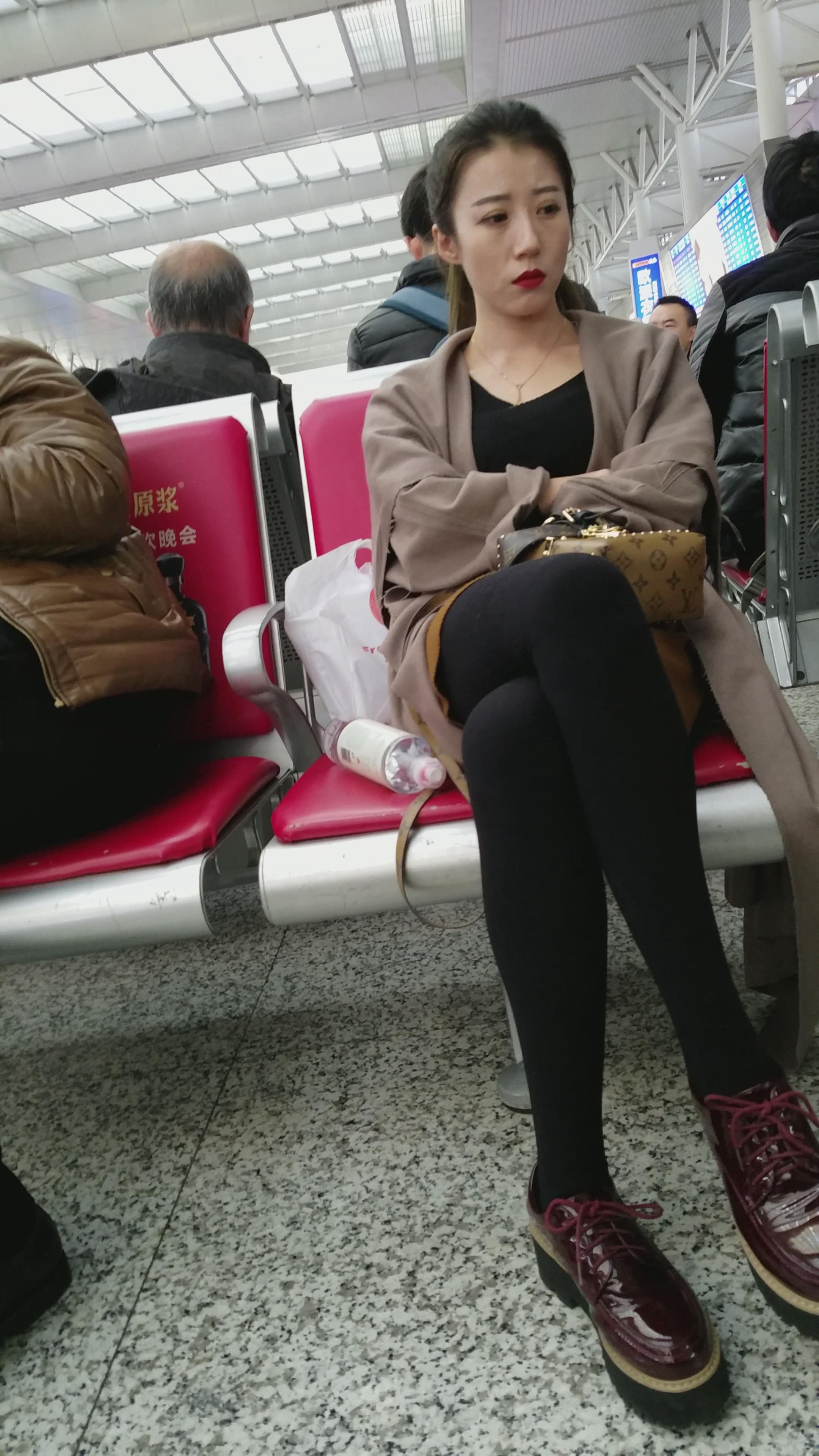 4k超清,高铁站候车室拍摄超高颜值标志五官长腿美女 编号2912