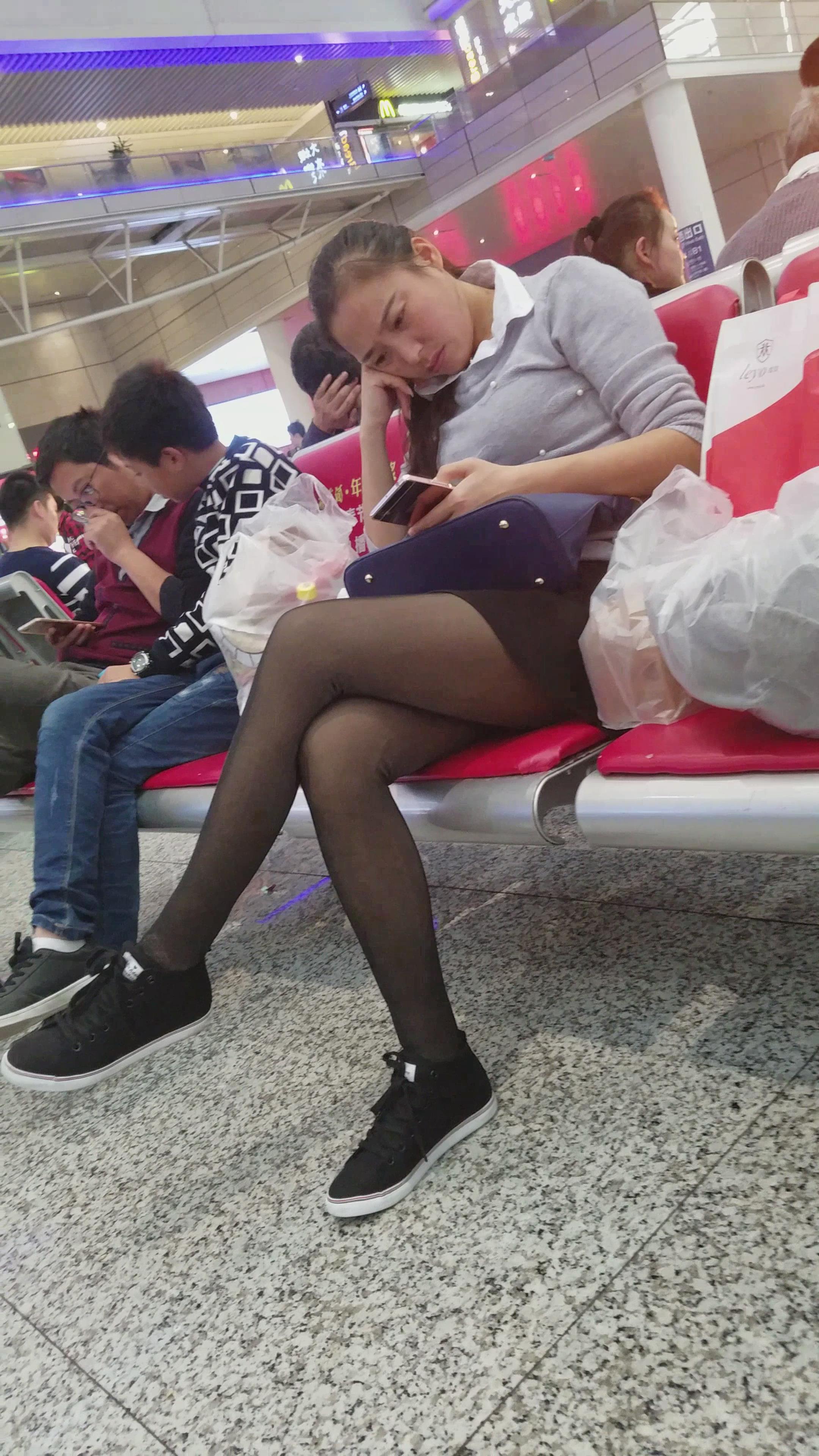 4k-高铁站候车室内的黑丝美腿美眉 编号2949