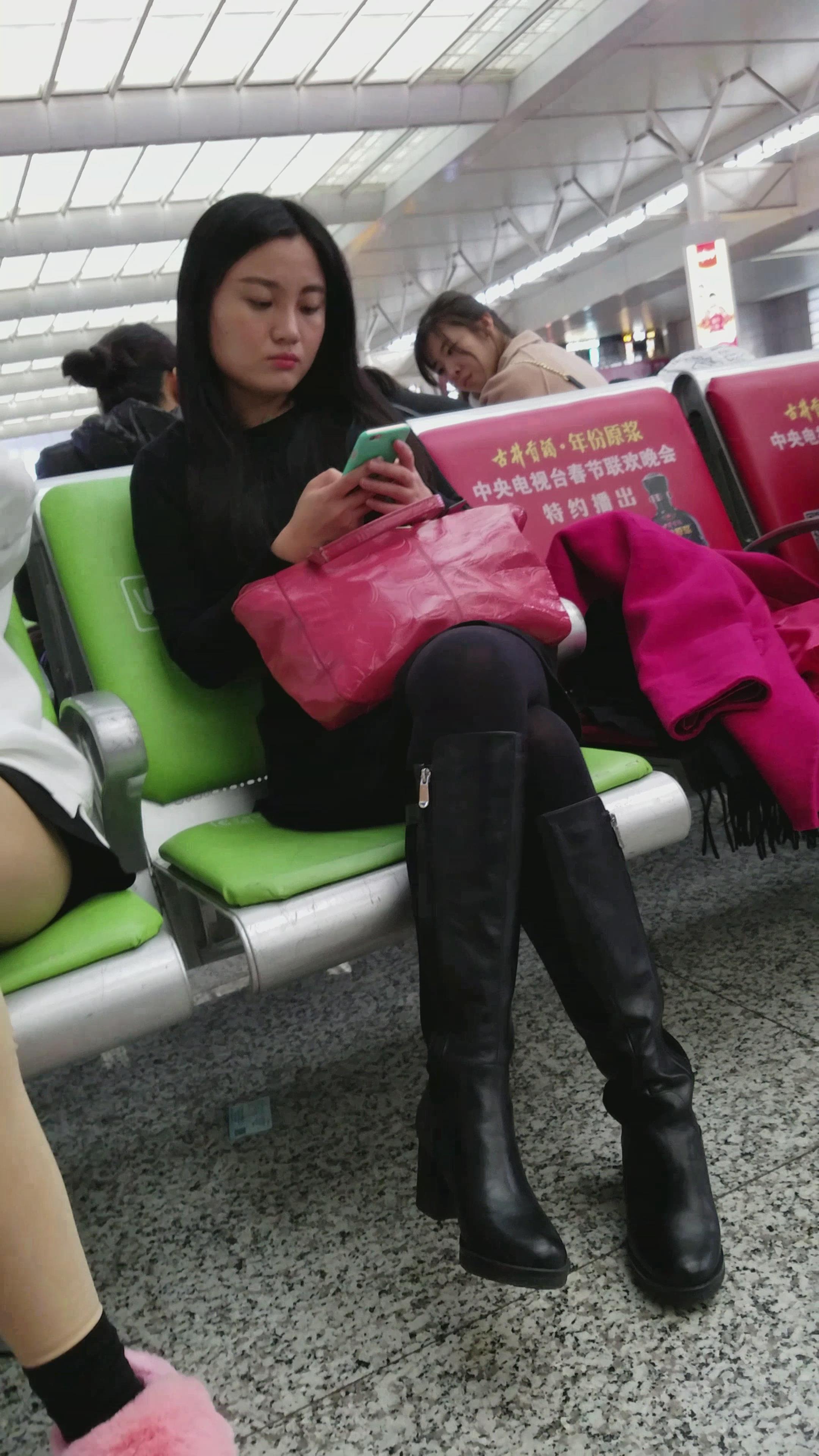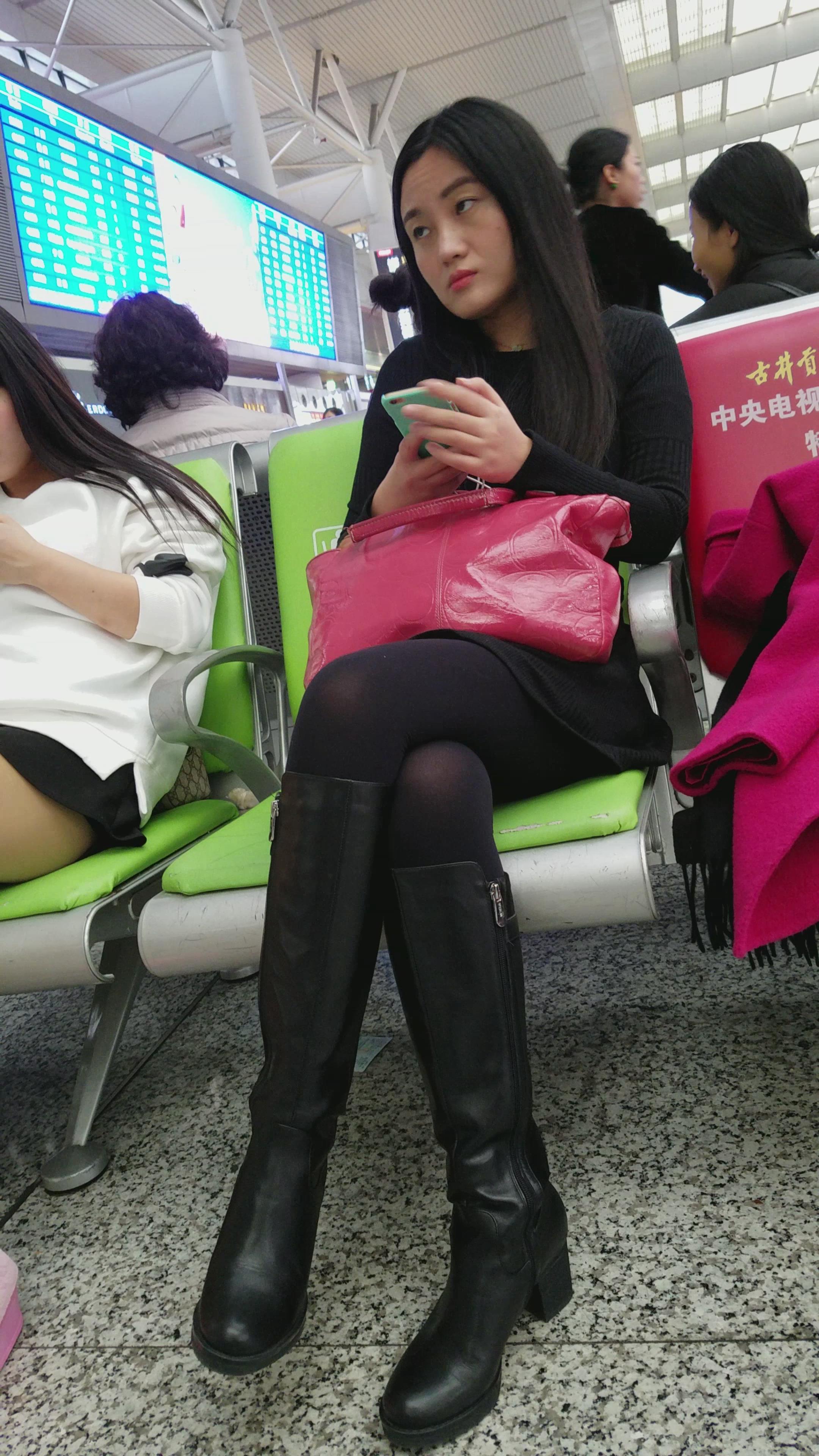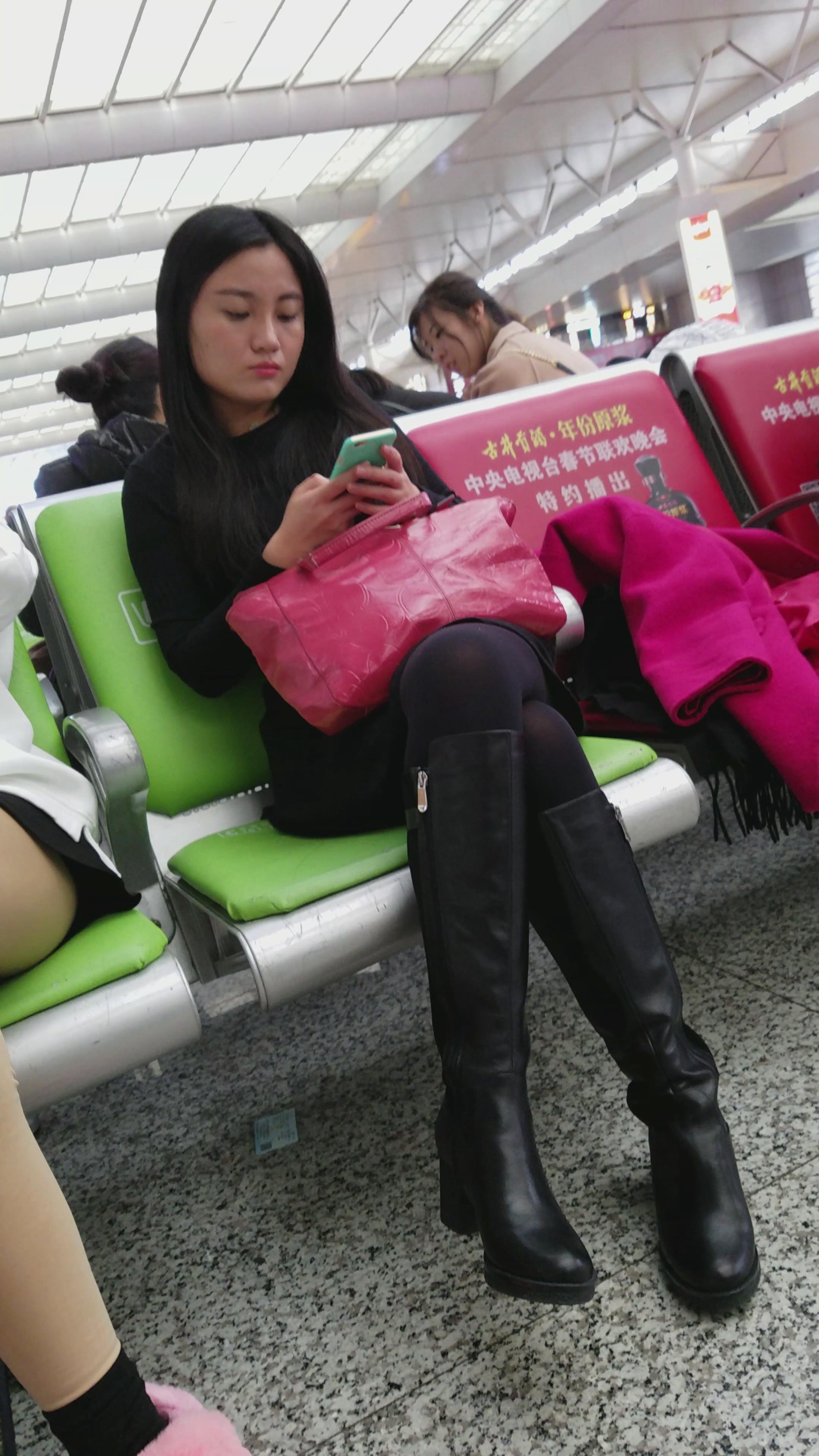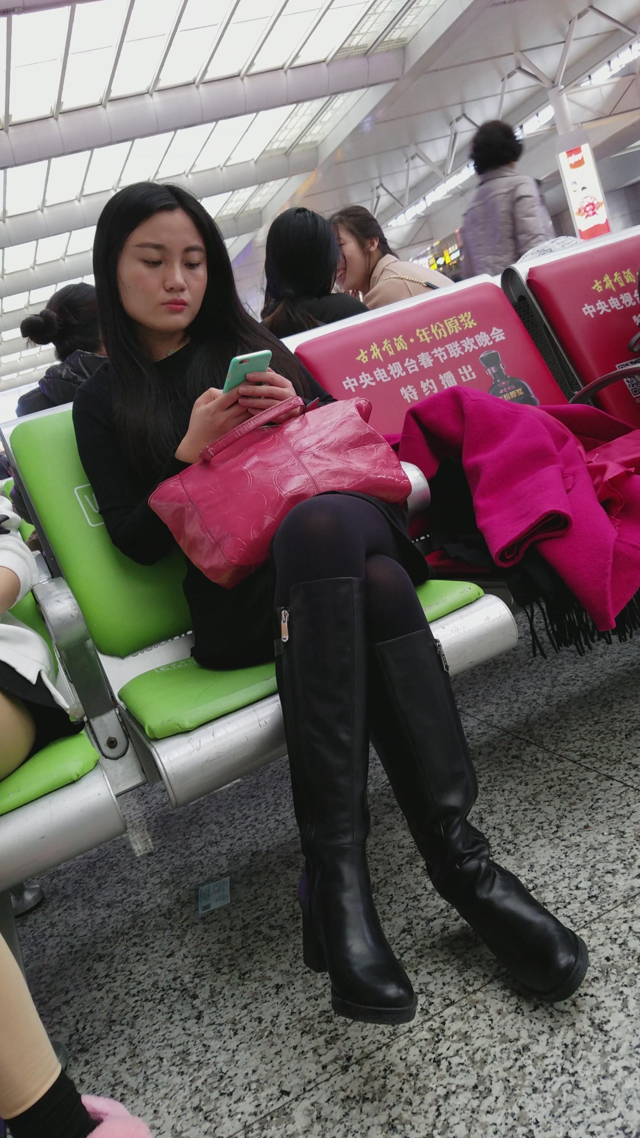 4k-高铁站候车室的黑丝长腿天生丽质的女孩 编号2964