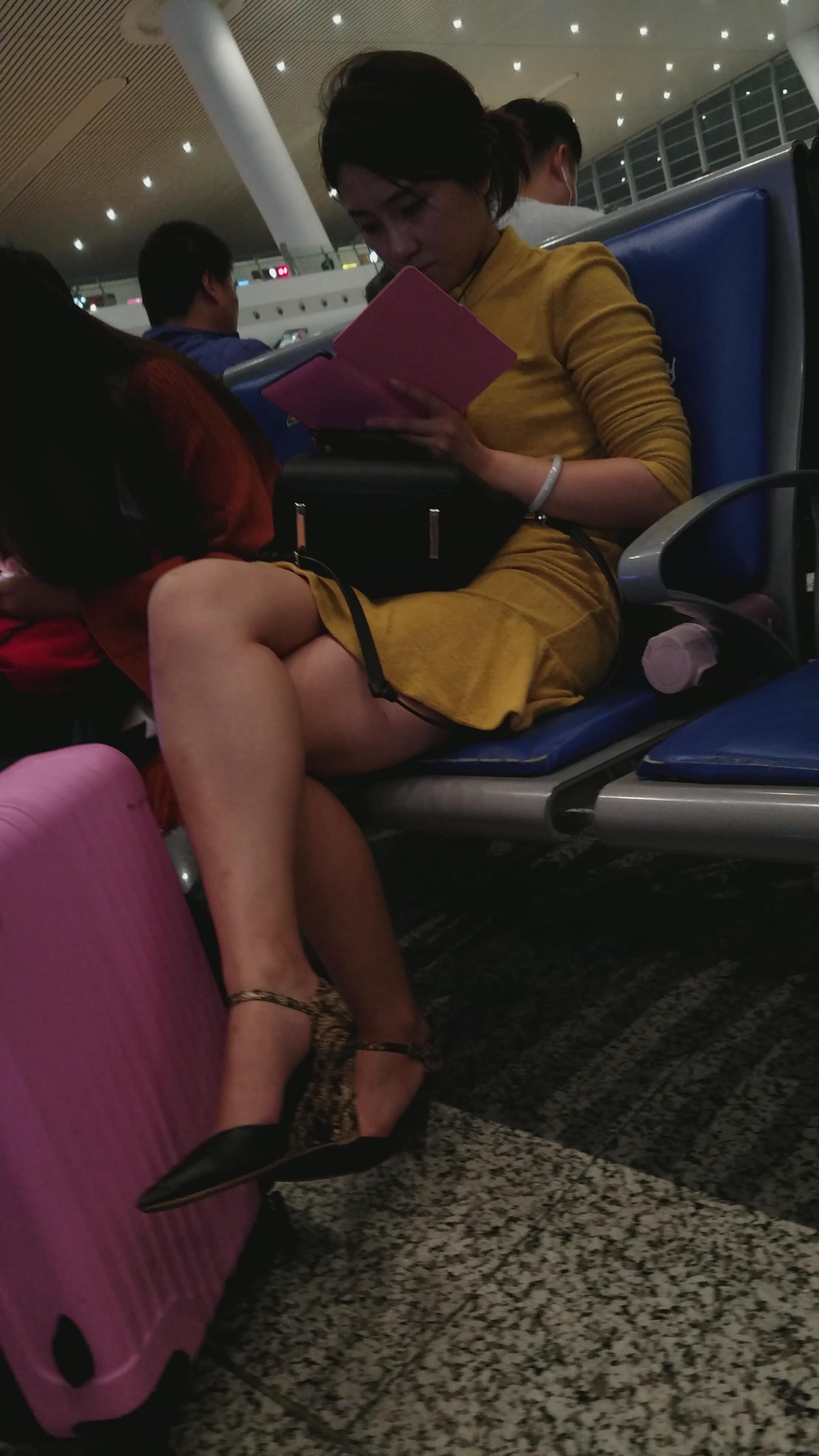 4k-高铁站候车室拍摄颜值爆表的黄衣美腿高跟鞋少妇 编号2989