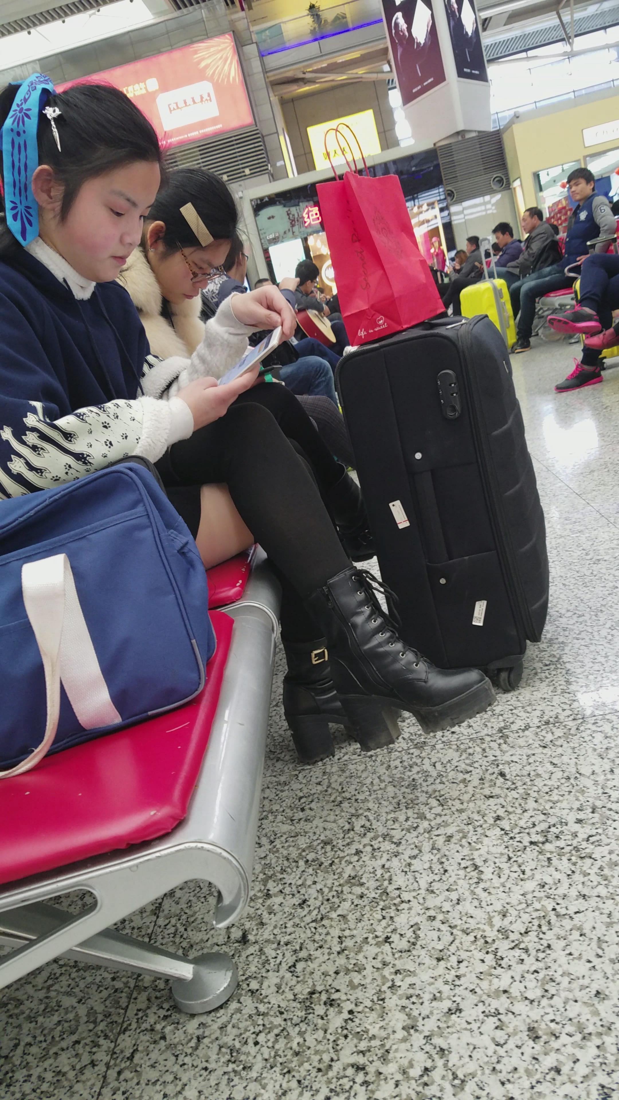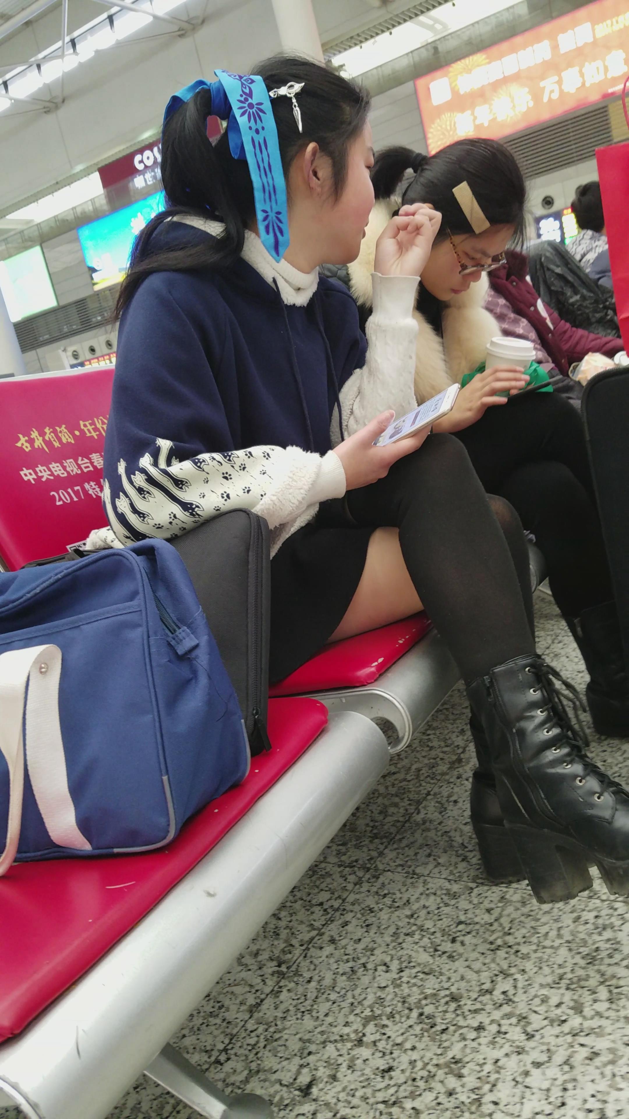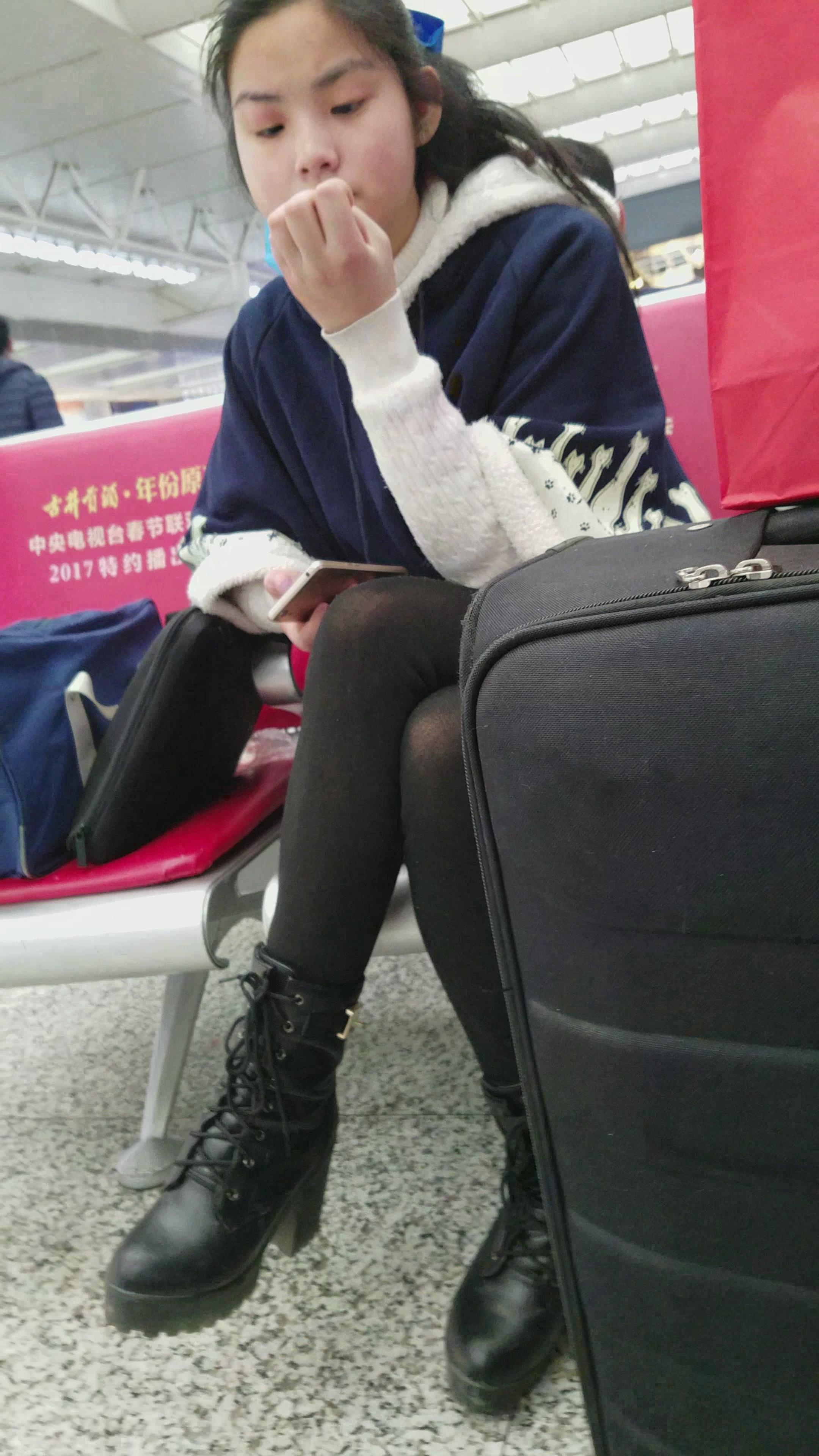 4k-高铁站候车室拍摄黑丝可爱清纯小美女 编号2991
