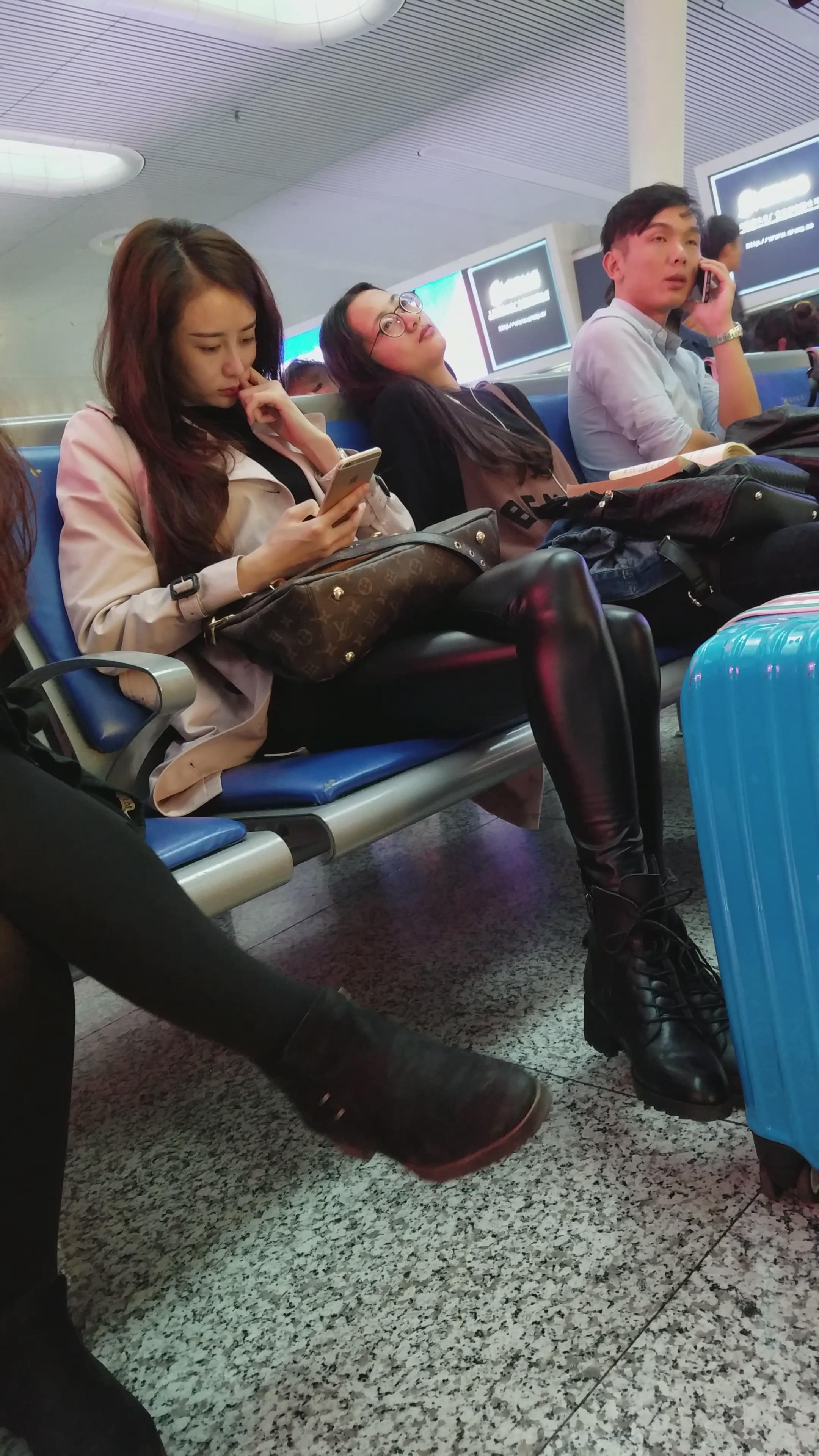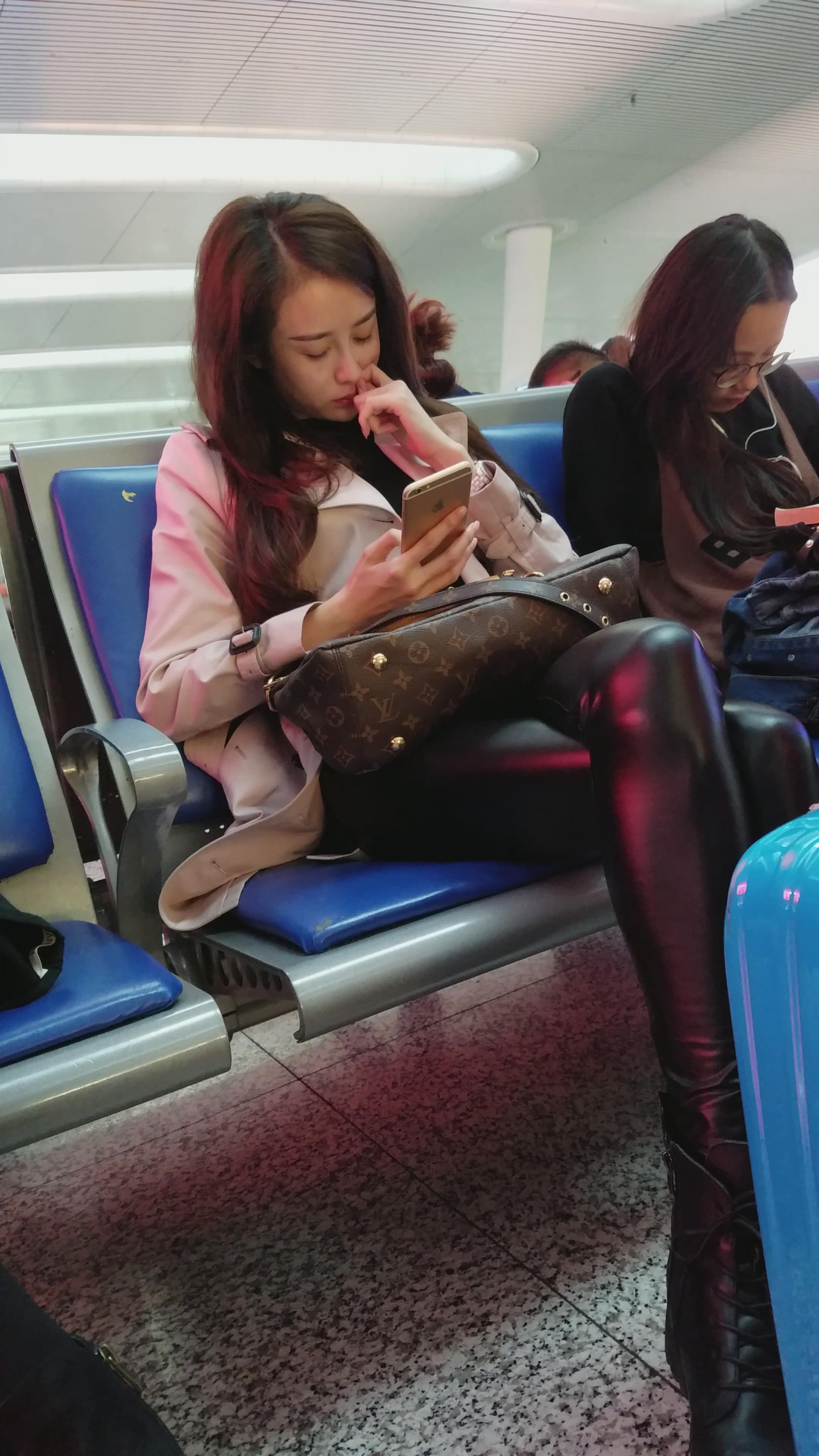 4k-高铁站候车室拍摄温柔甜美的紧身皮裤女神 编号2994