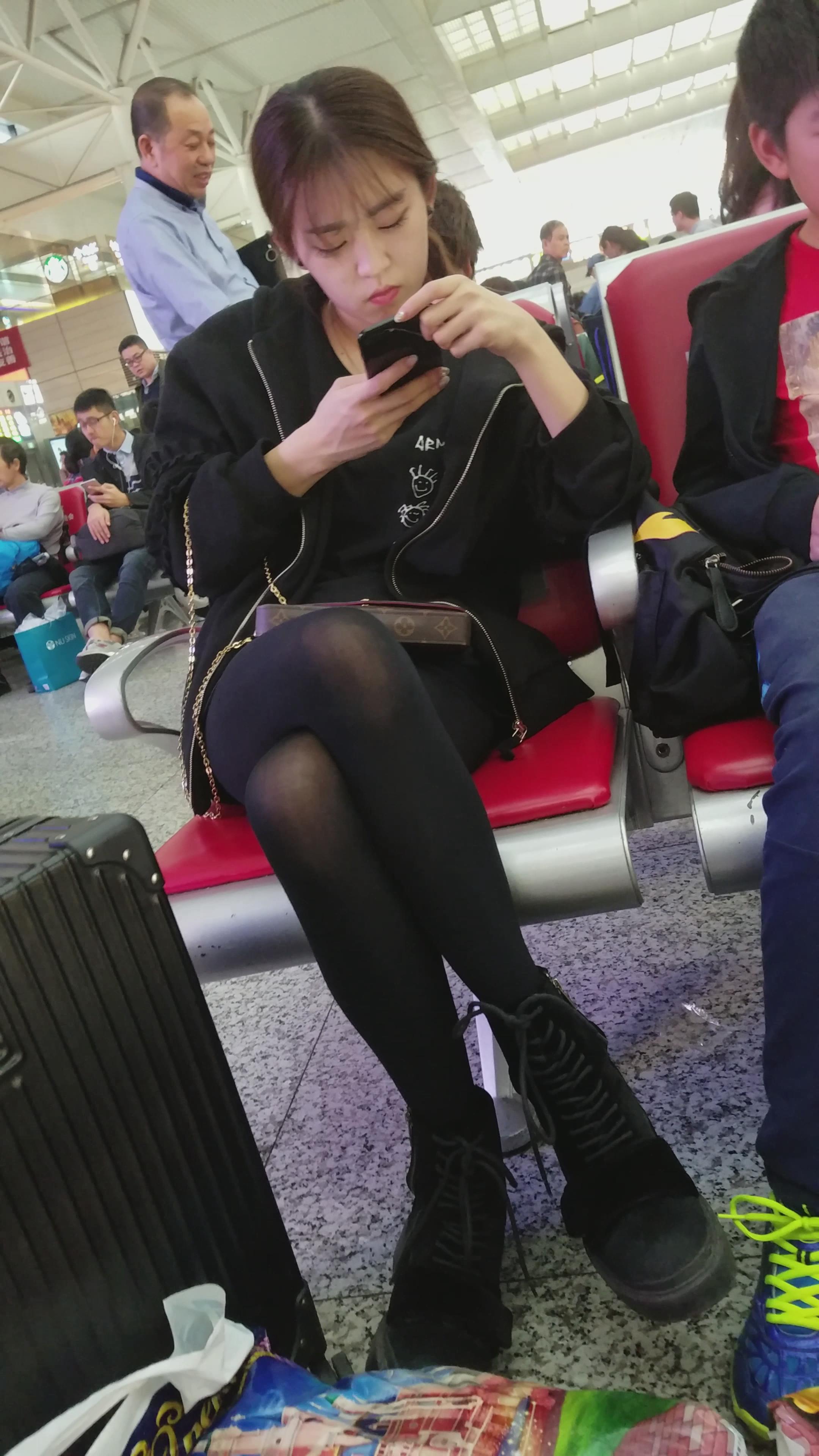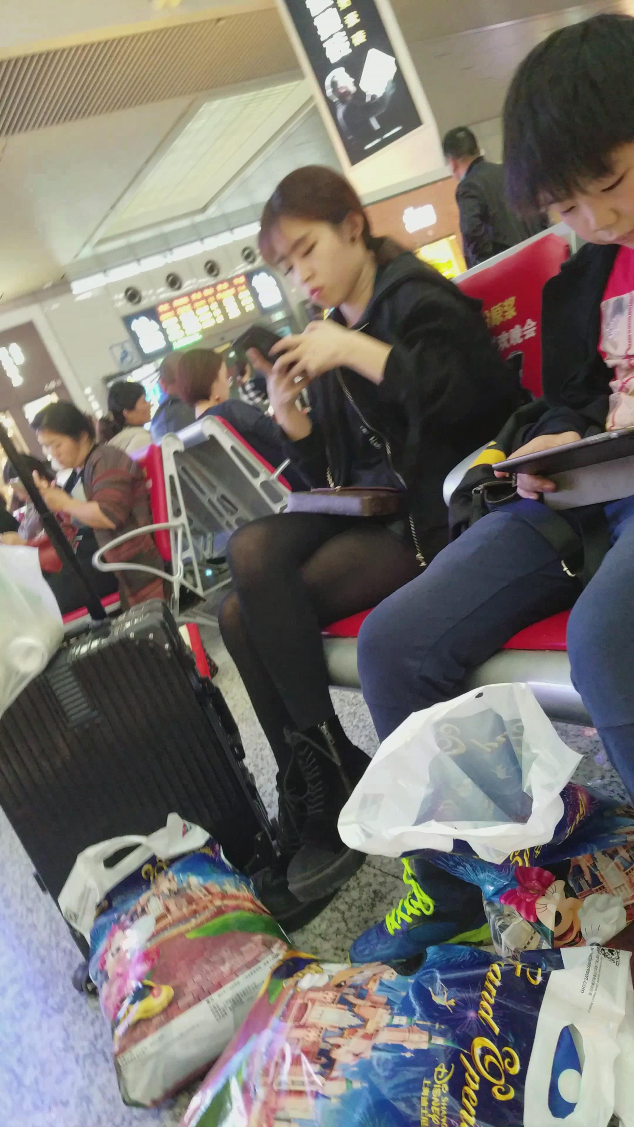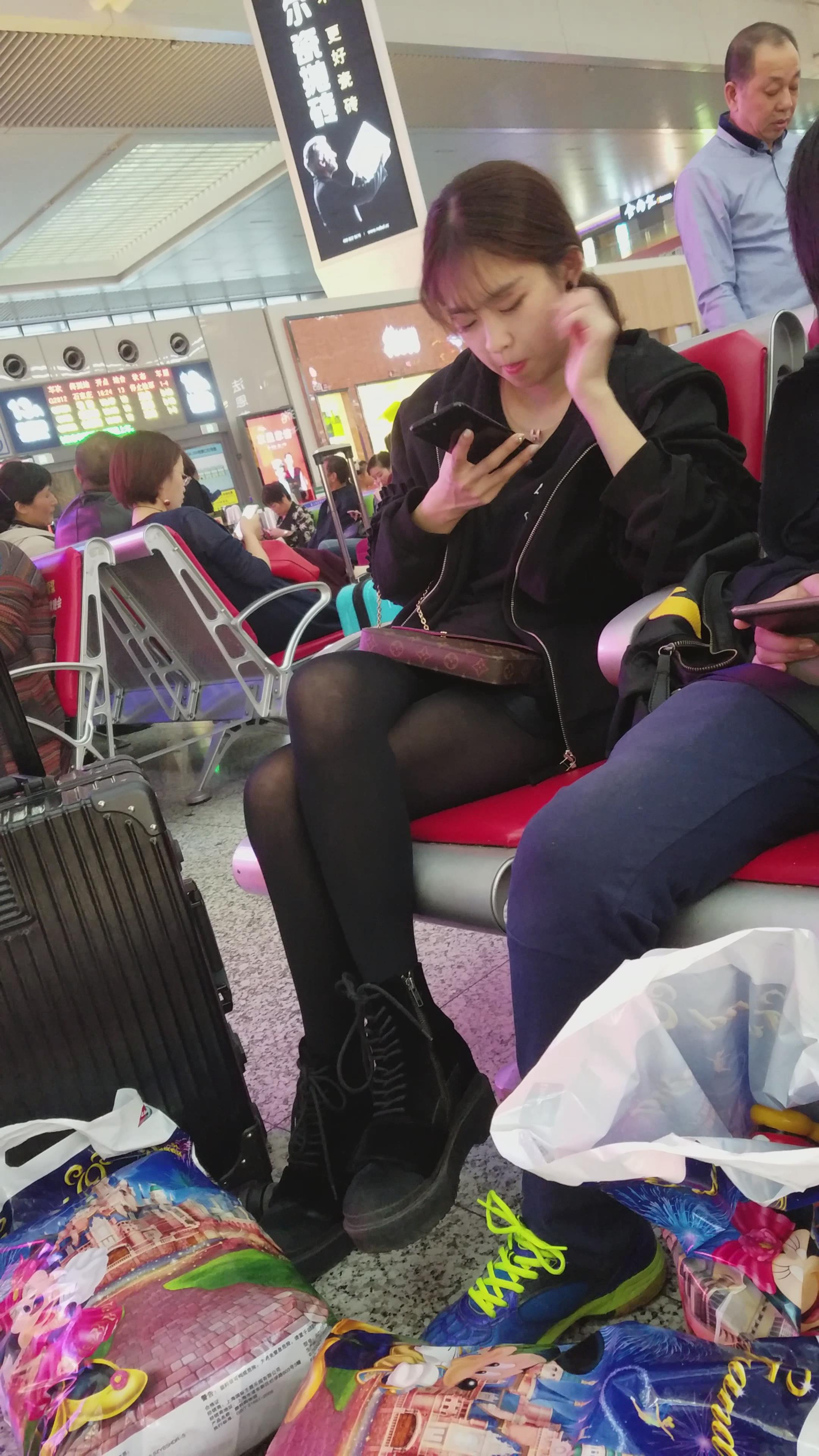 4k-高铁站候车室拍摄低头玩手机的黑丝小萝莉美眉 编号3005