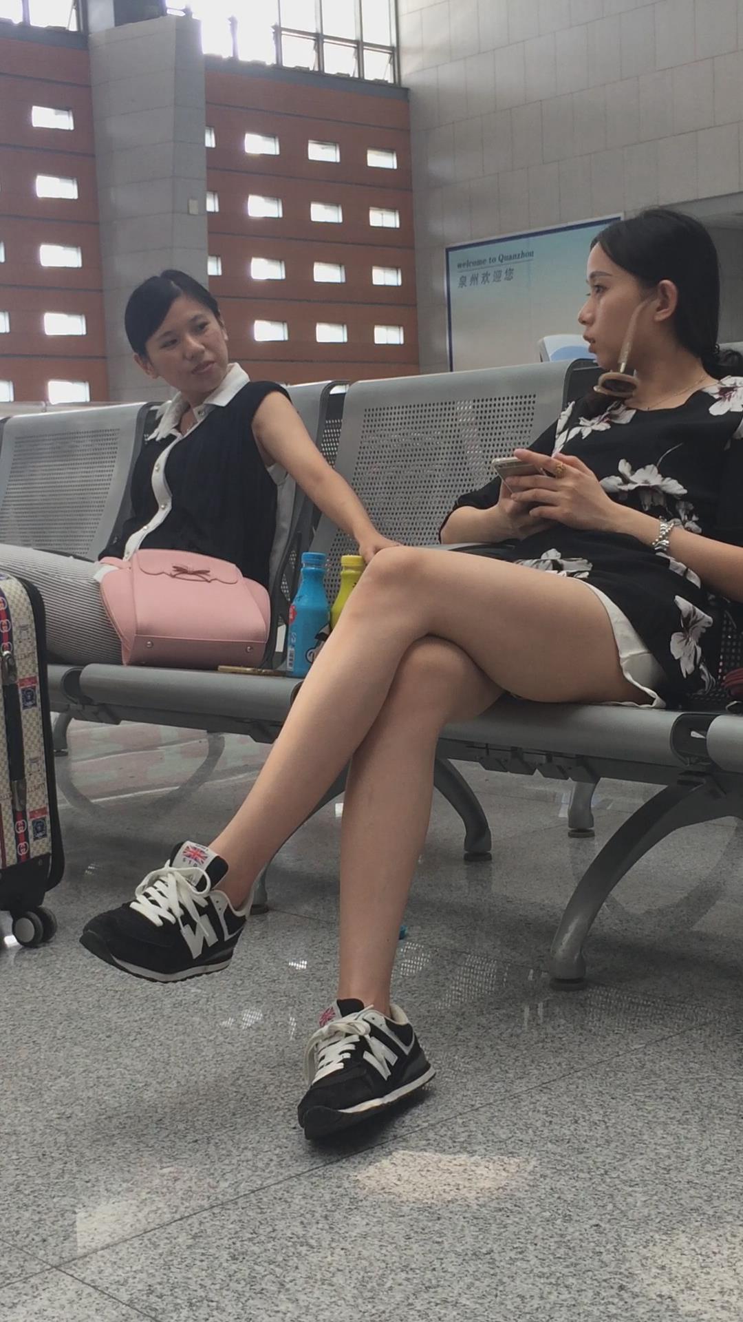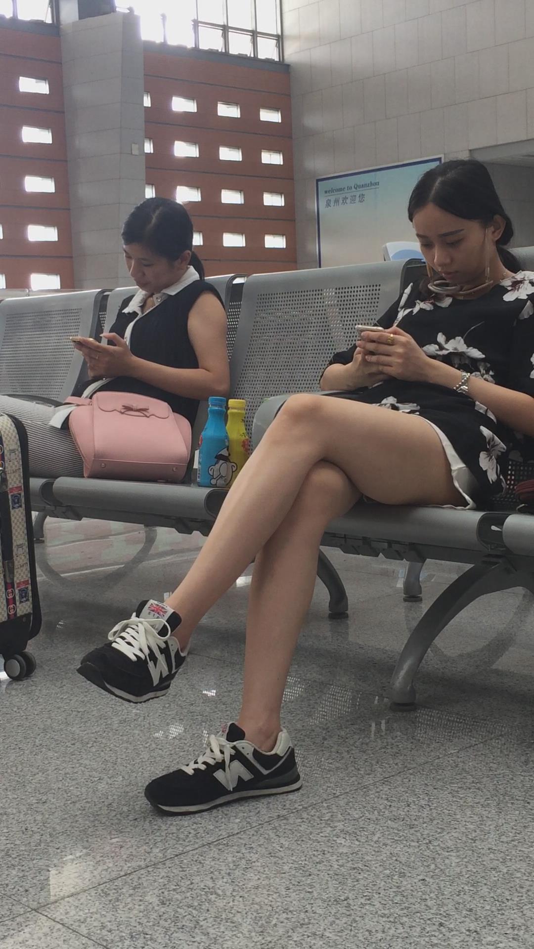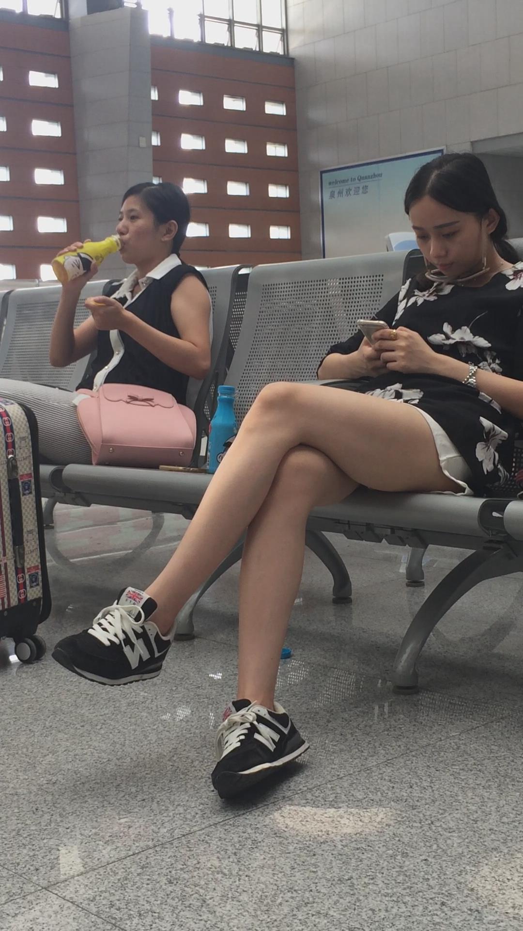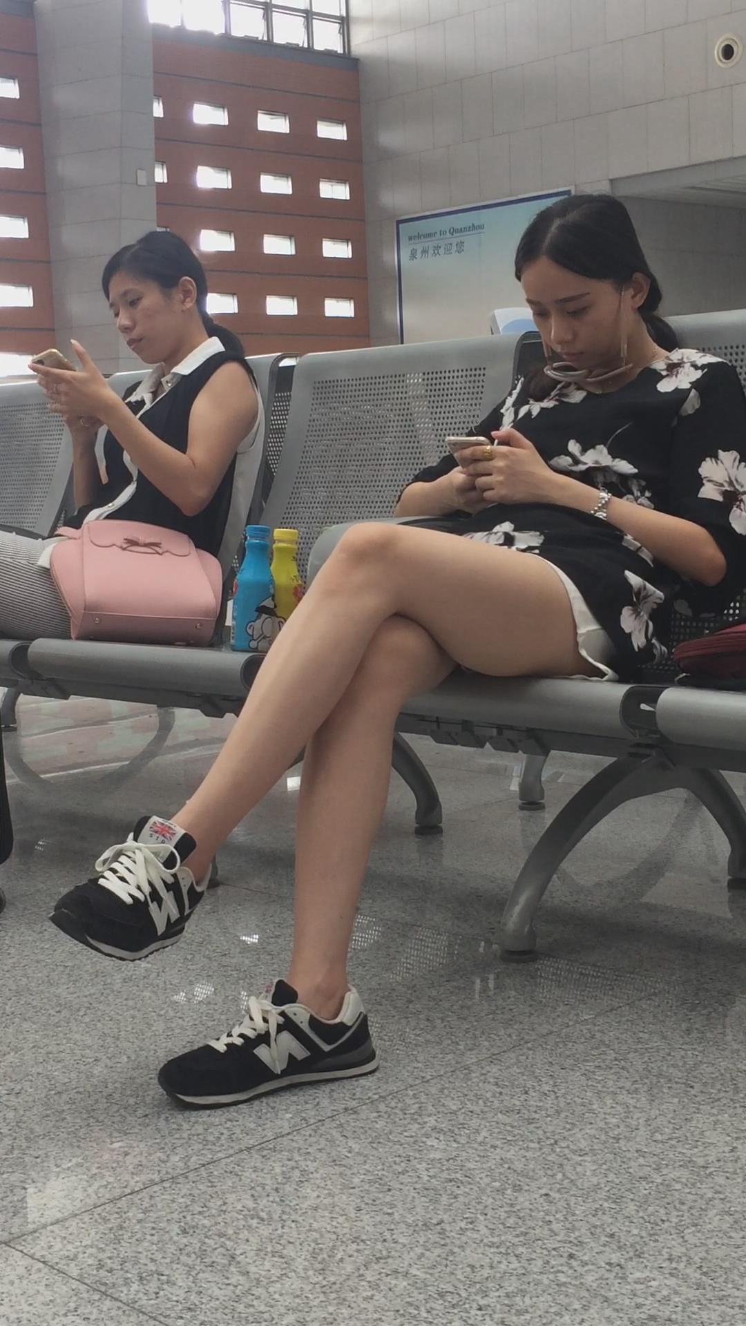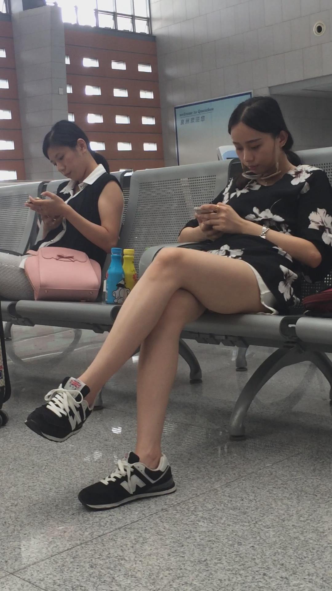 车站候车室拍摄长腿短裙妹子,目测身高超过一米七 编号3010