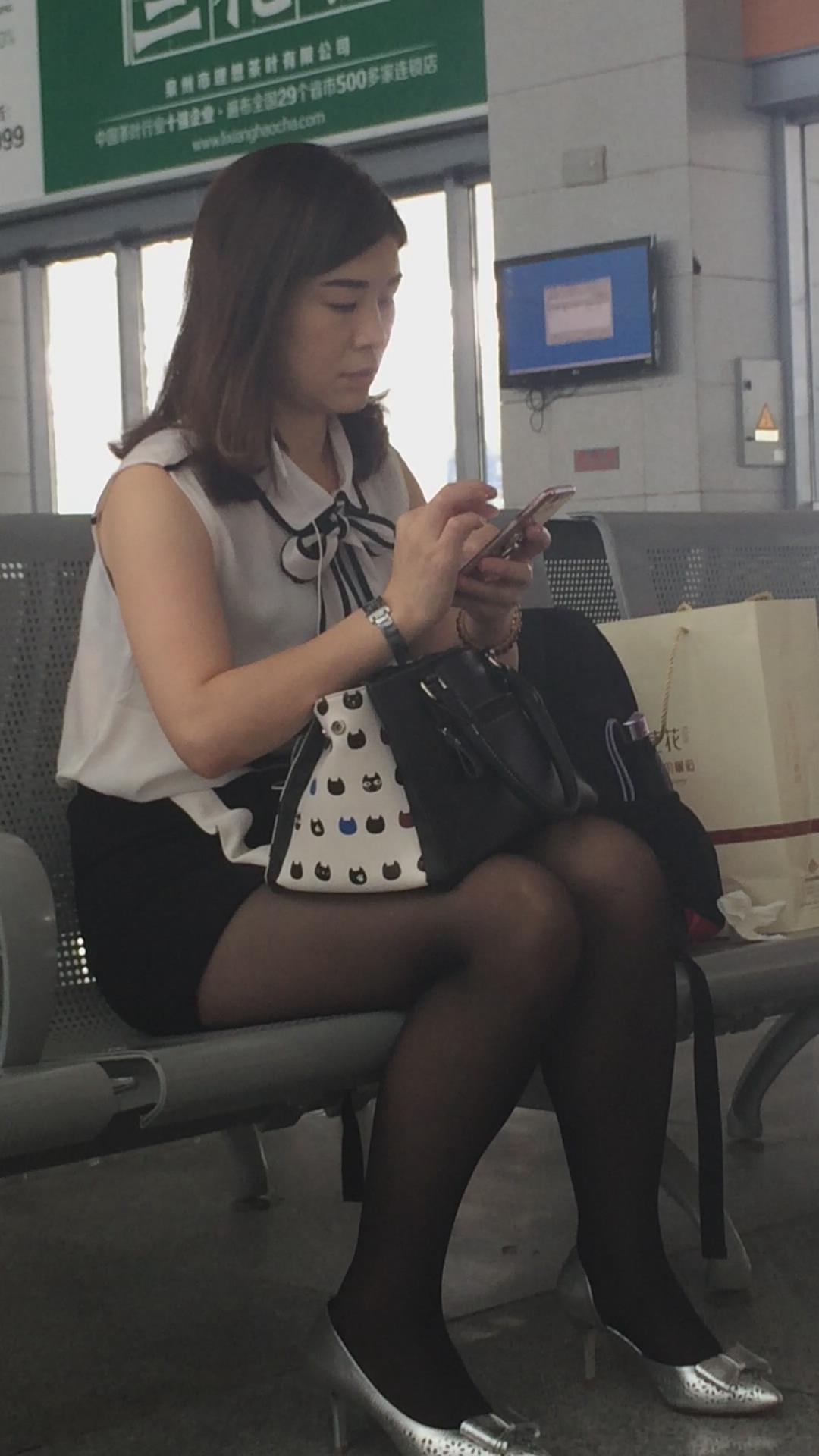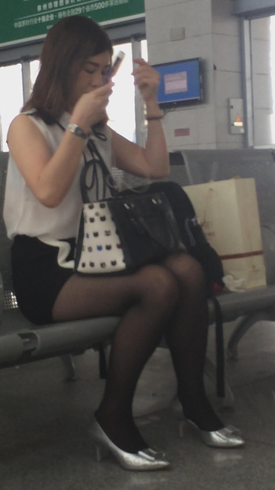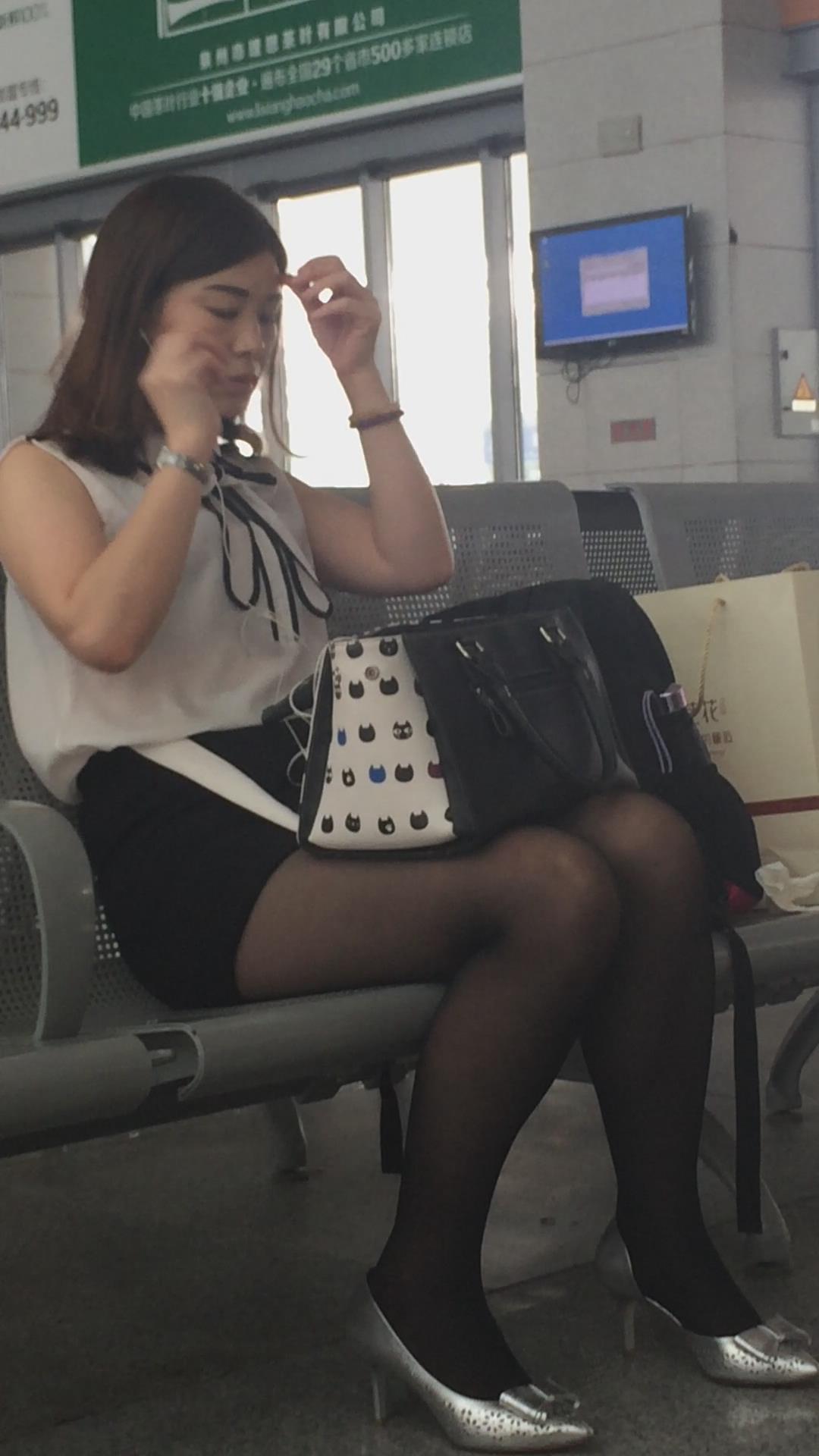 高铁候车室拍摄丰满身材黑丝高跟鞋颜值爆表的御姐 编号3015