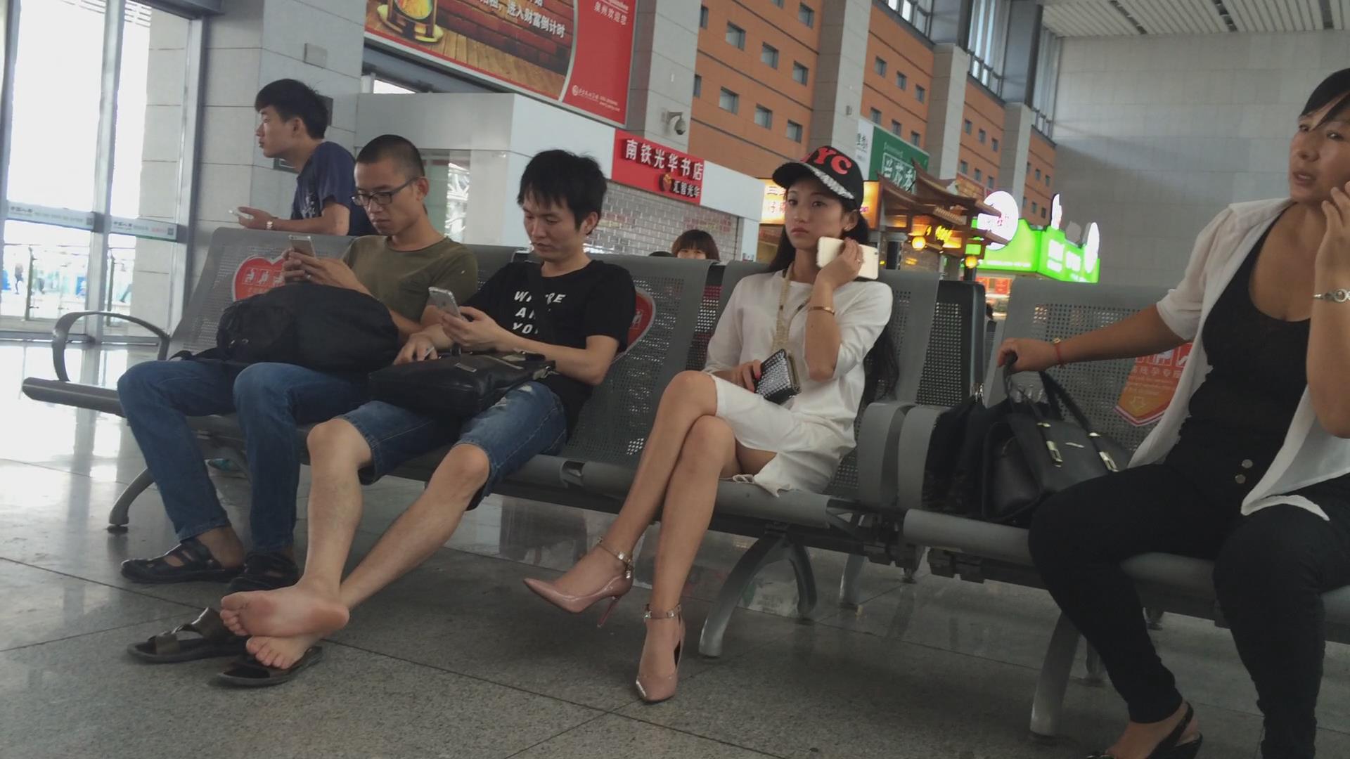 高铁站候车室偶遇超美尖嘴高跟鸭舌帽女神 编号3030