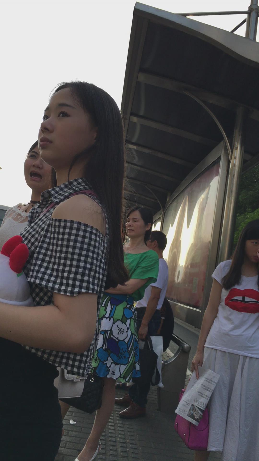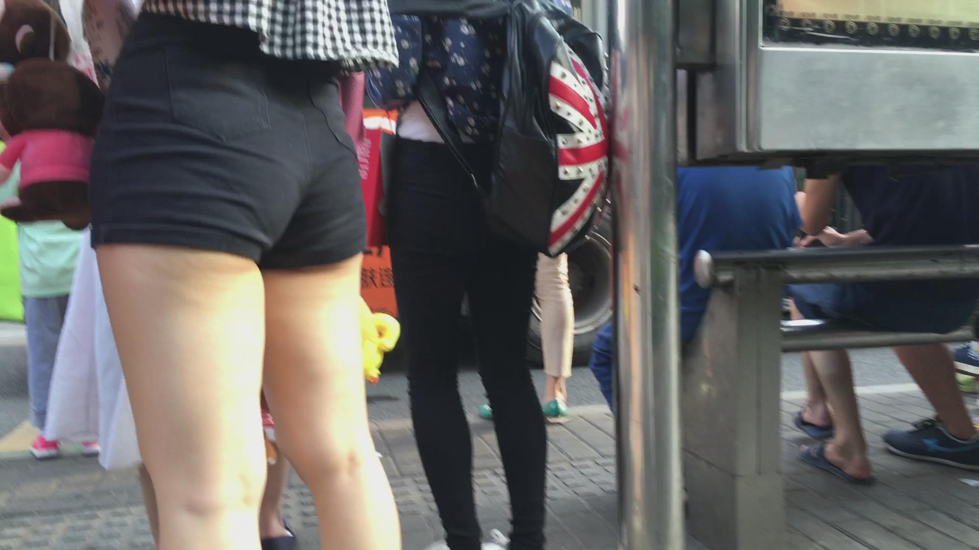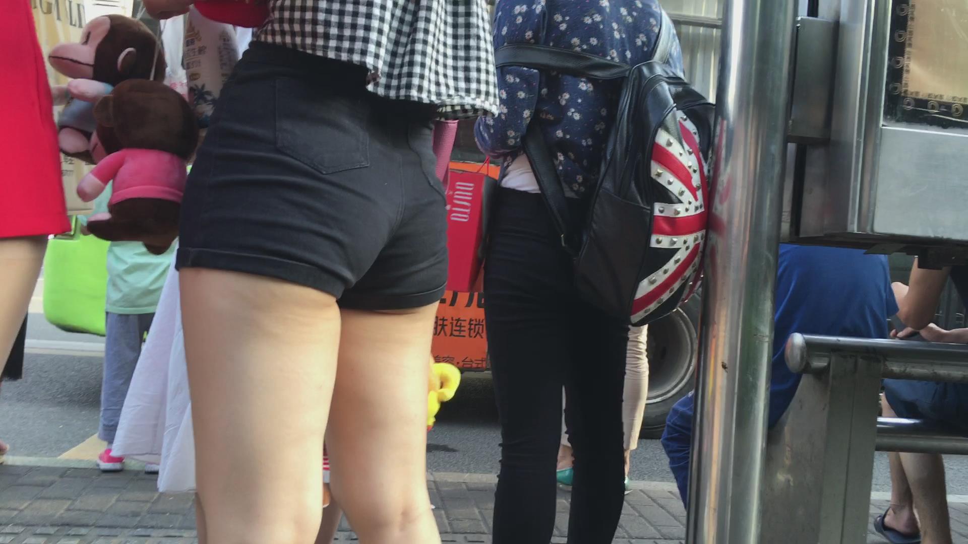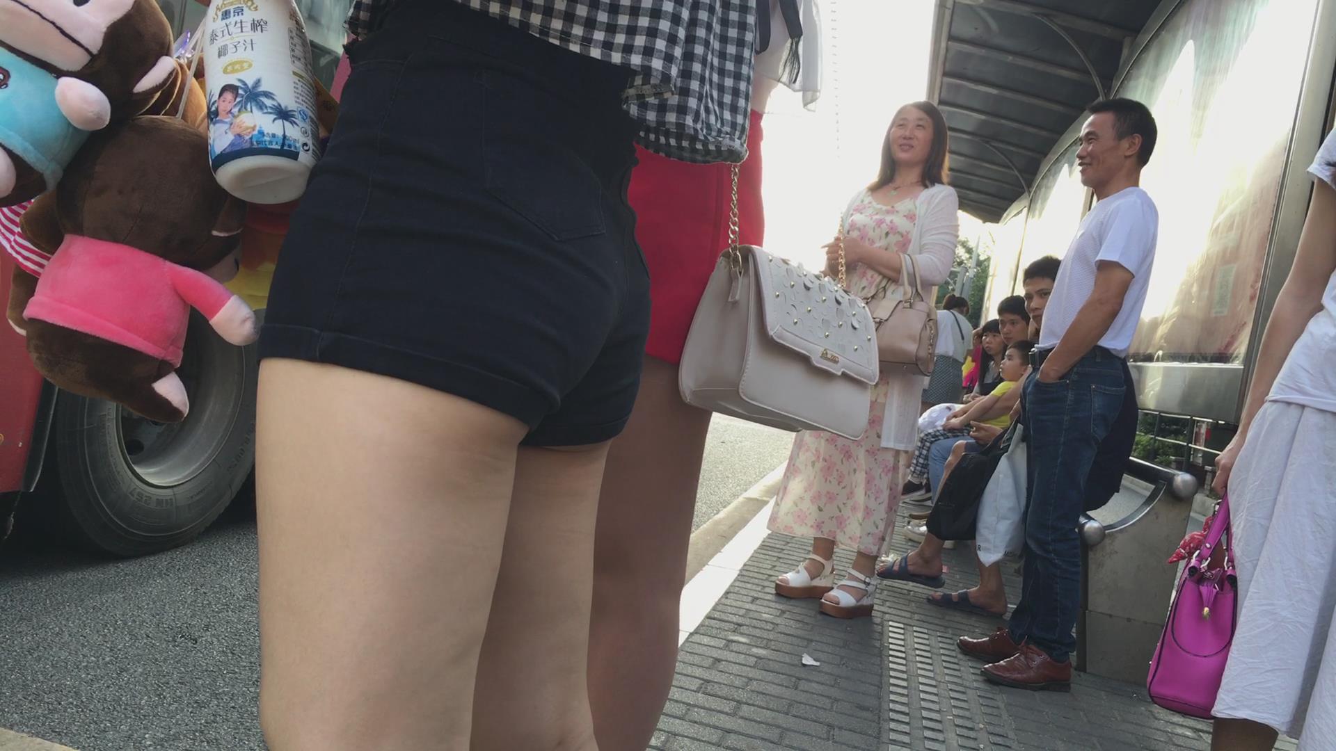 街拍公交站等车的丰臀高腰超短热裤美女 编号4533