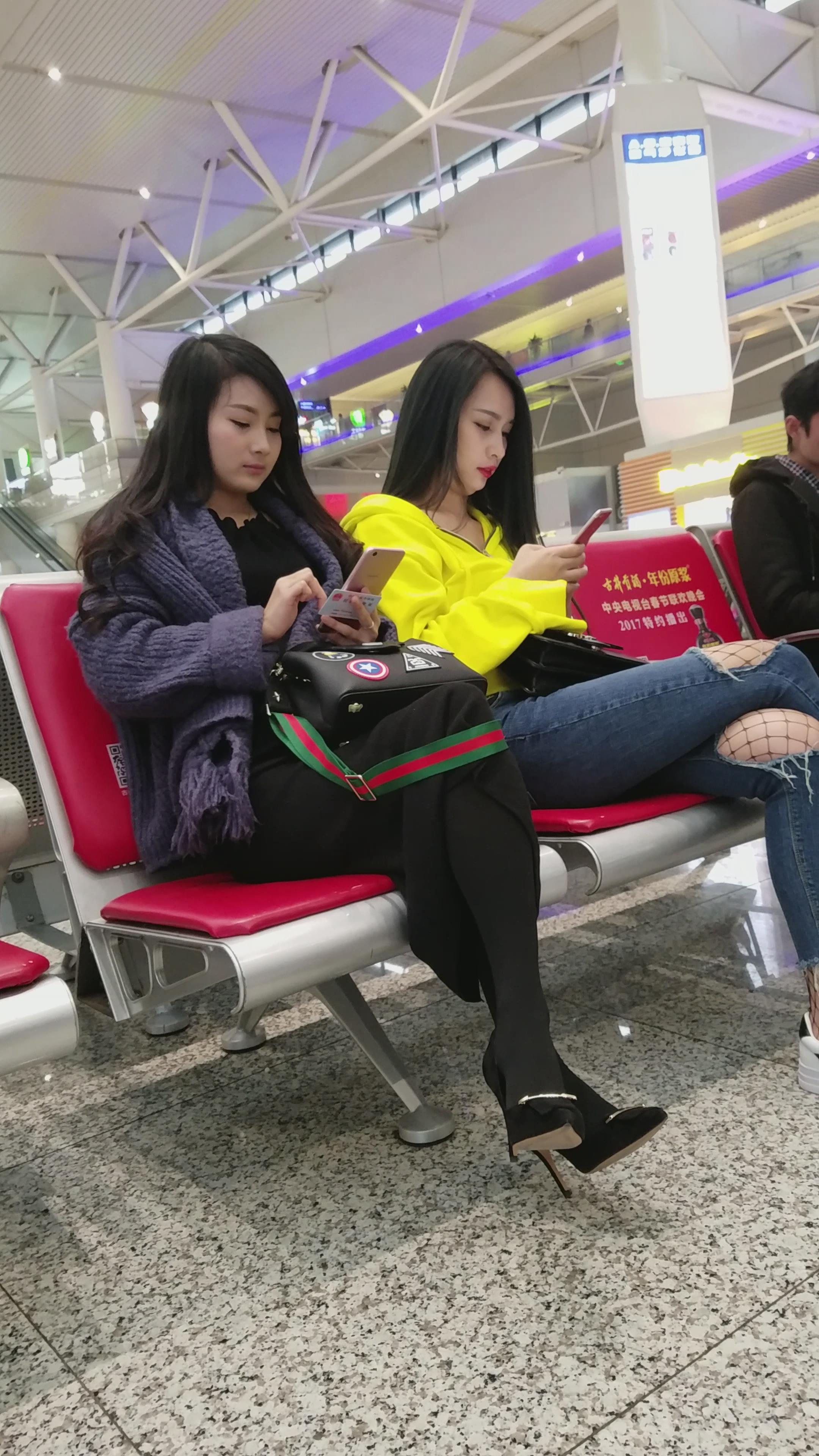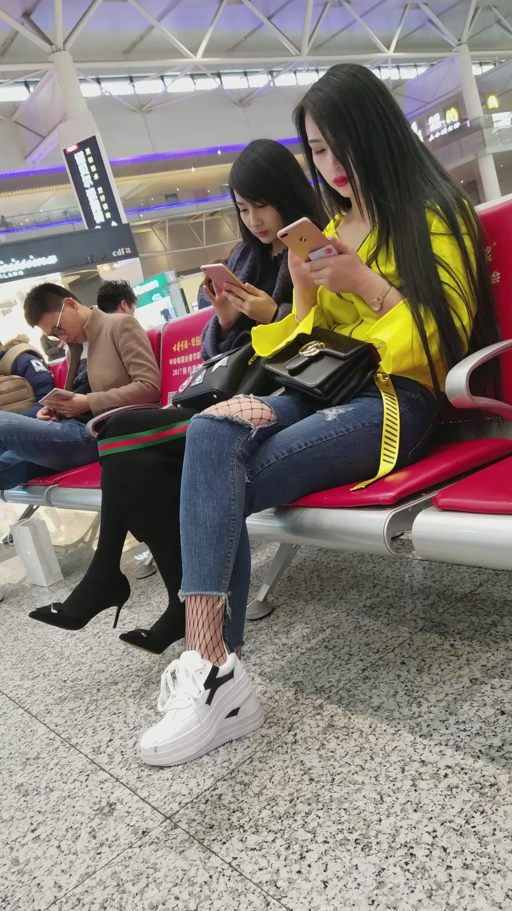 4k-破洞紧身牛仔配大眼网袜的冷艳长发美女姐姐 编号3036
