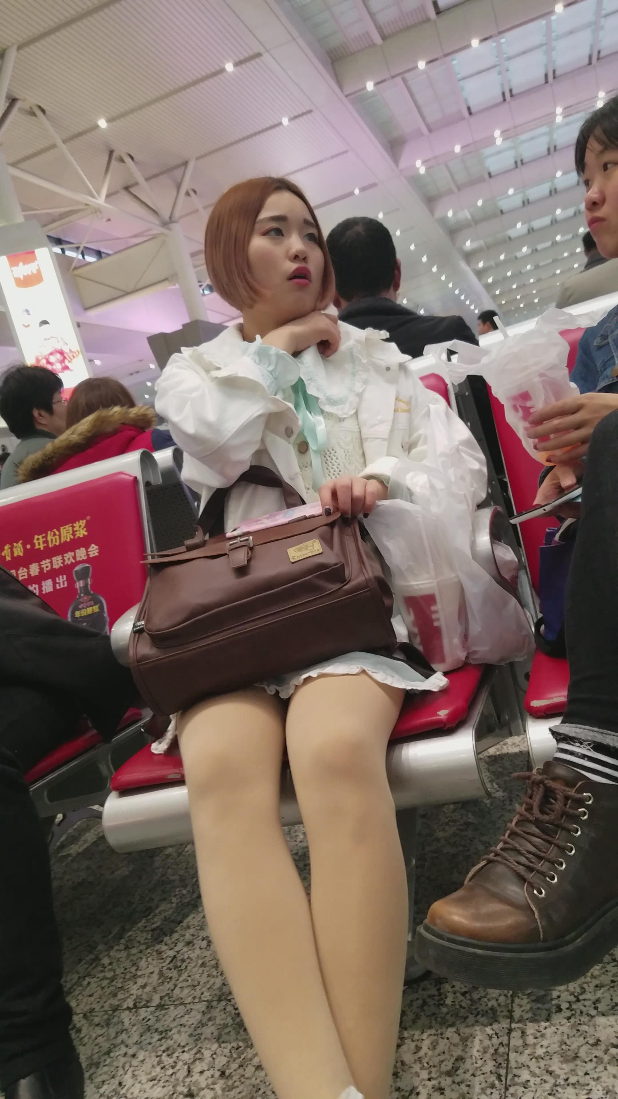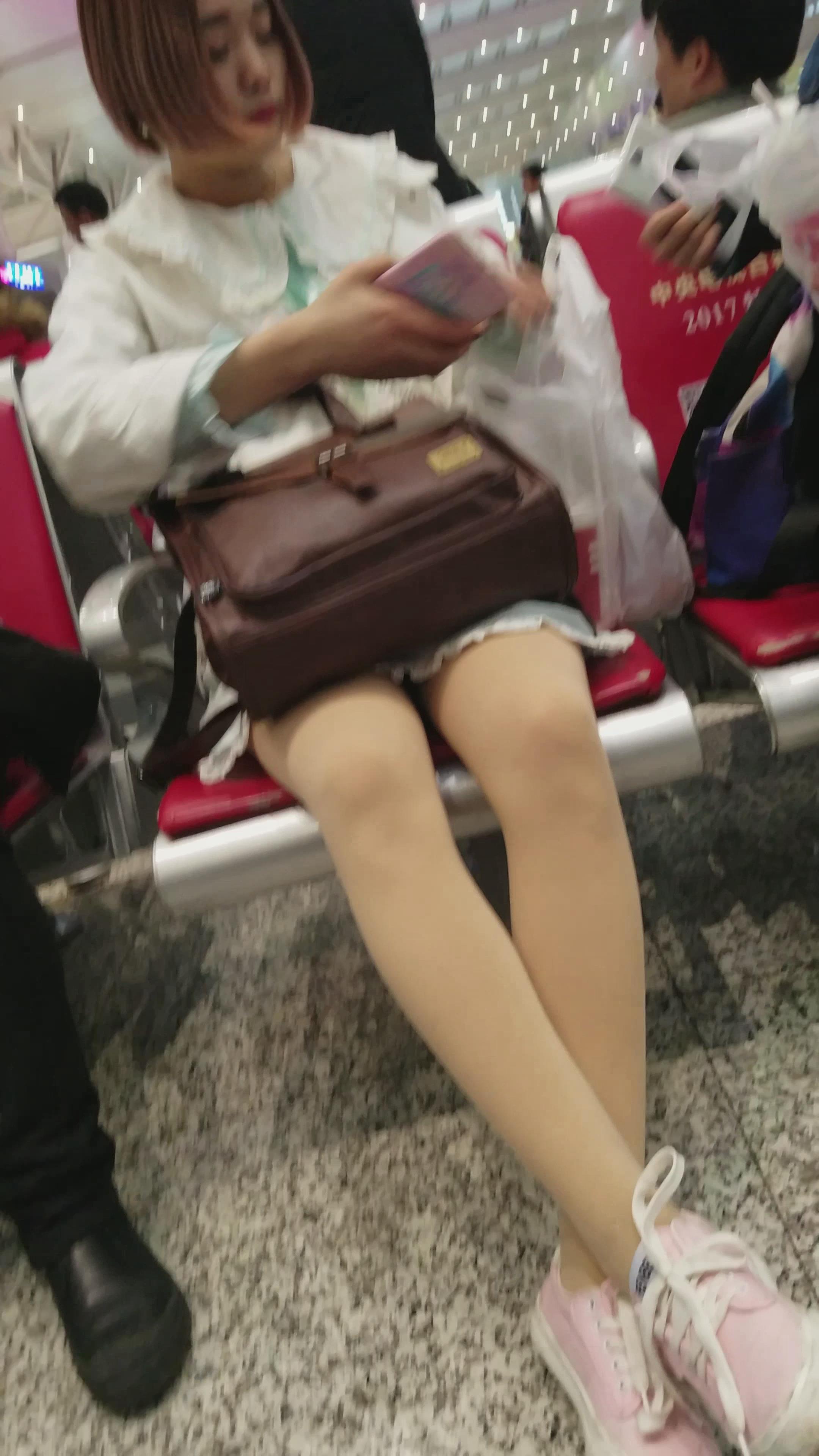 4k-车站候车室拍摄肉丝袜帆布鞋短发女孩 编号3037