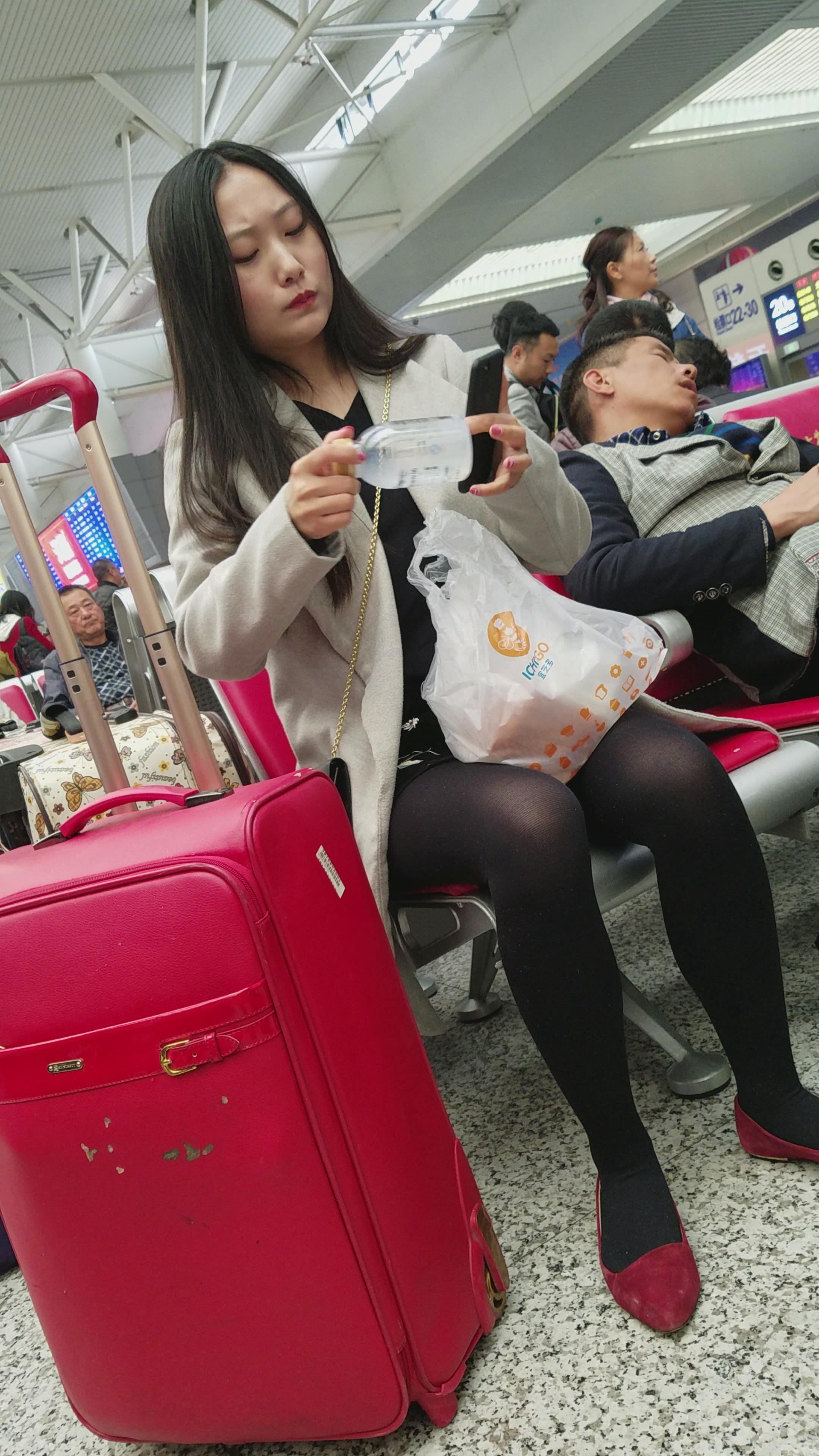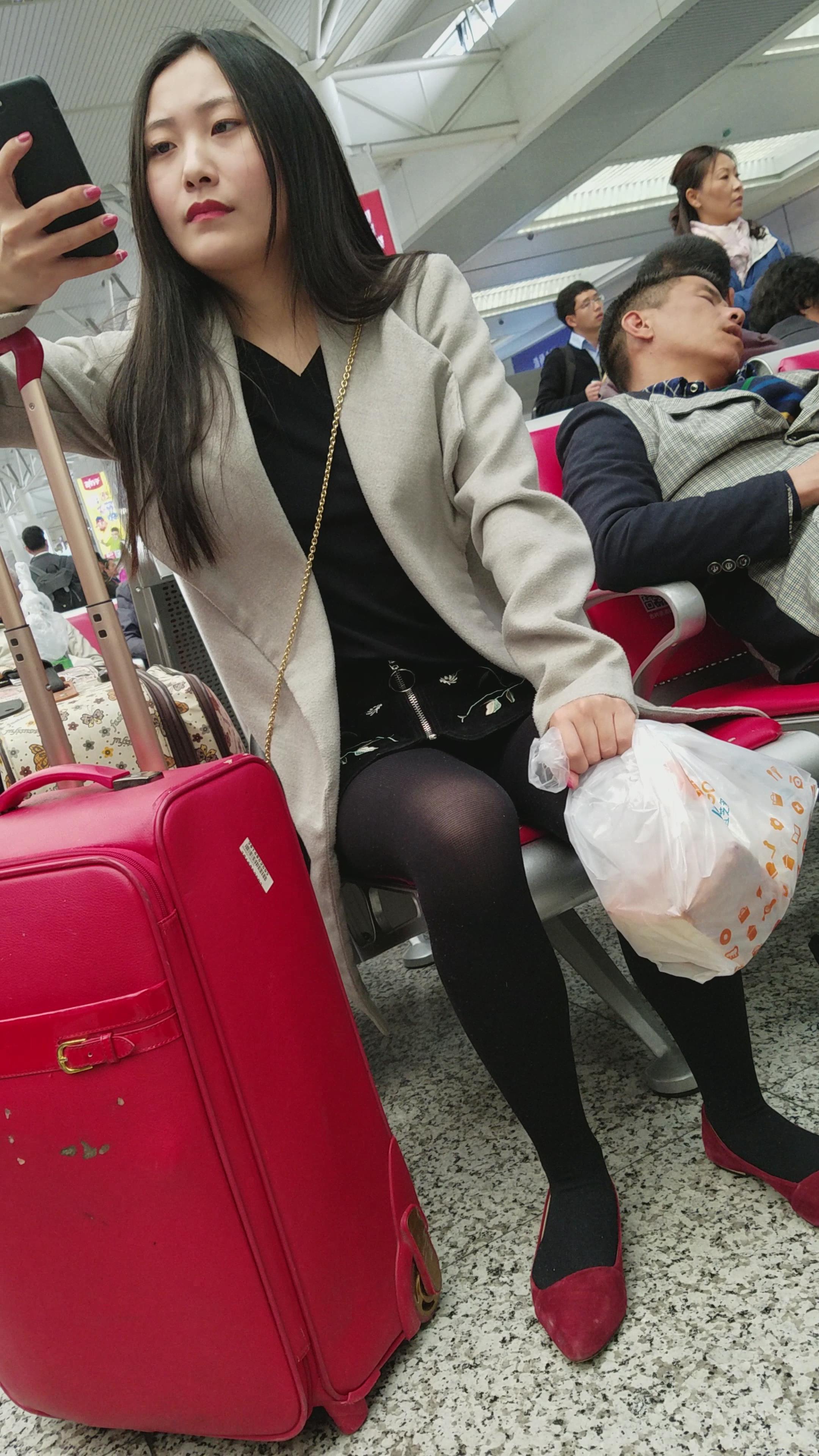 4k-高铁站拍摄黑丝美腿高跟鞋美女 编号3056