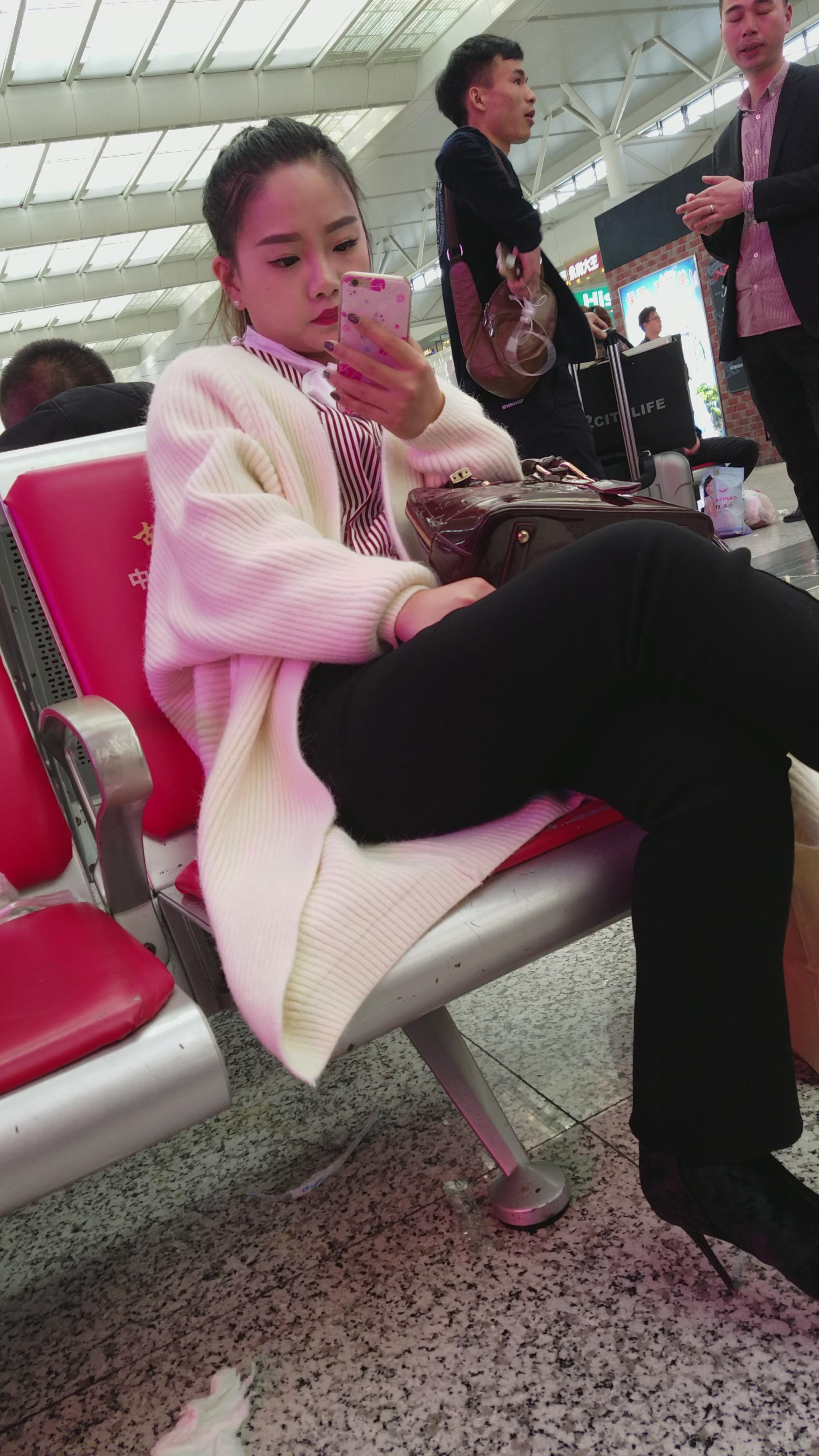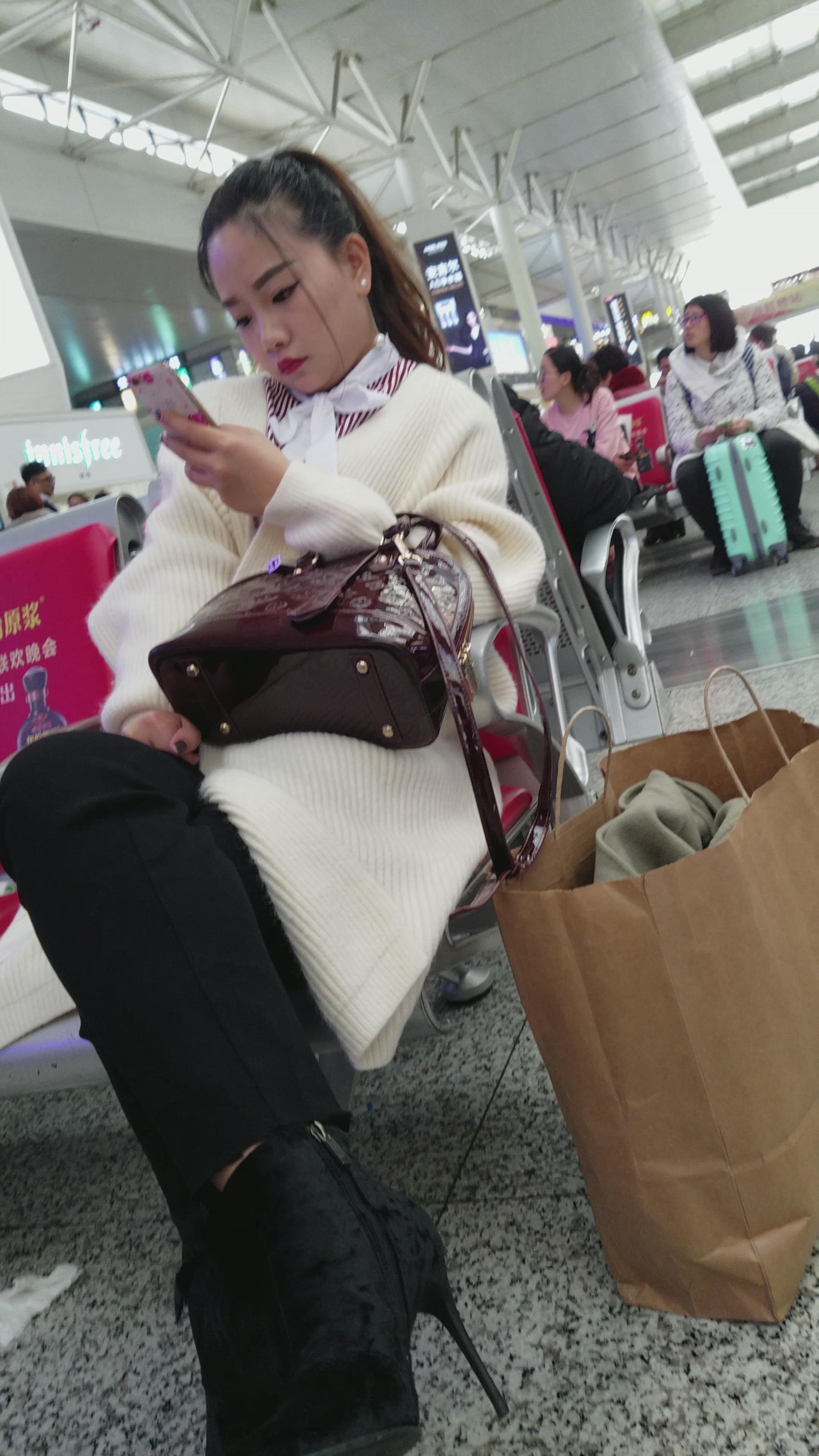 4k-高铁站候车室拍摄长腿性感马尾辫女神 编号3074