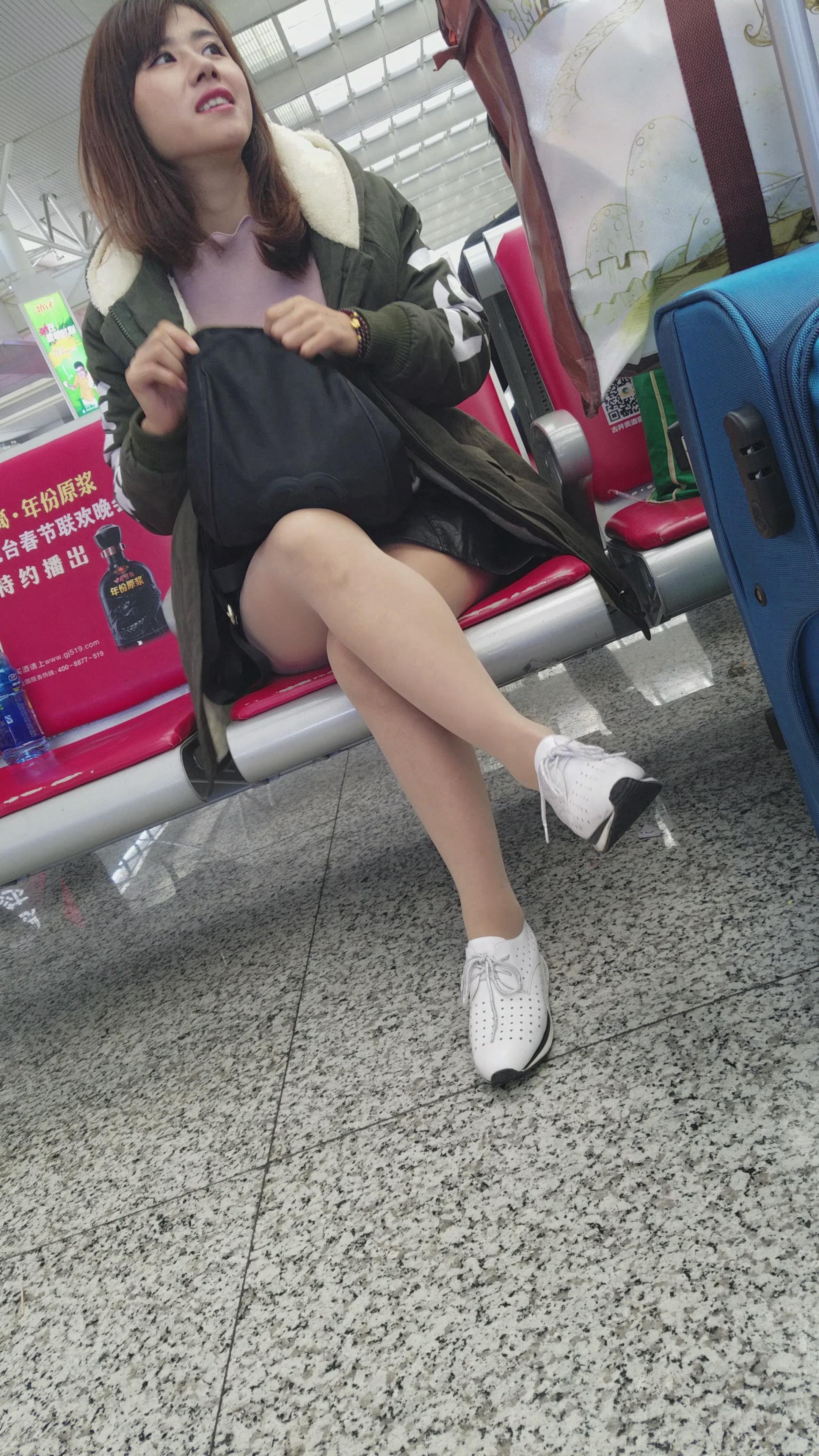 4k-高铁站候车室拍摄美腿运动鞋甜美漂亮美女姐姐 编号3091