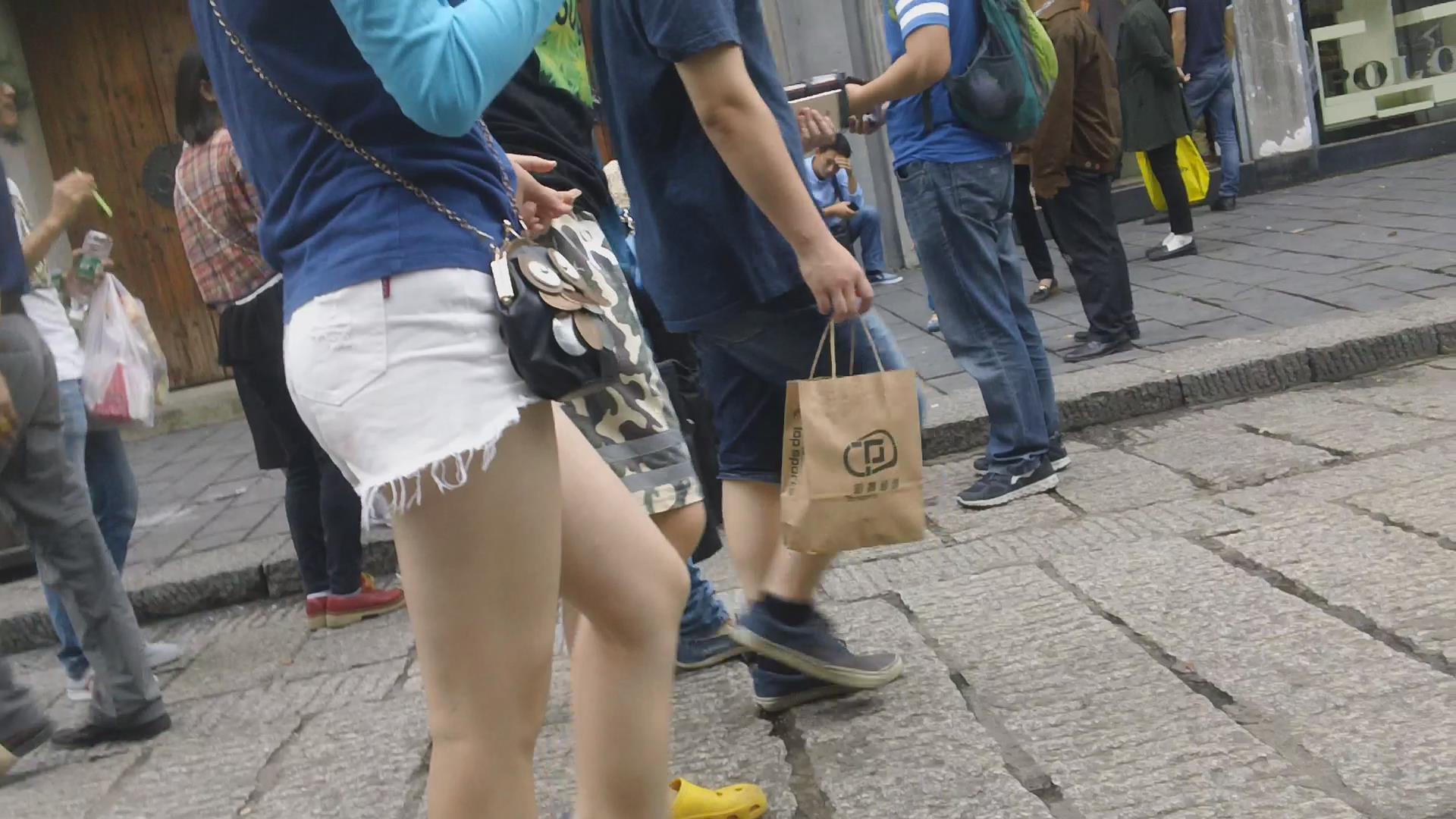 超短白色牛仔热裤美眉 编号4044