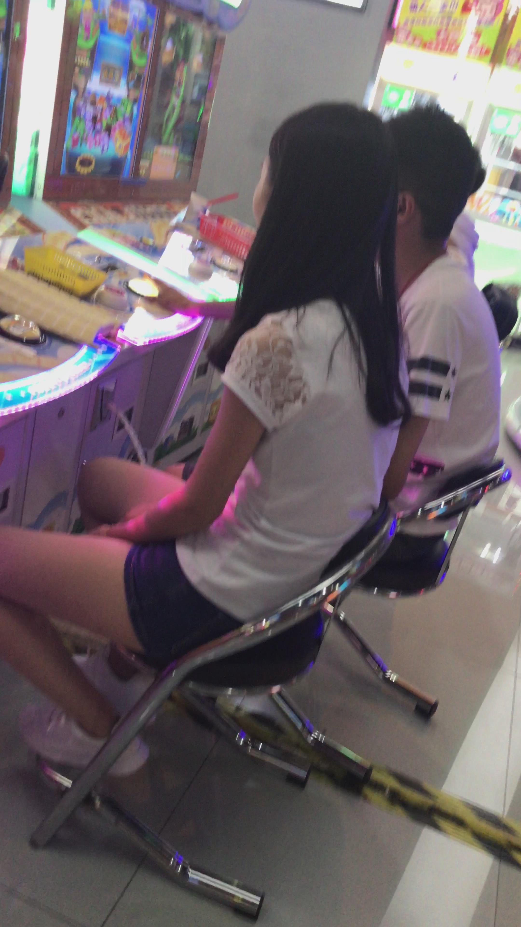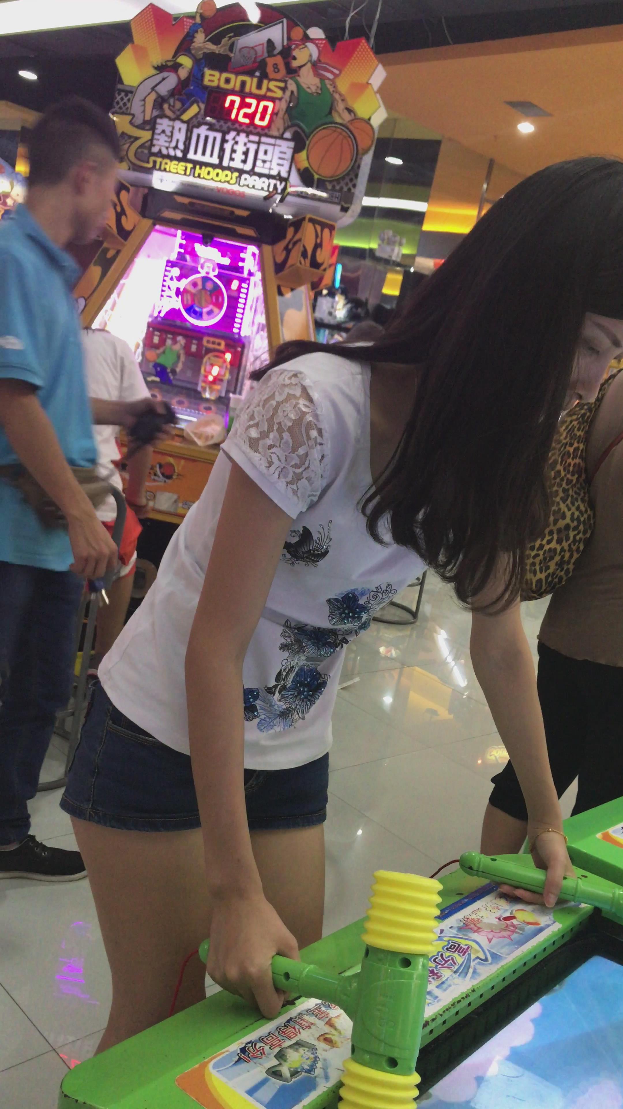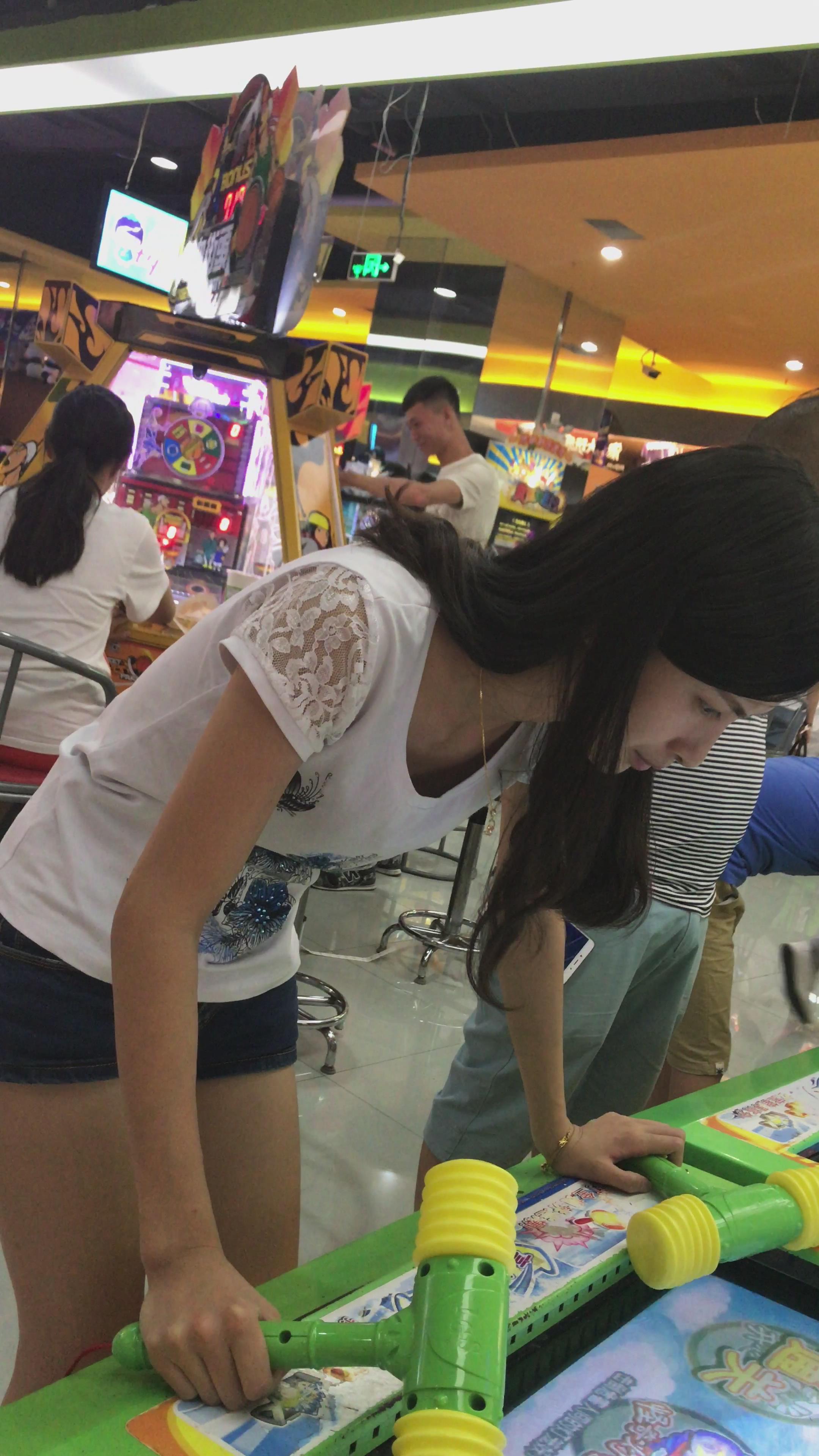 清新脱俗白T恤热裤小姐姐玩打地鼠游戏 编号4065