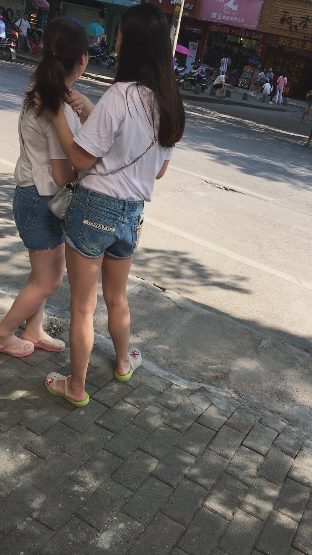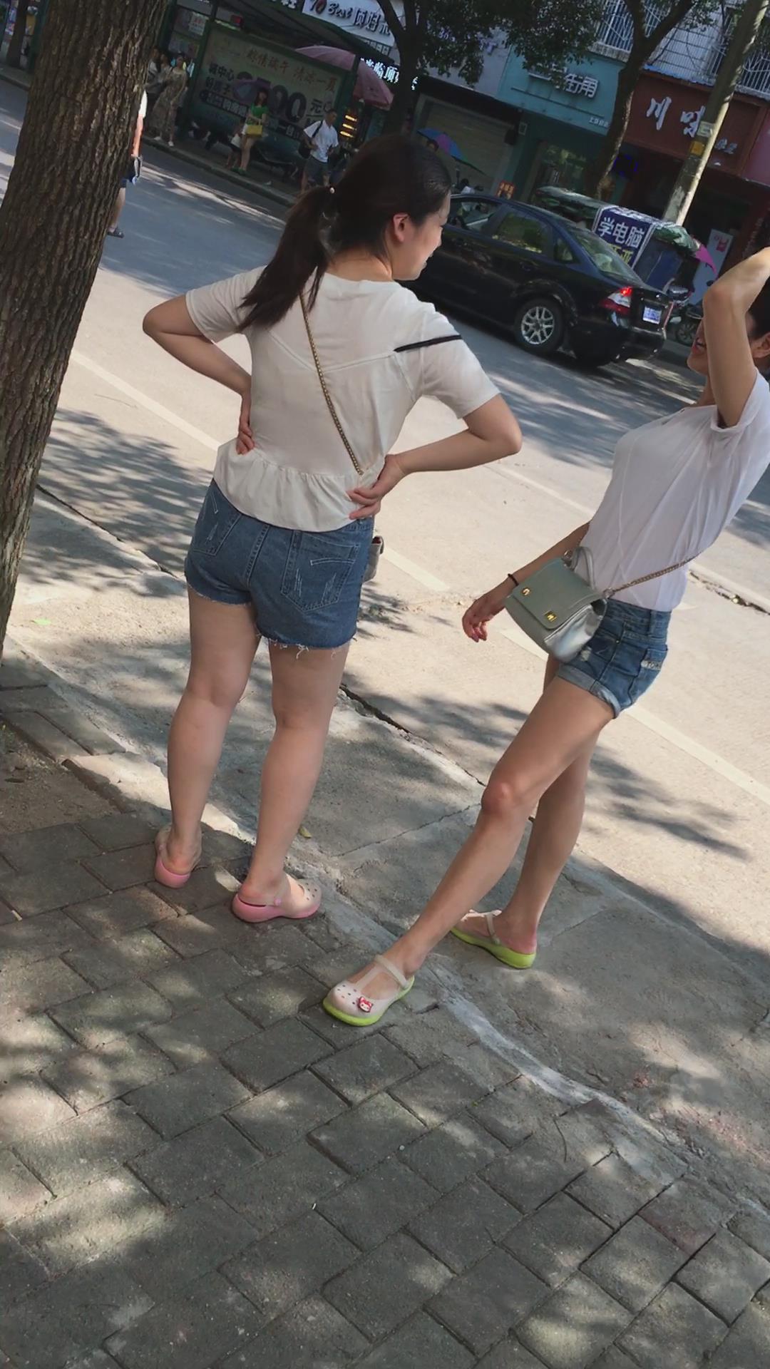 街拍牛仔热裤裸腿好姐妹 编号4086