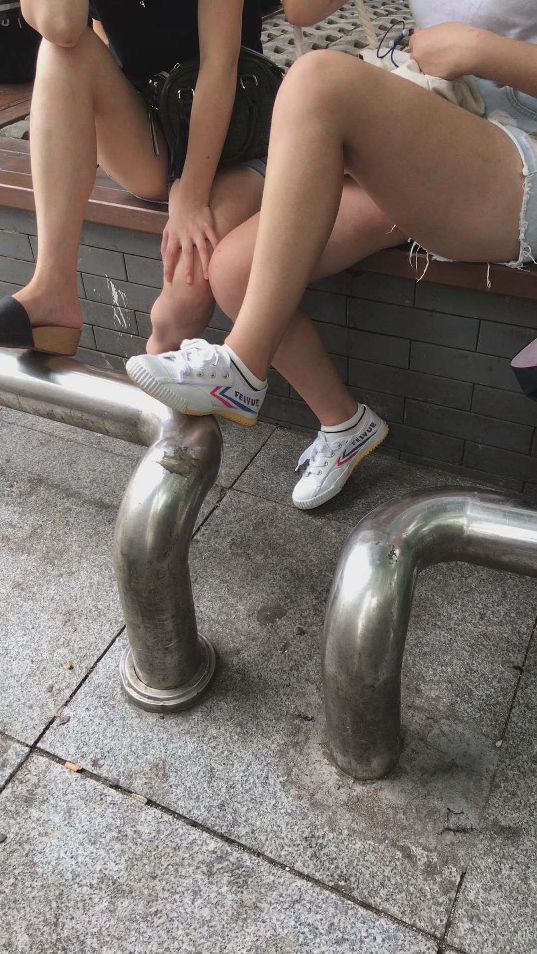 街拍花坛边聊天的两位清纯美腿姐妹花 编号4129