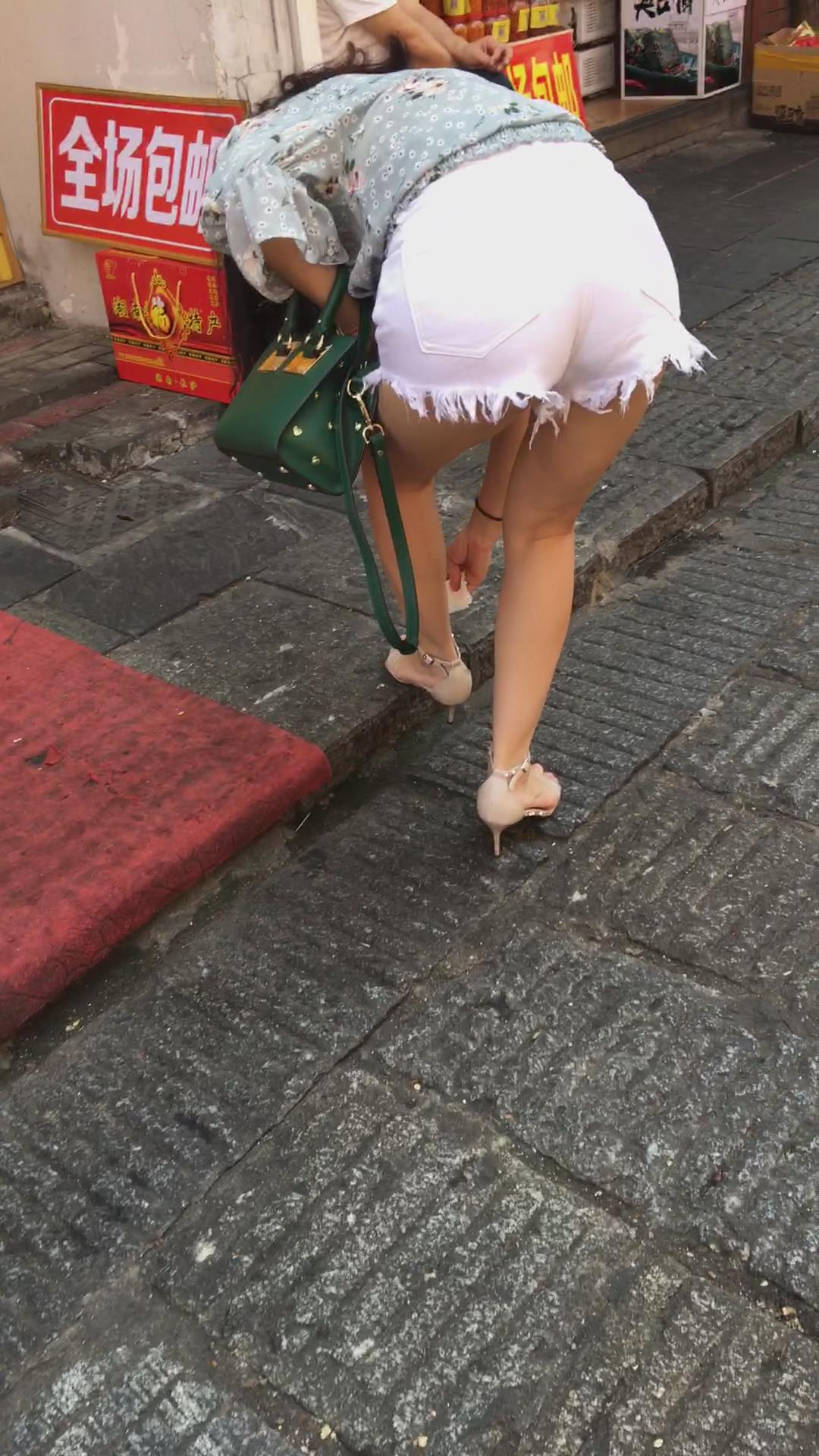 街拍碎边白热裤漂亮美丽小姐姐 编号4140