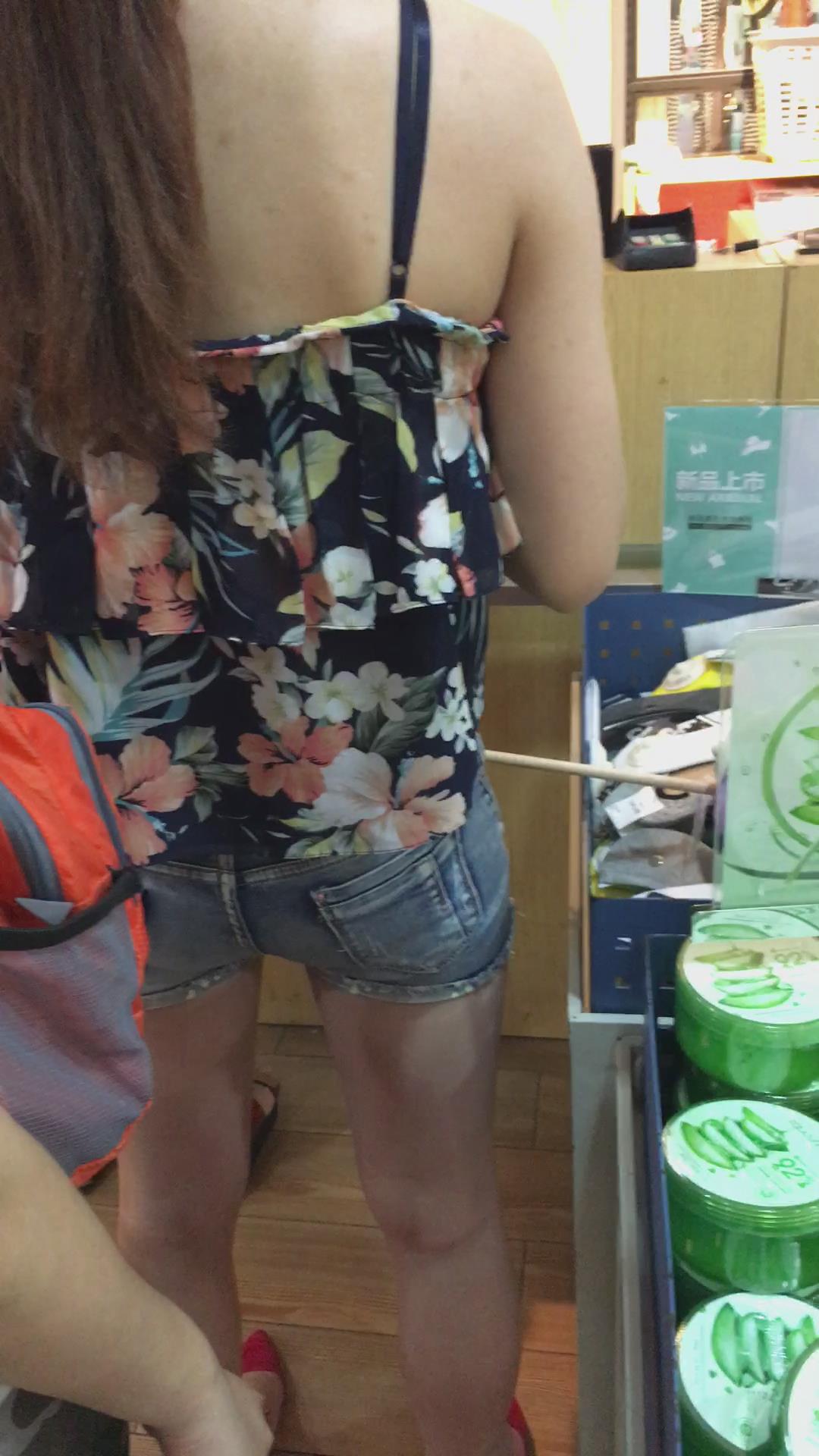 超市收银台结账的吊带衫短牛仔热裤妹子 编号4179