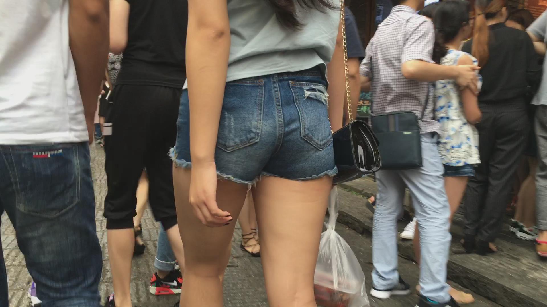 街拍热裤丰臀清秀女孩,雪白大腿很漂亮 编号4184