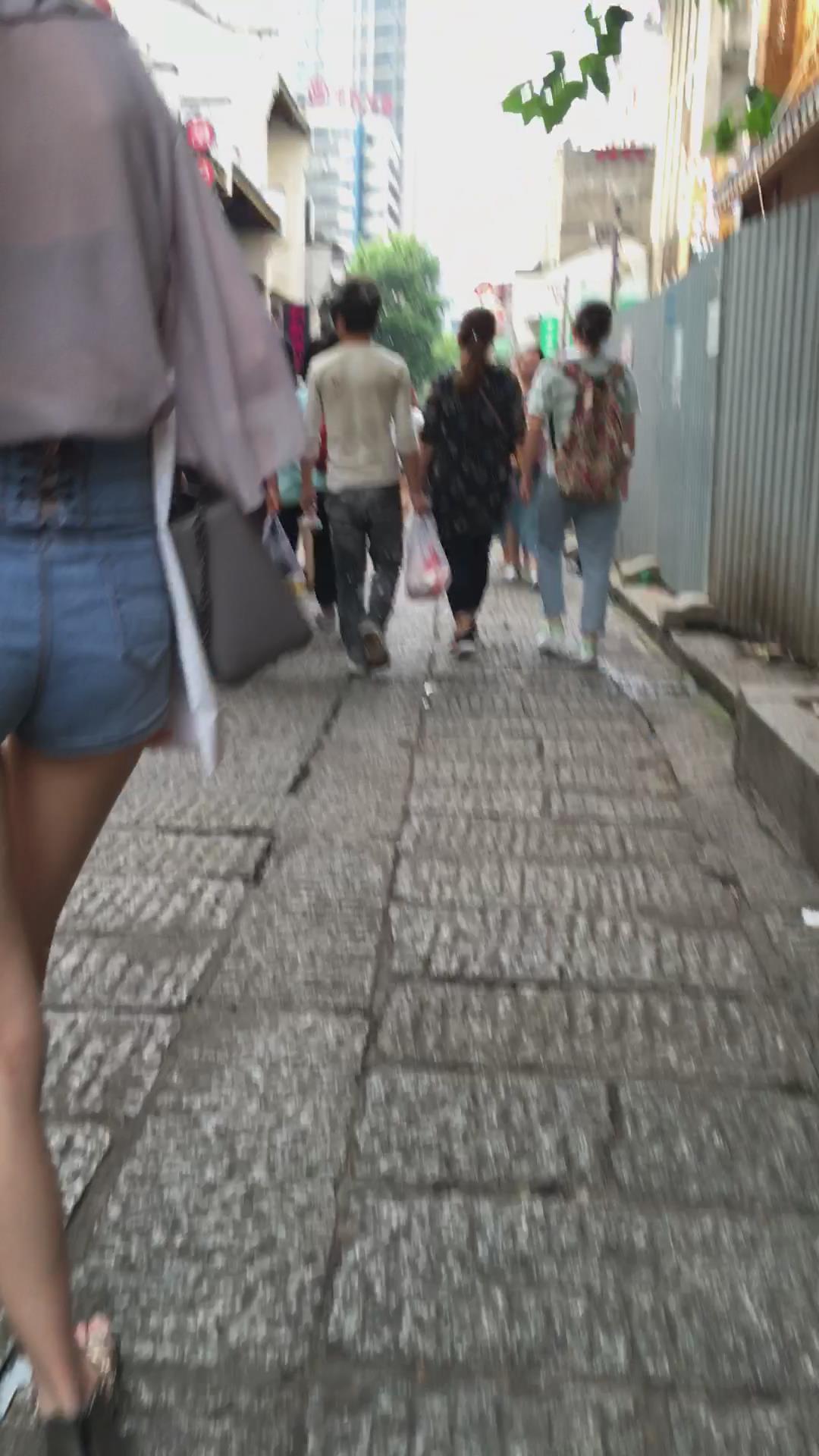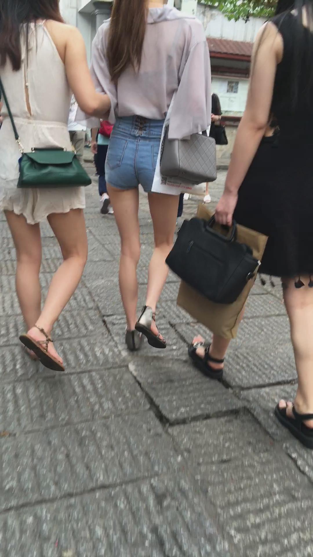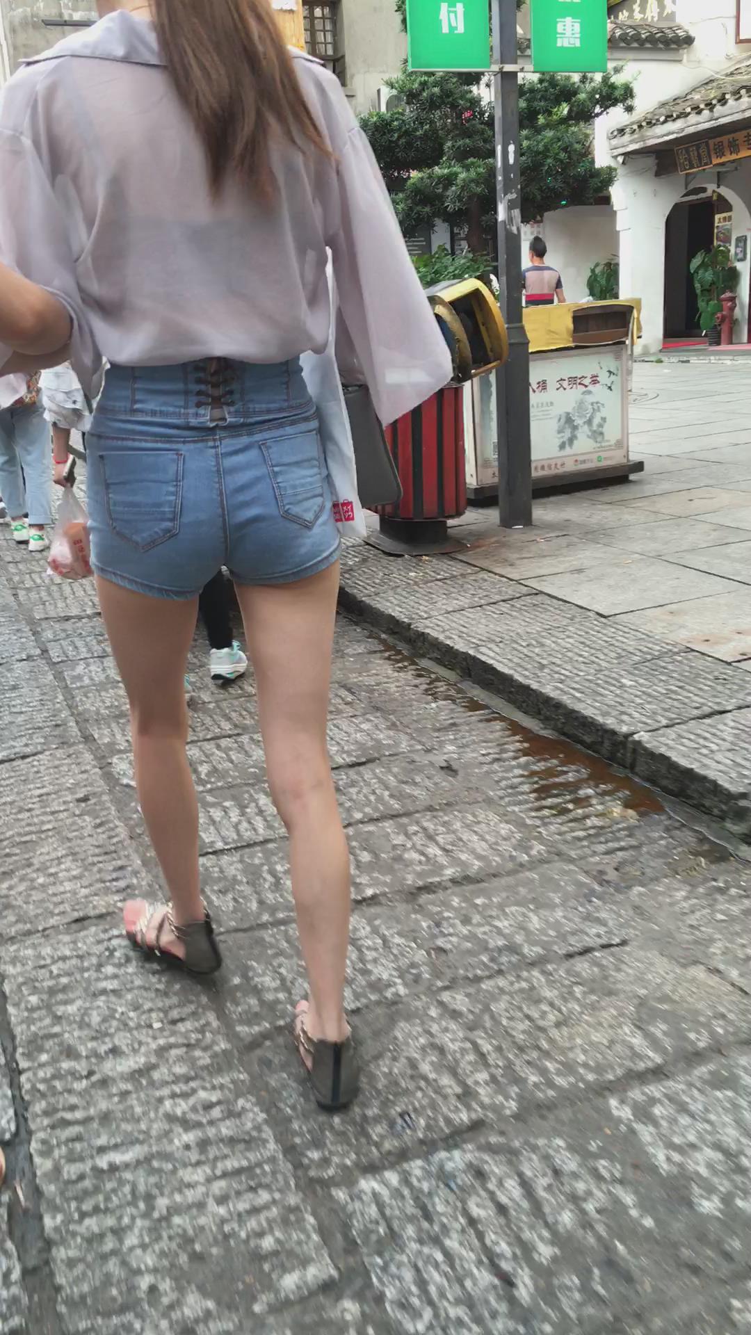 街拍高腰热裤修长美腿透明雪纺衫高挑美女 编号4225