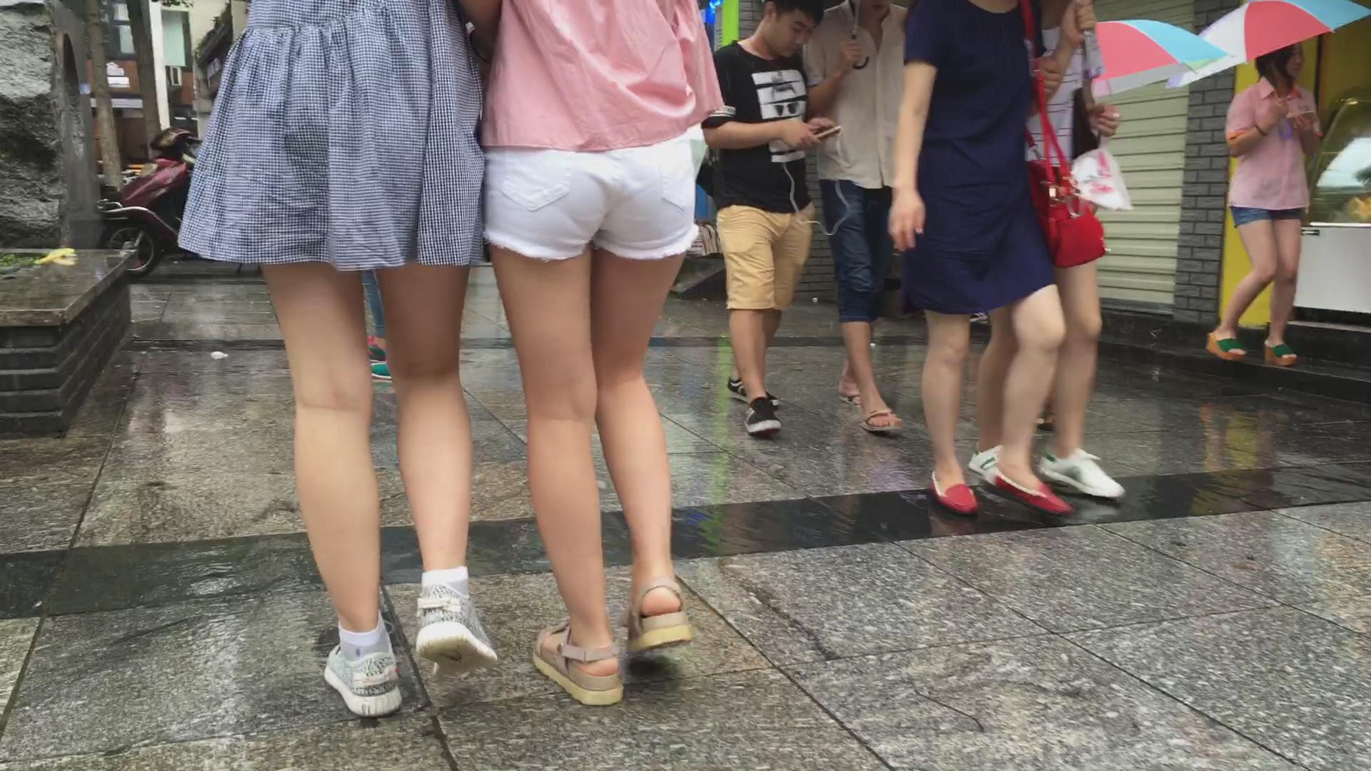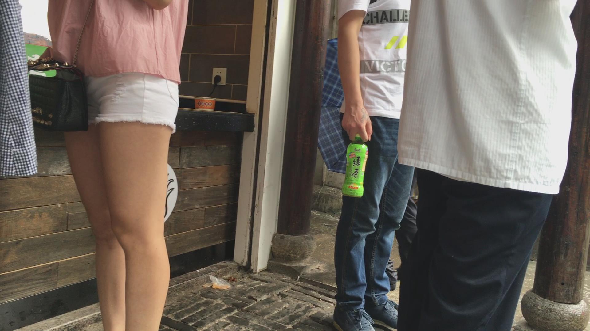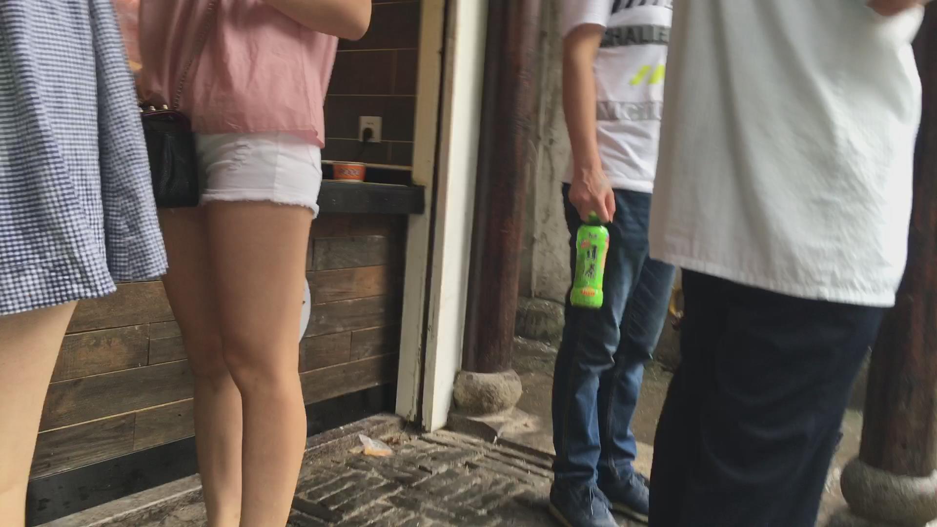 街拍粉粉吊带衫陪白紧热裤气质宽臀美女 编号4234