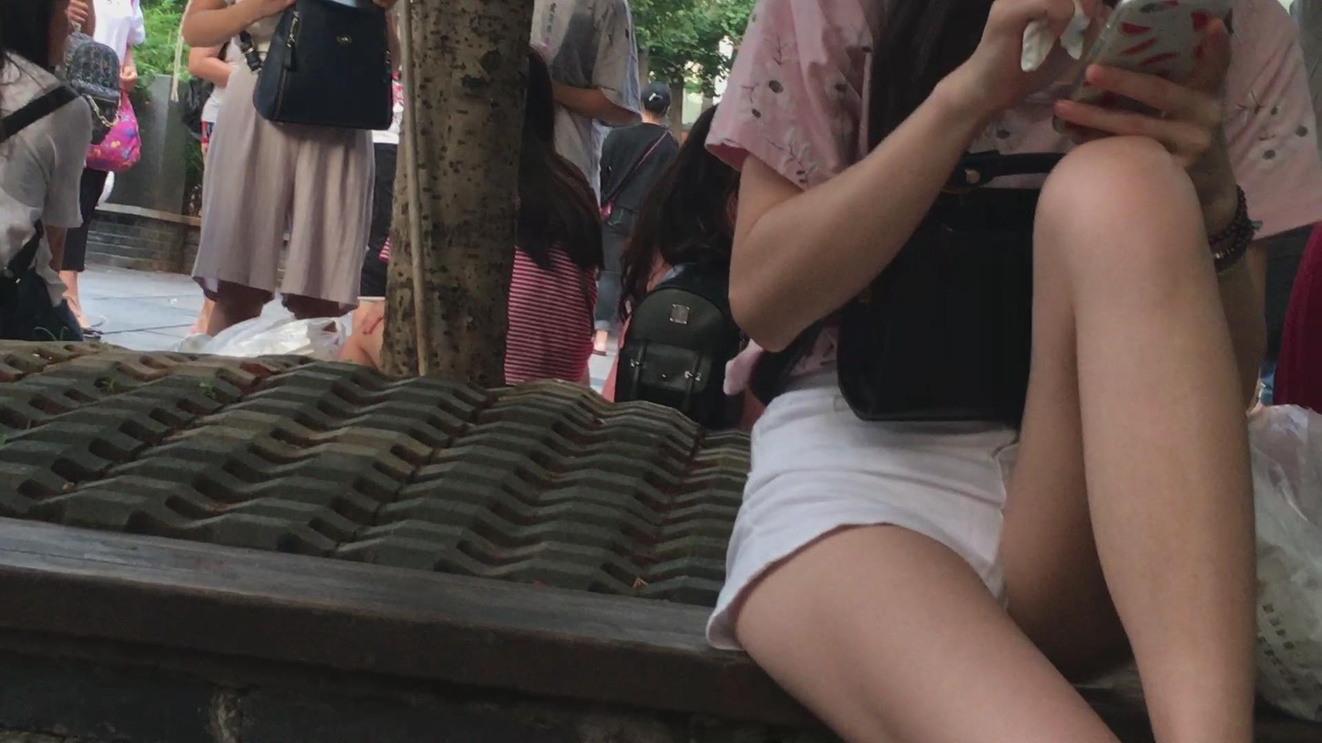 花坛边休息玩手机的白皙大腿妹子 编号4236