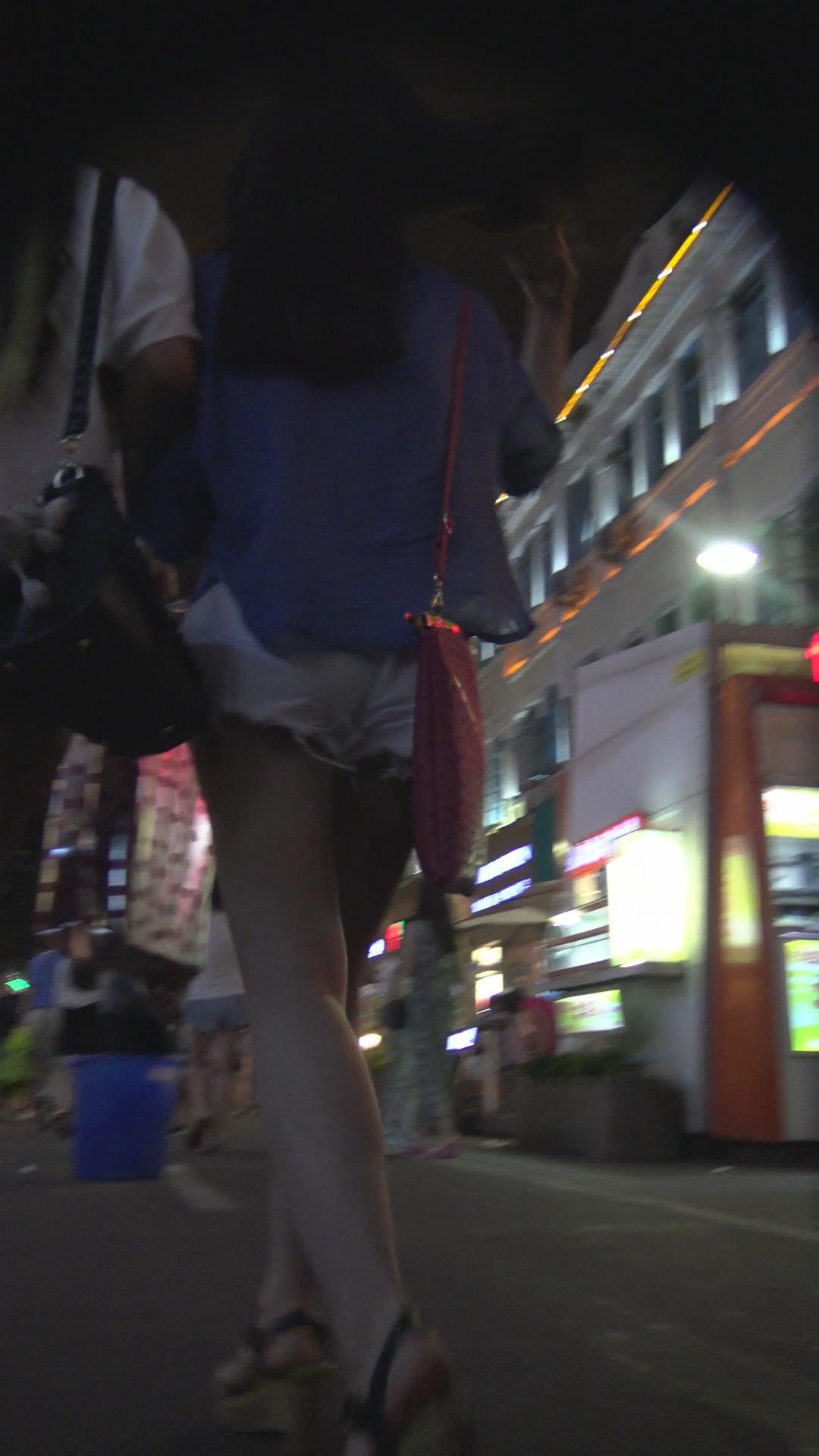 逛夜市偶遇长腿白短热裤美眉 编号4282