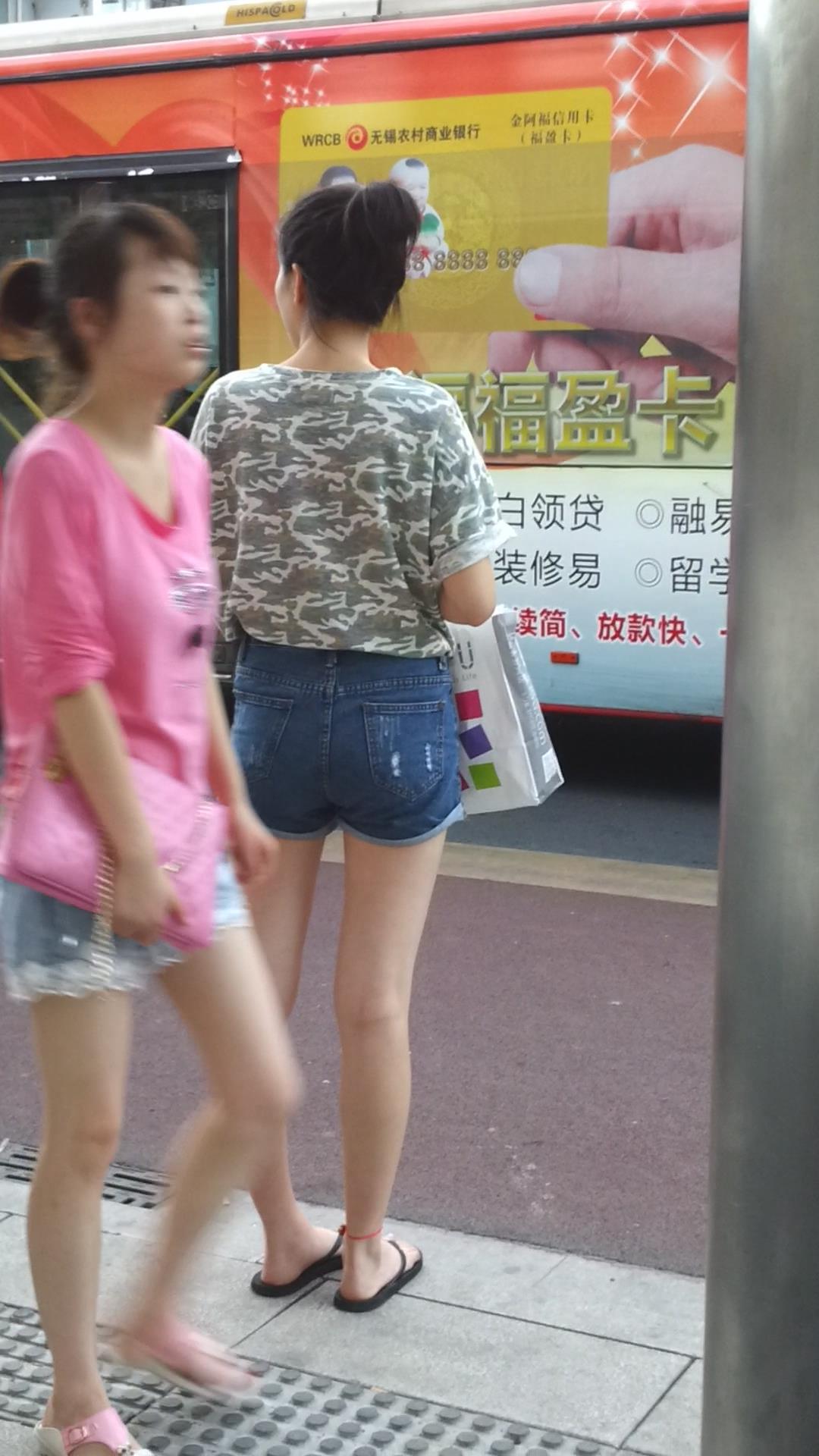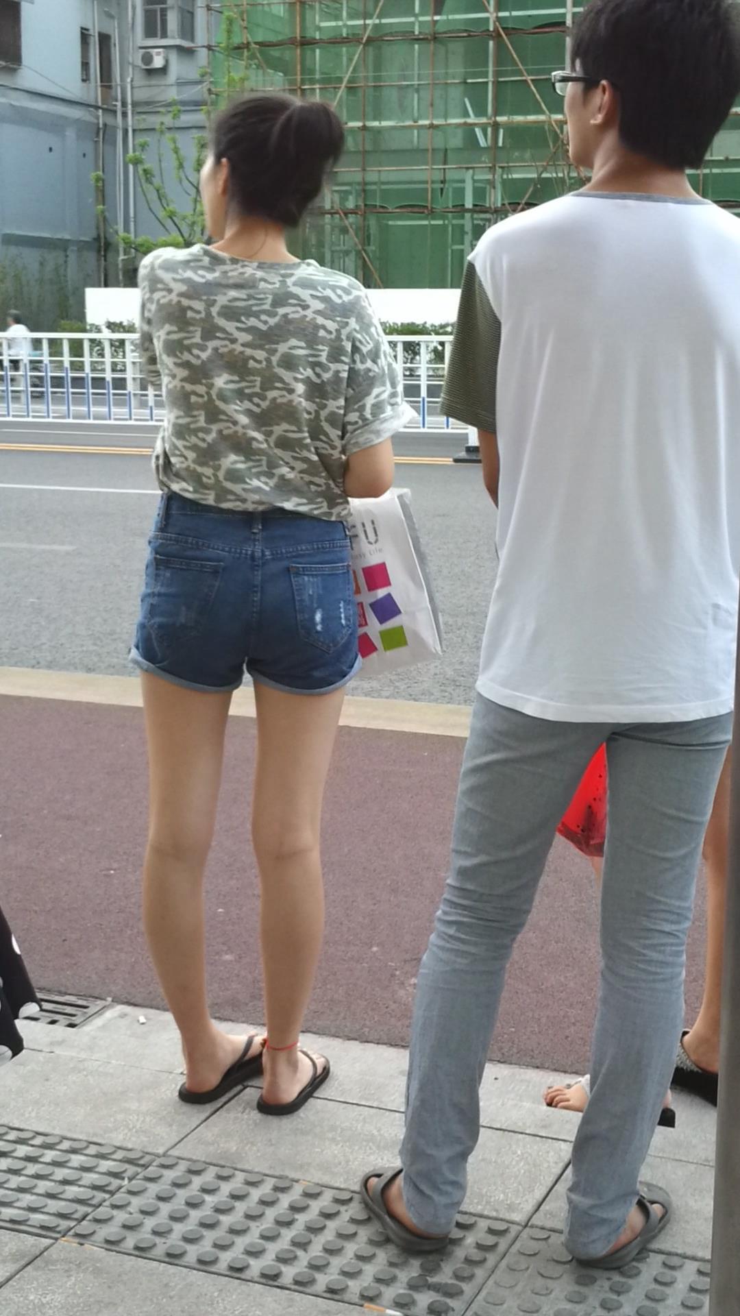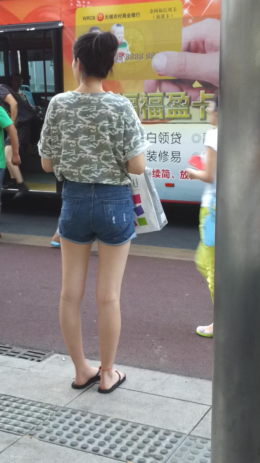 路边等公交的牛仔热裤美腿清纯少女 编号4331
