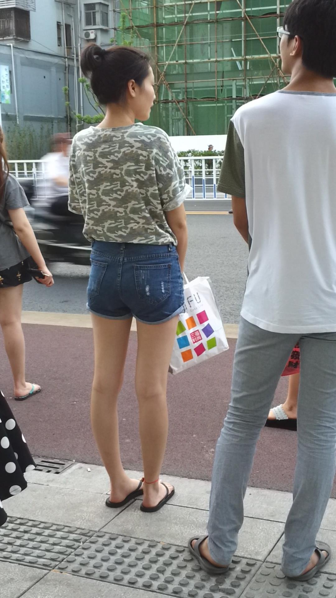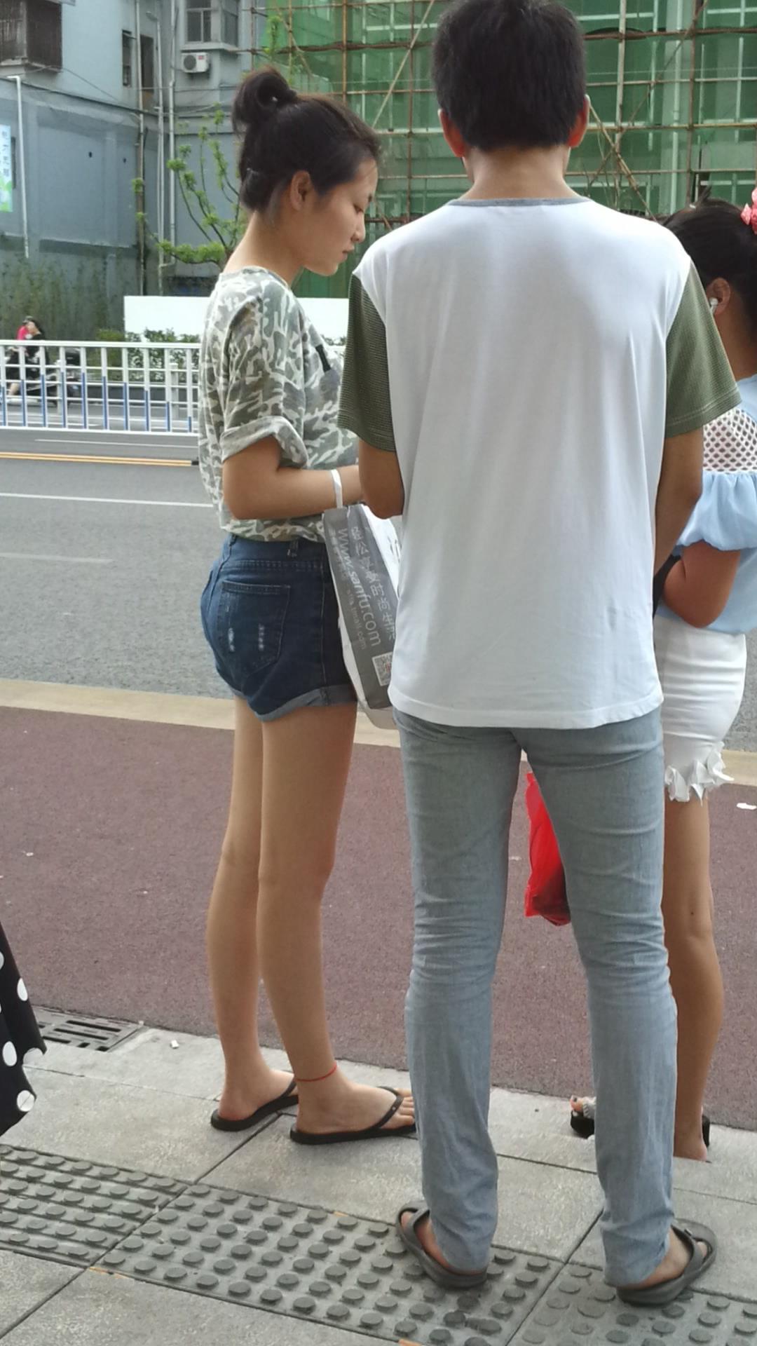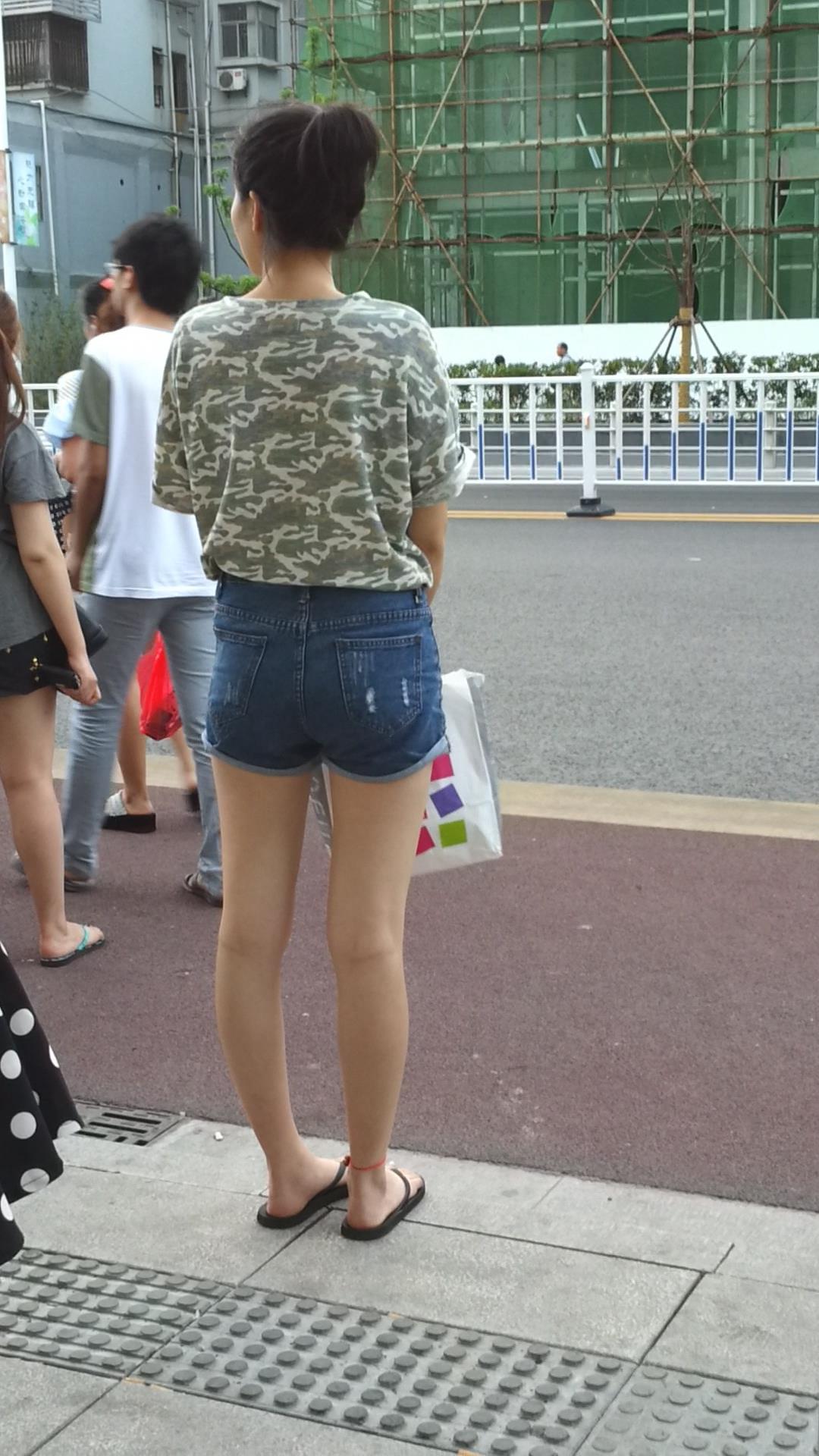 路边等公交的牛仔热裤美腿清纯少女 编号4331