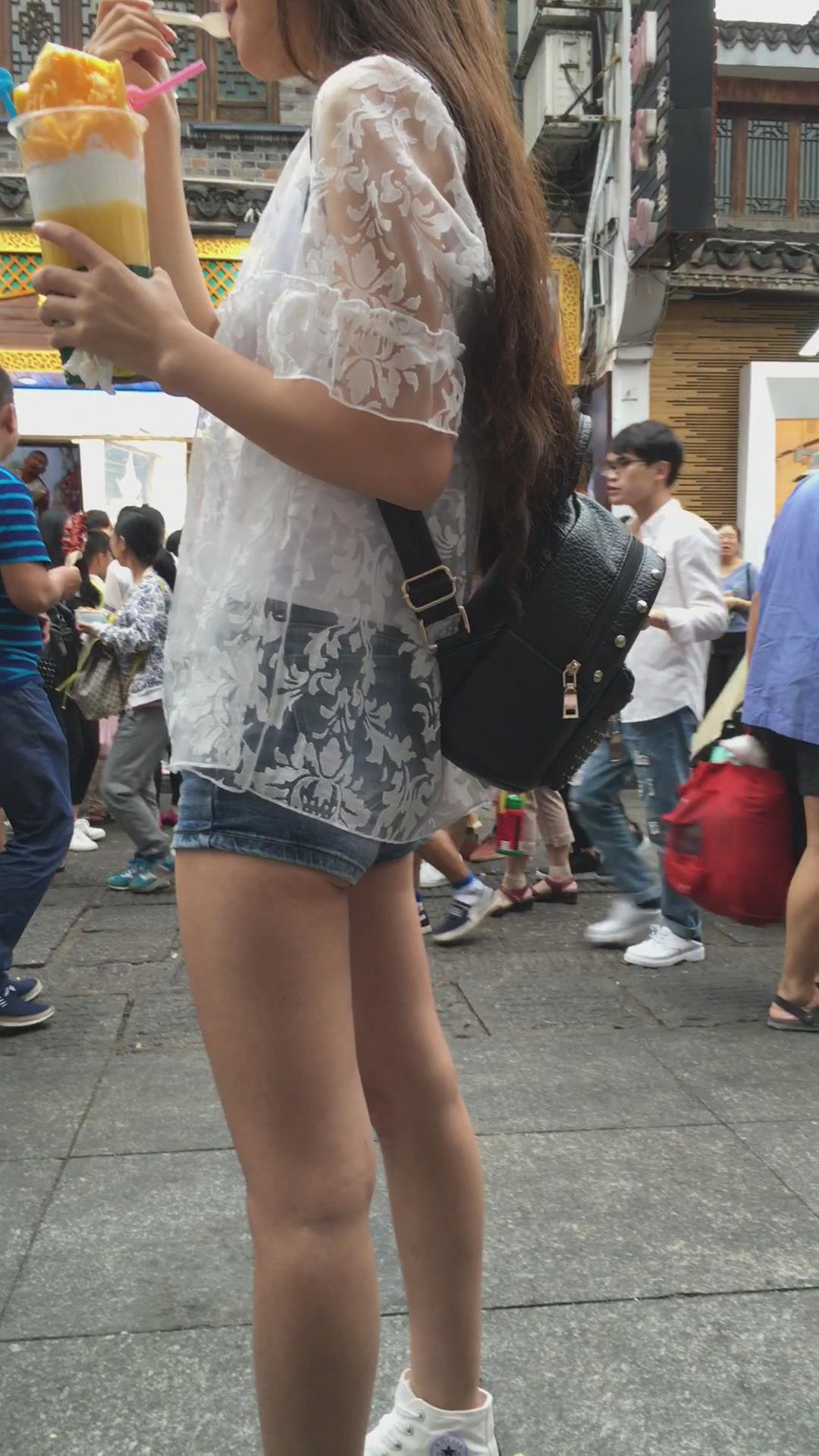 腿腿岔得很开的超短热裤美眉 编号4353