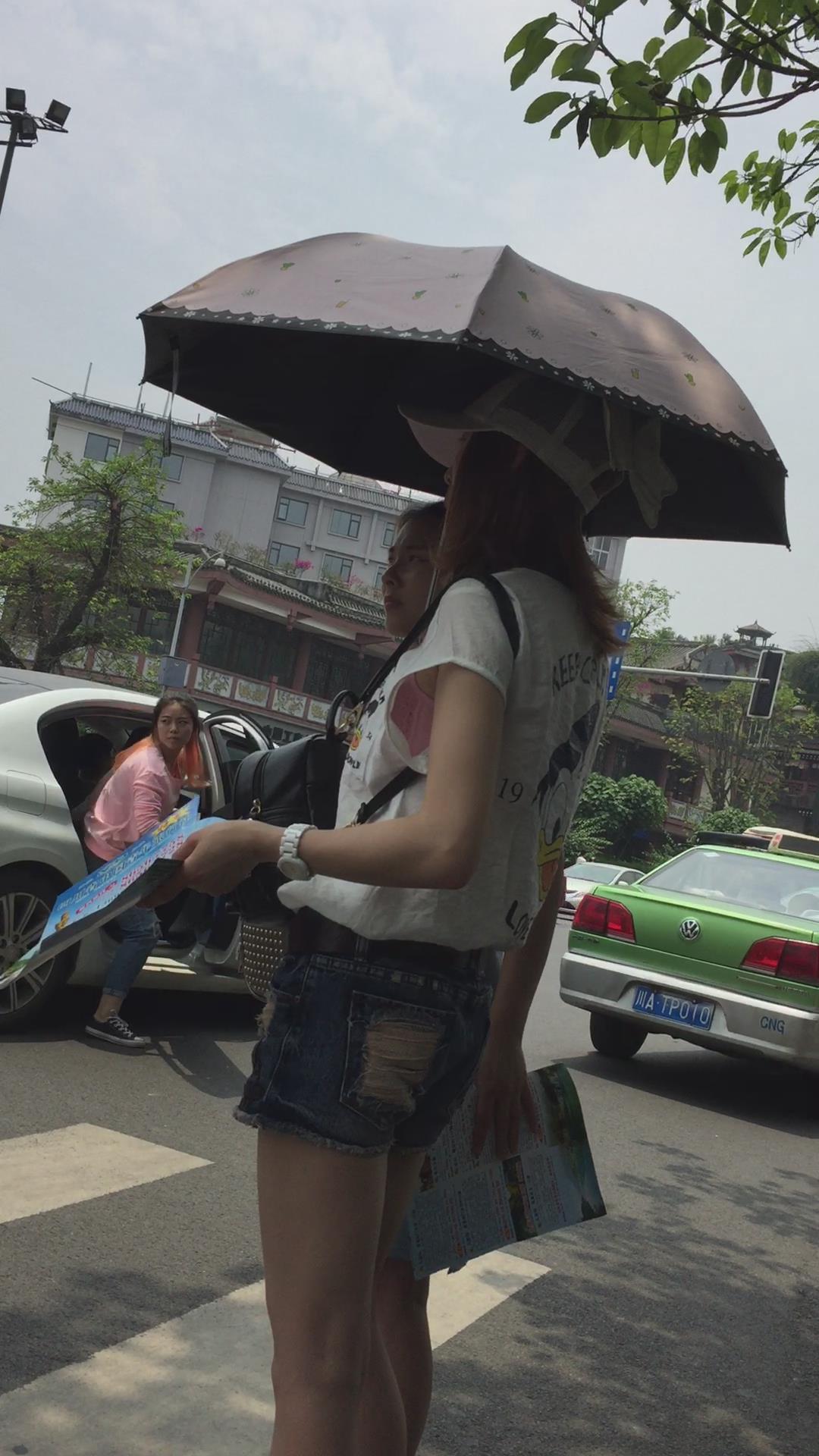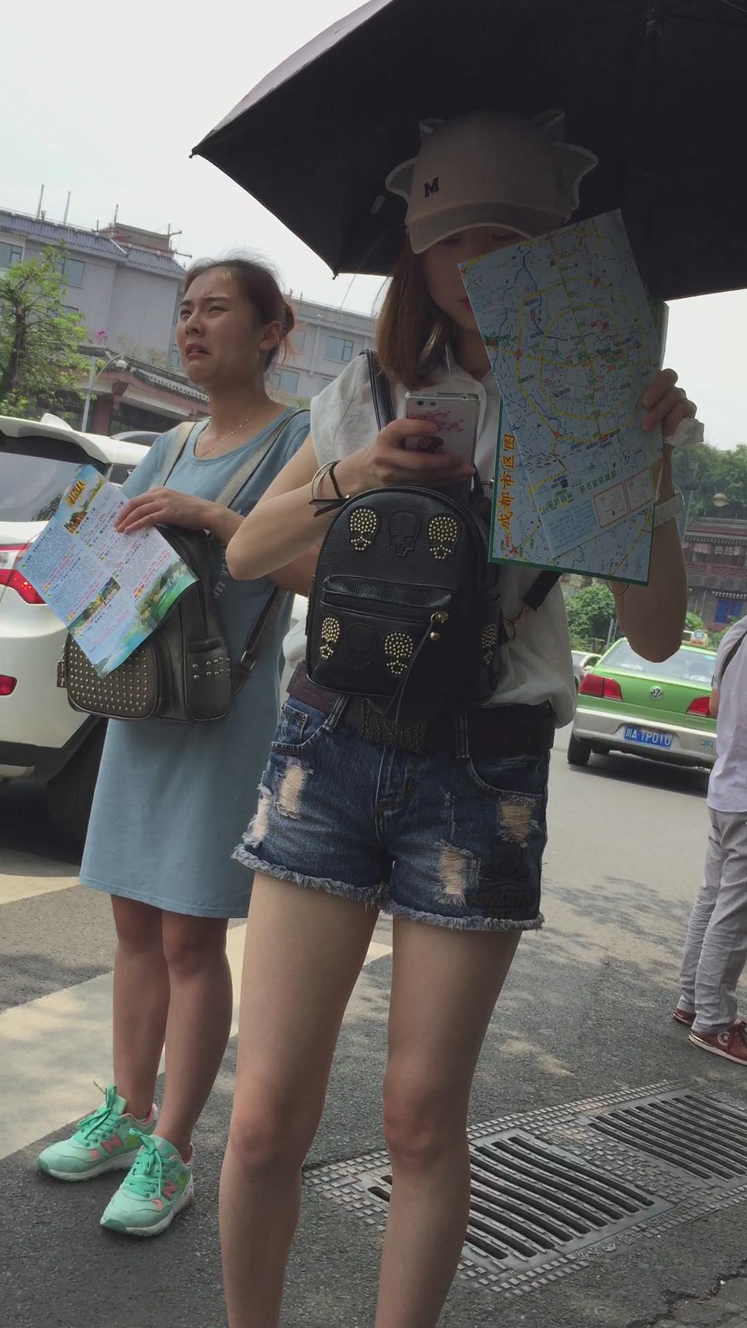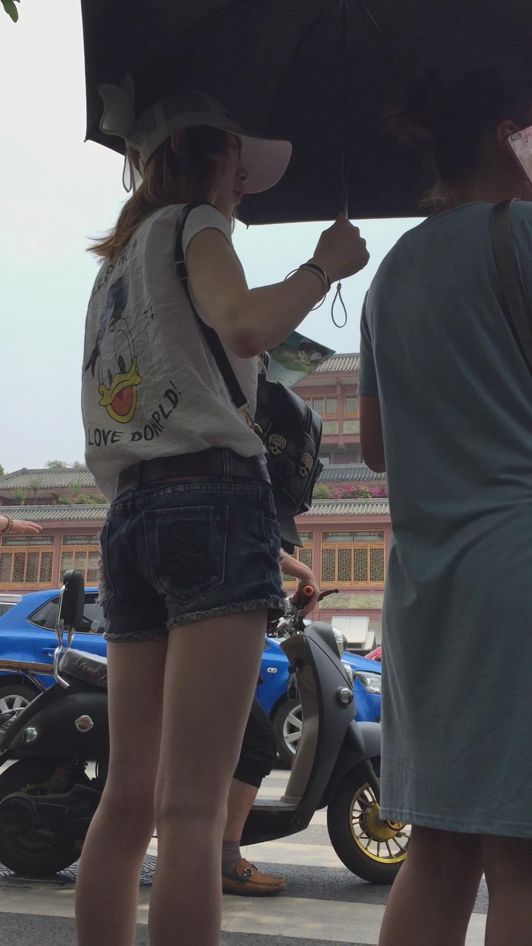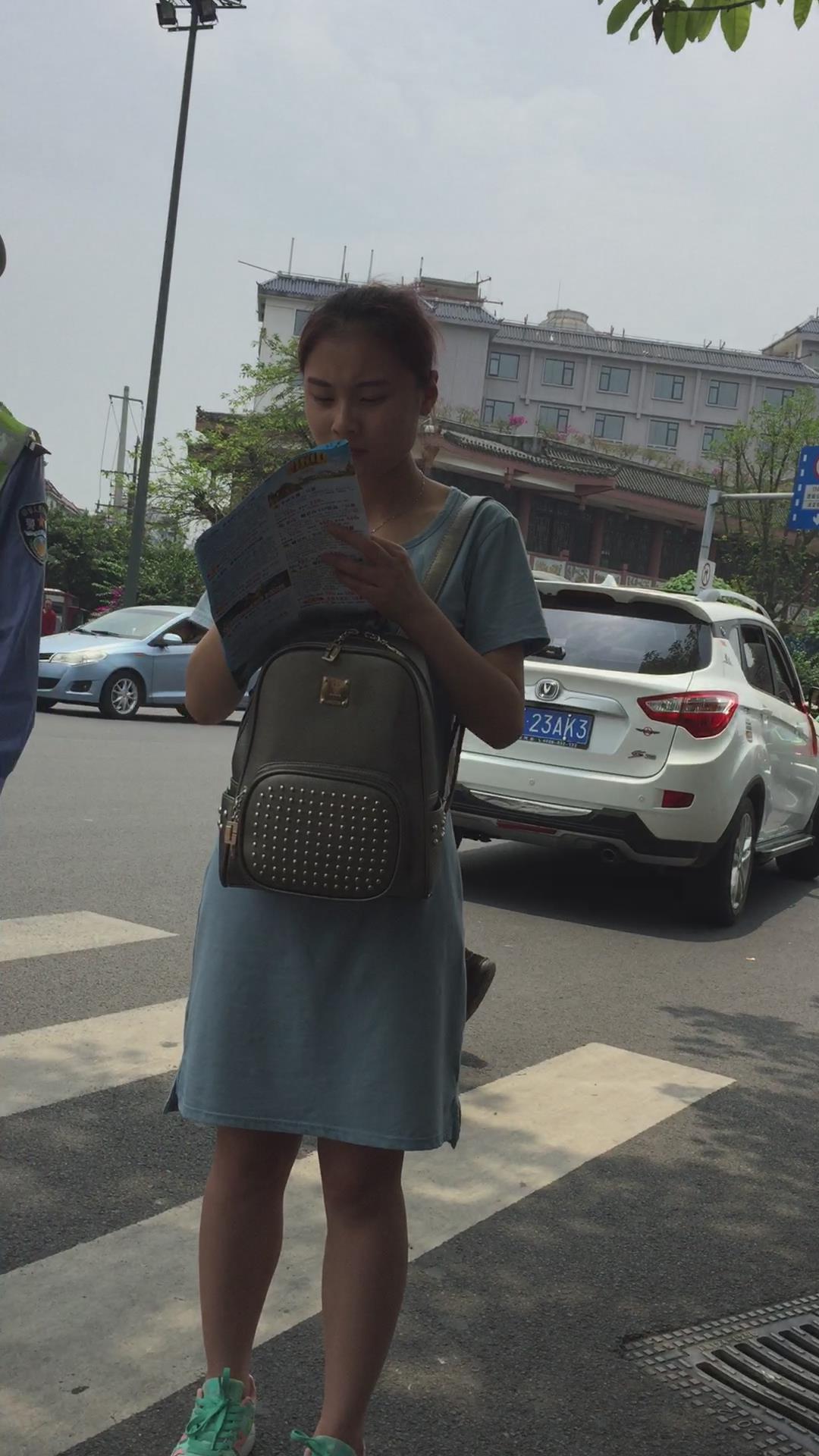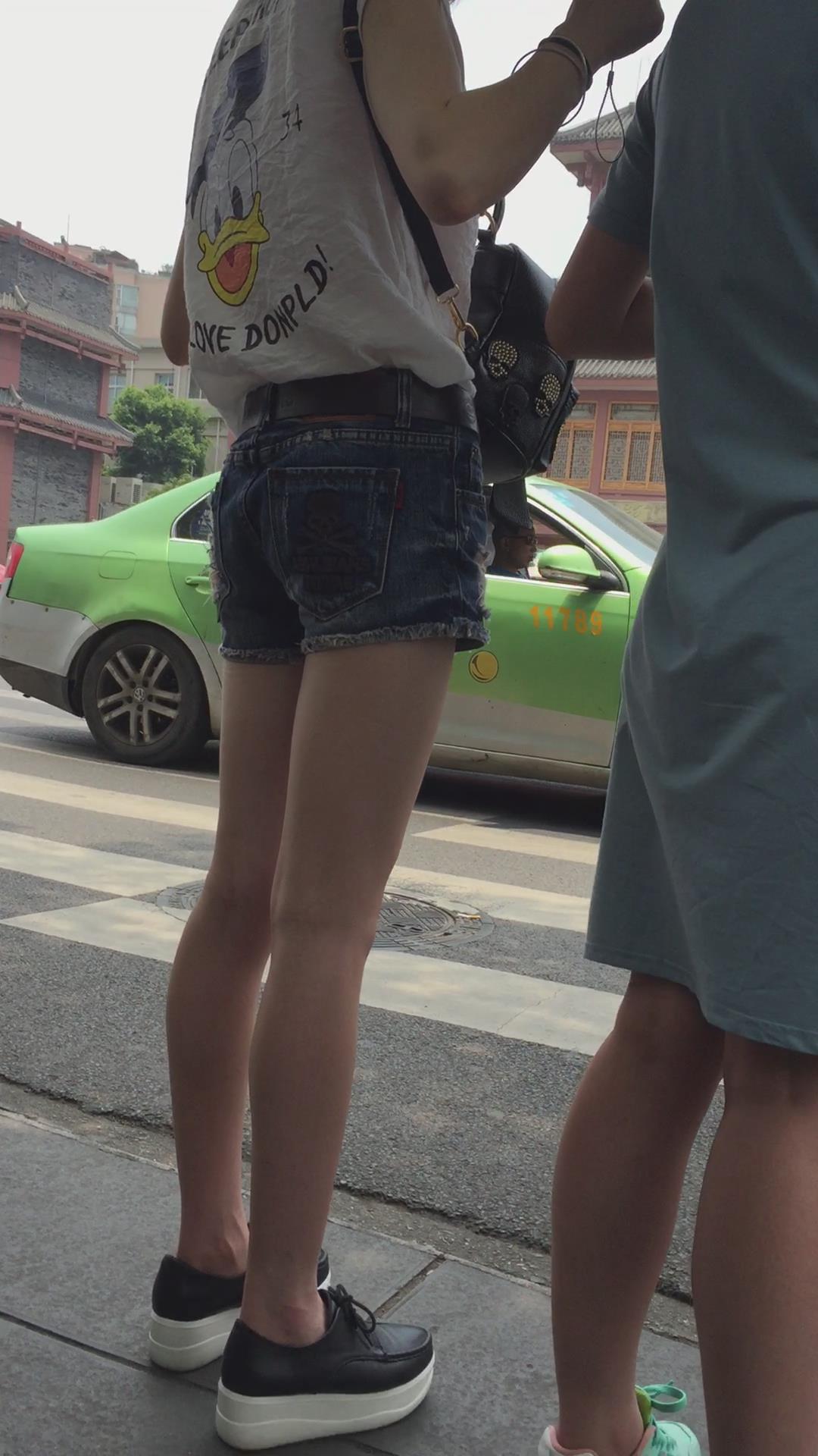 清纯甜美小清新热裤美少女公交站等车 编号4570