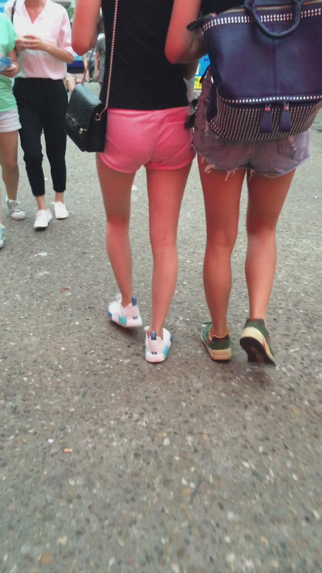 粉色热裤女孩跟闺蜜逛街 编号4364