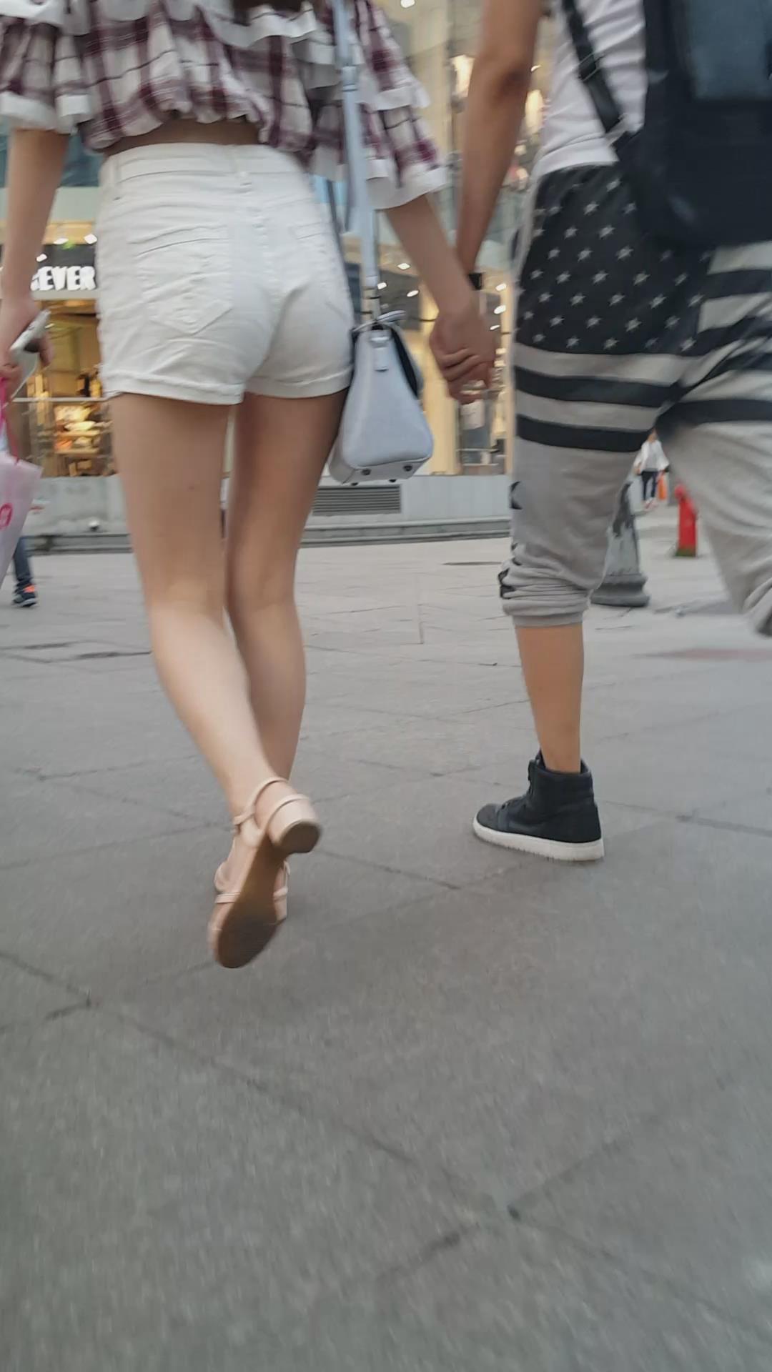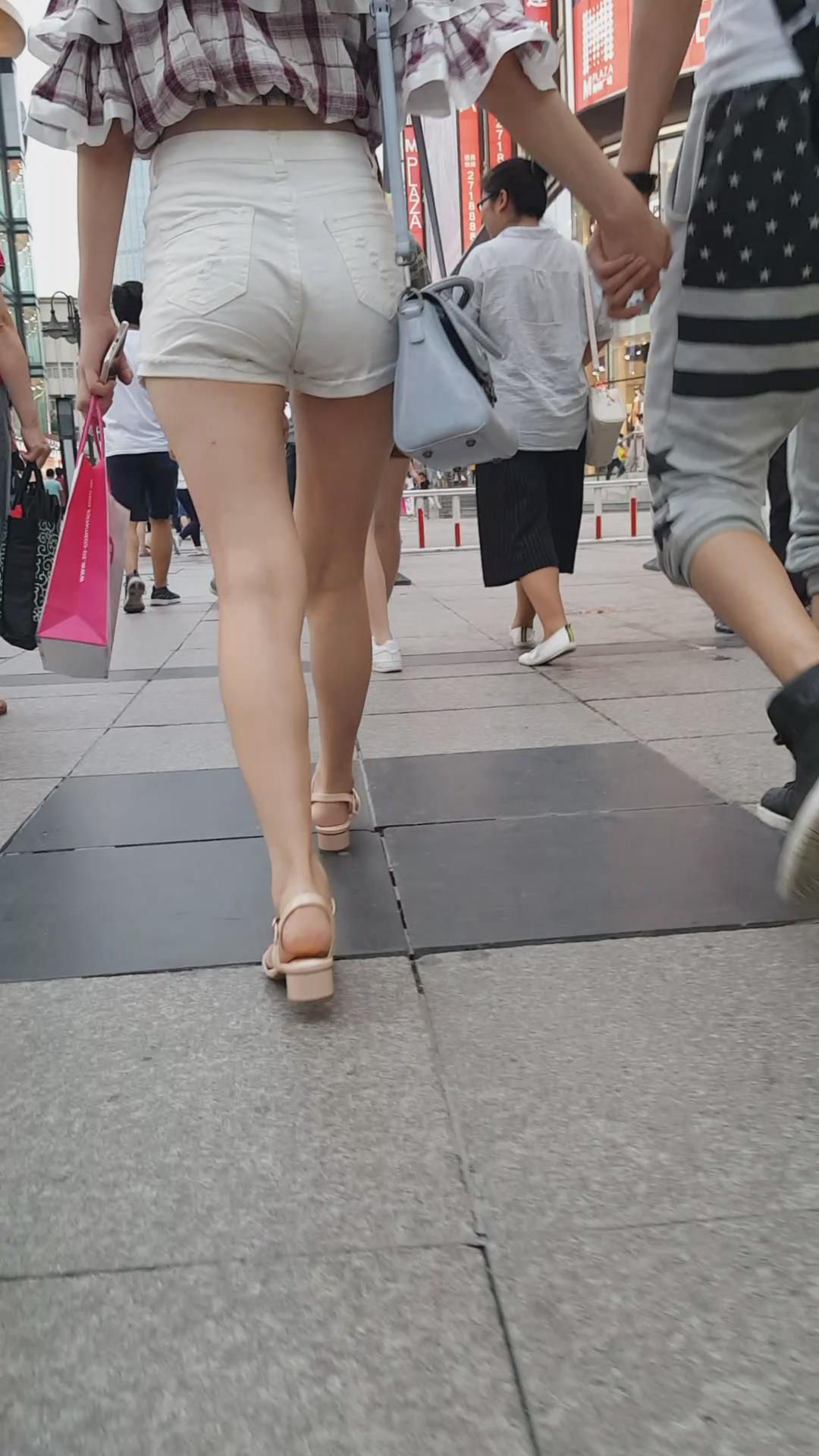 街拍的高腰白热裤漏脐长腿美眉 编号4366