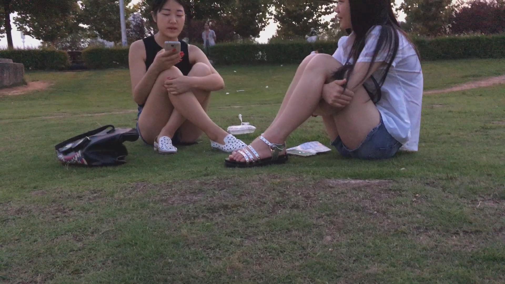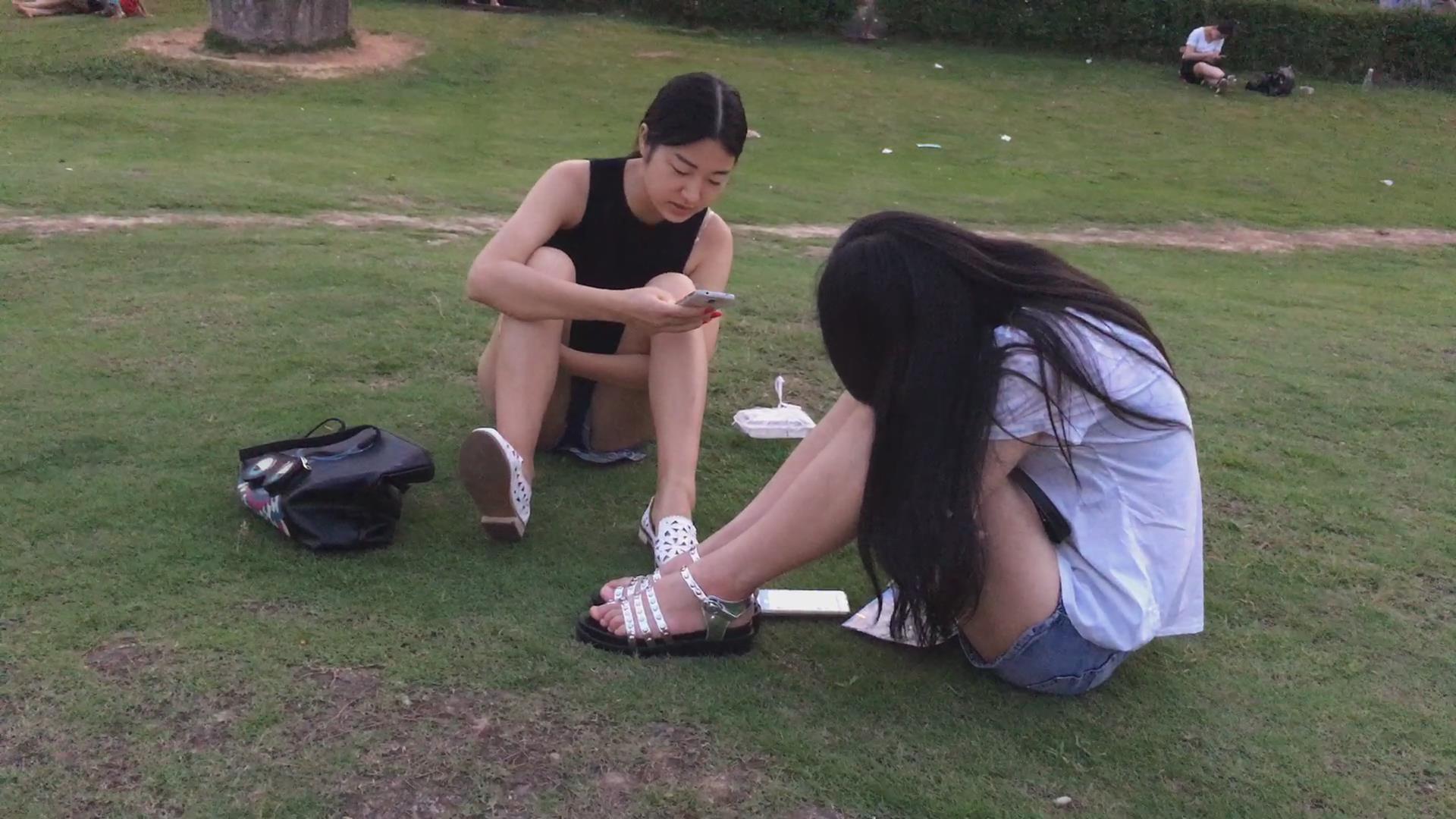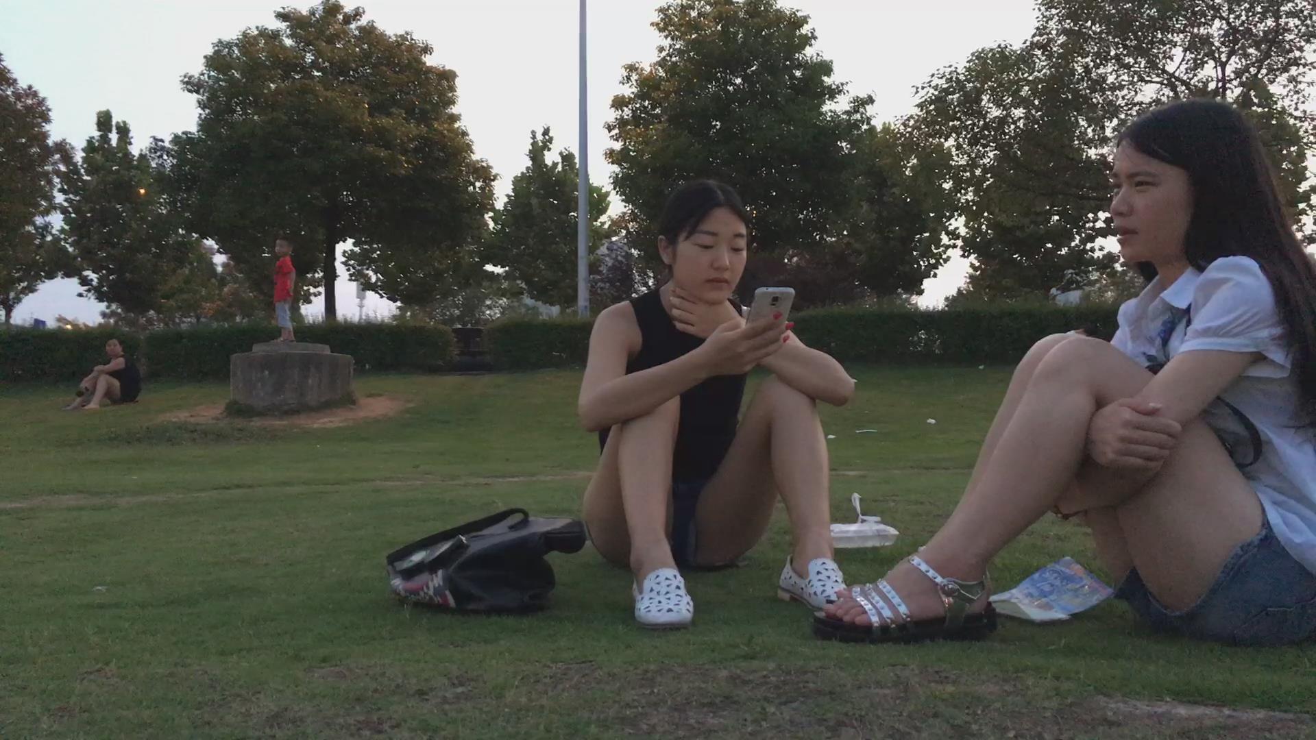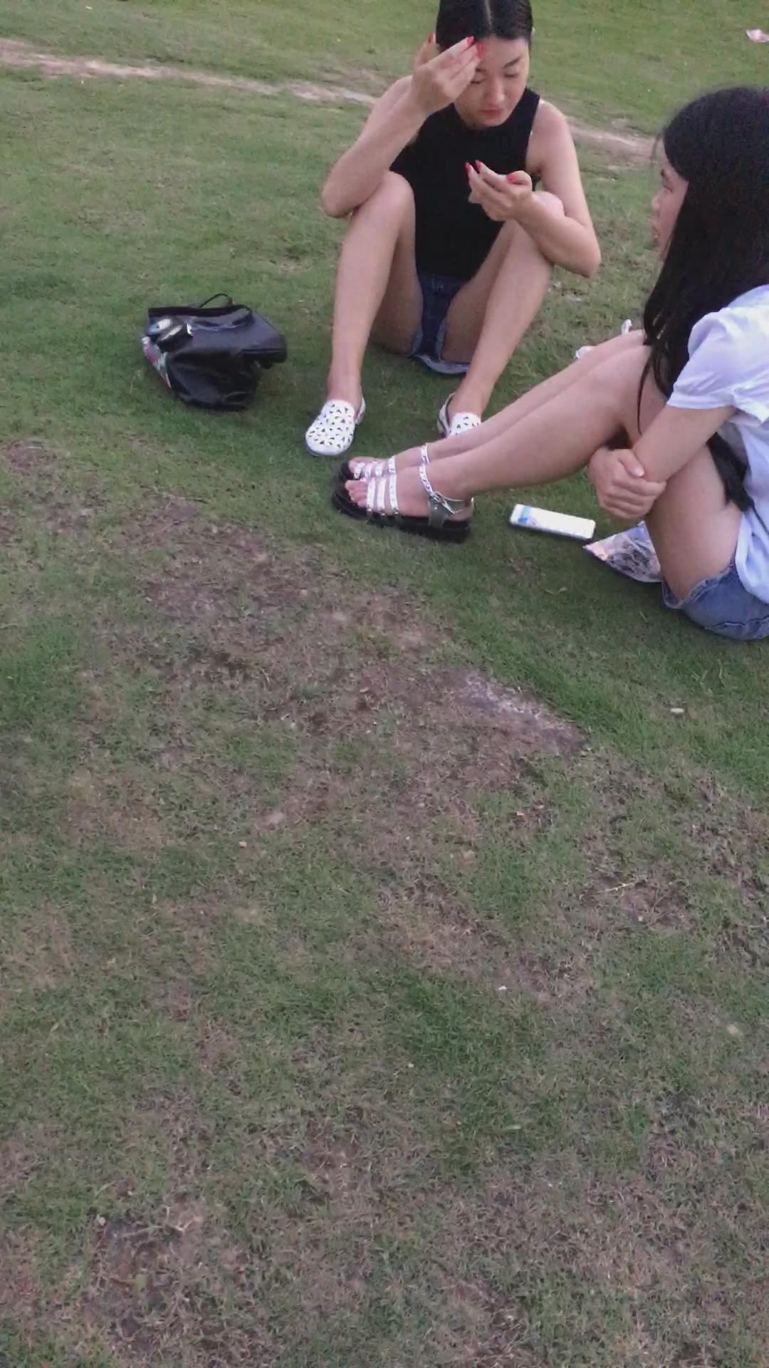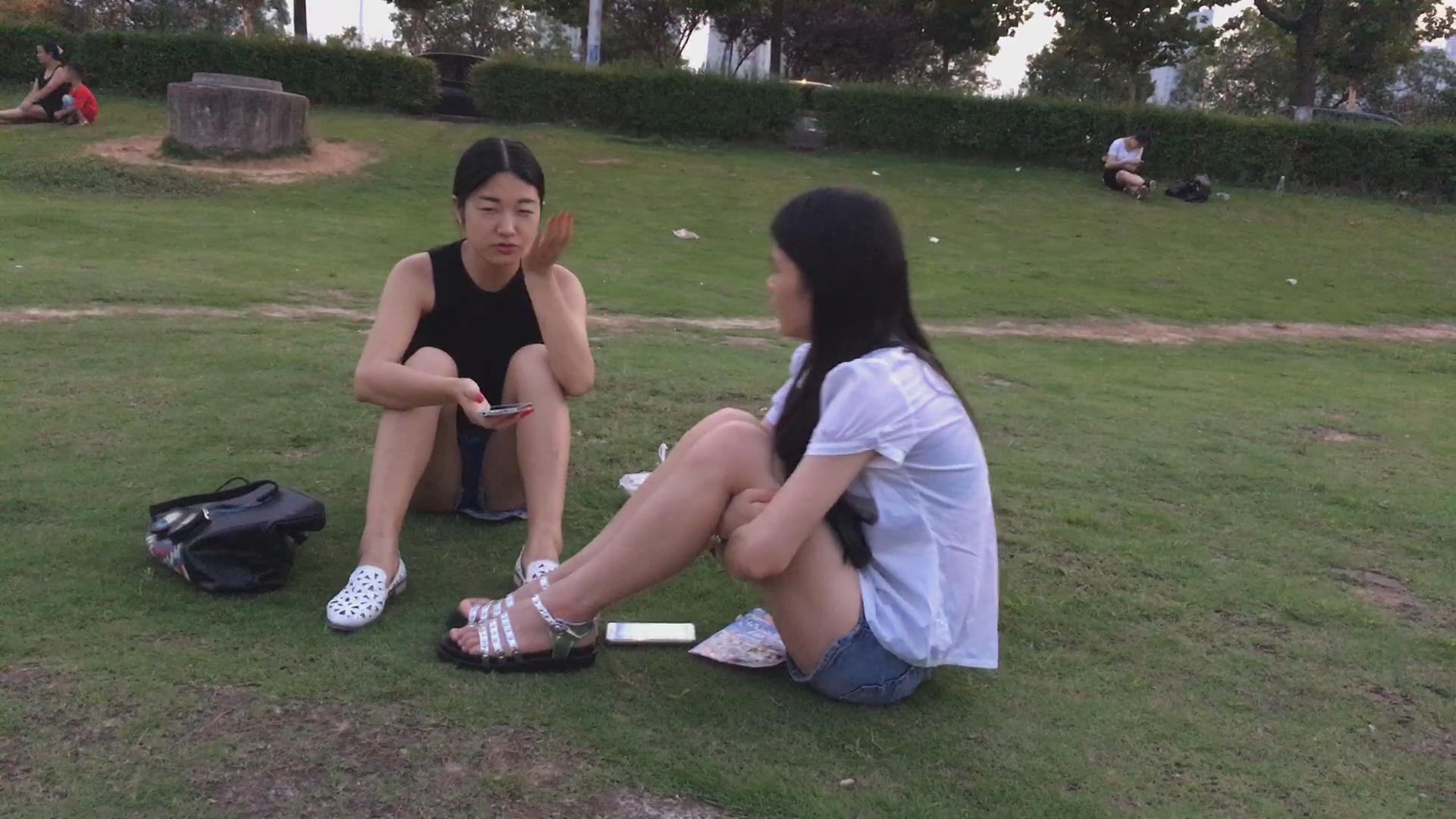 公园草地上闲聊的两姐妹 编号4371