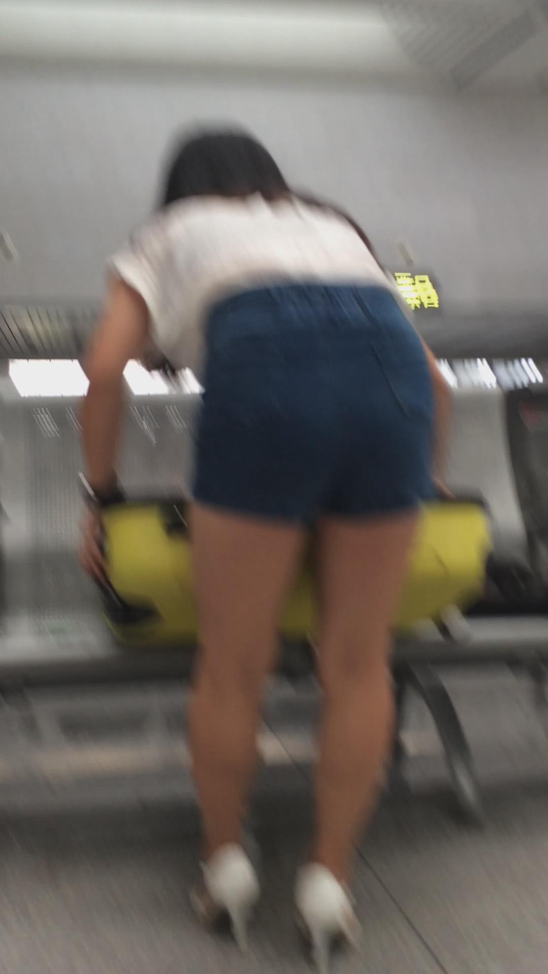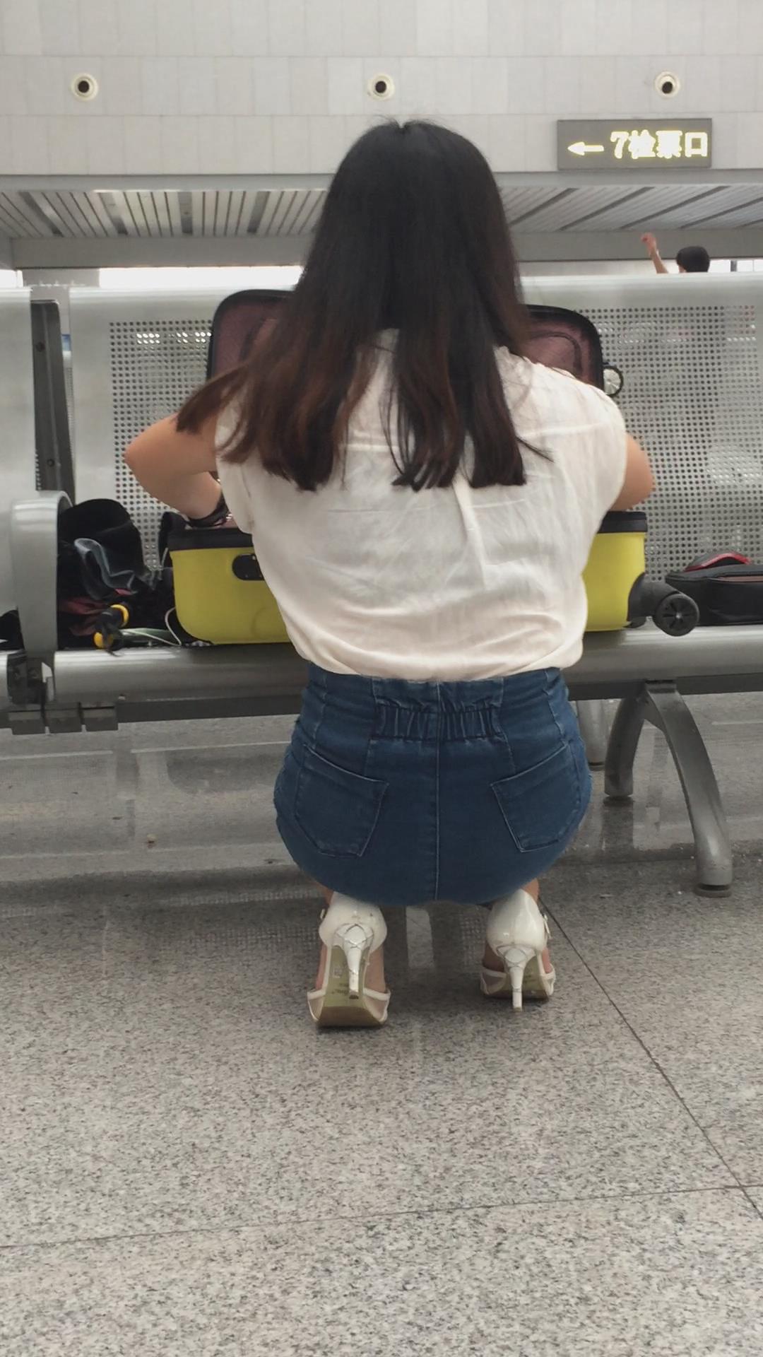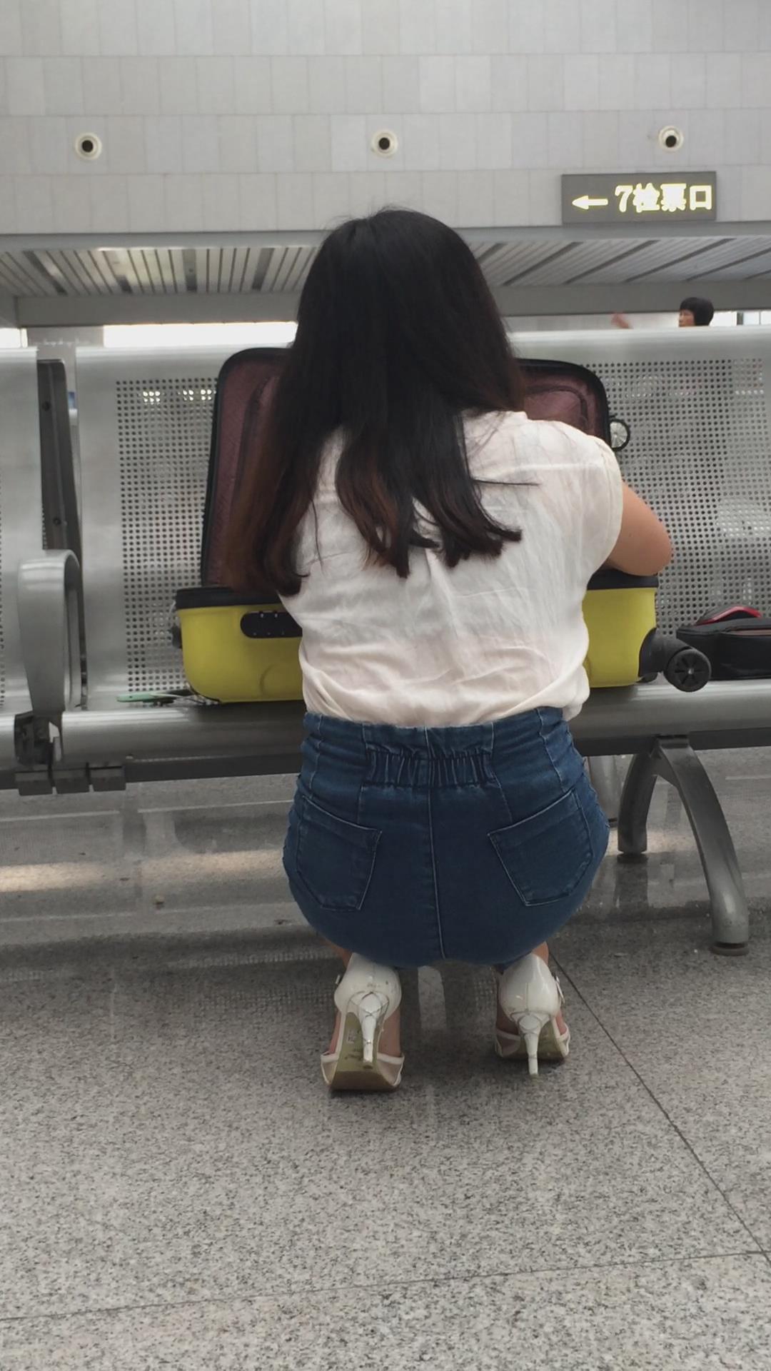候车室内整理行李的热裤长腿高跟鞋美女 编号4397