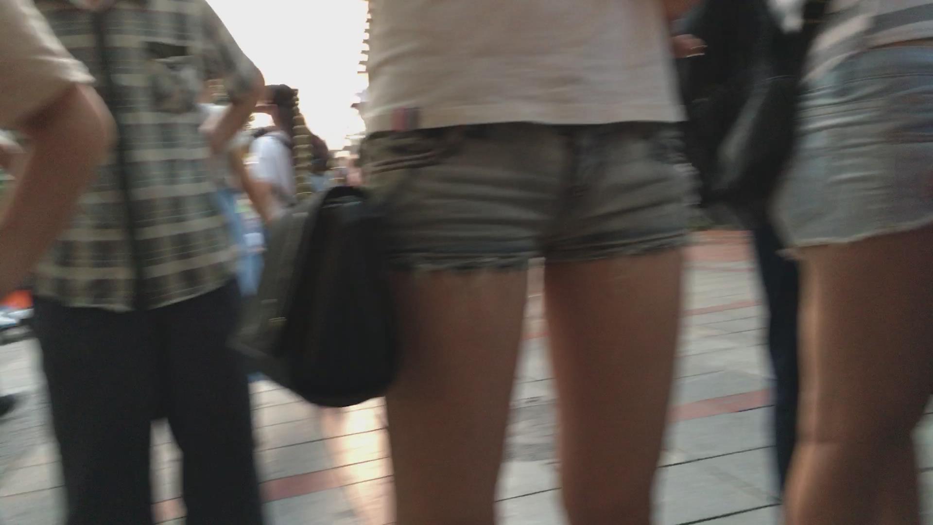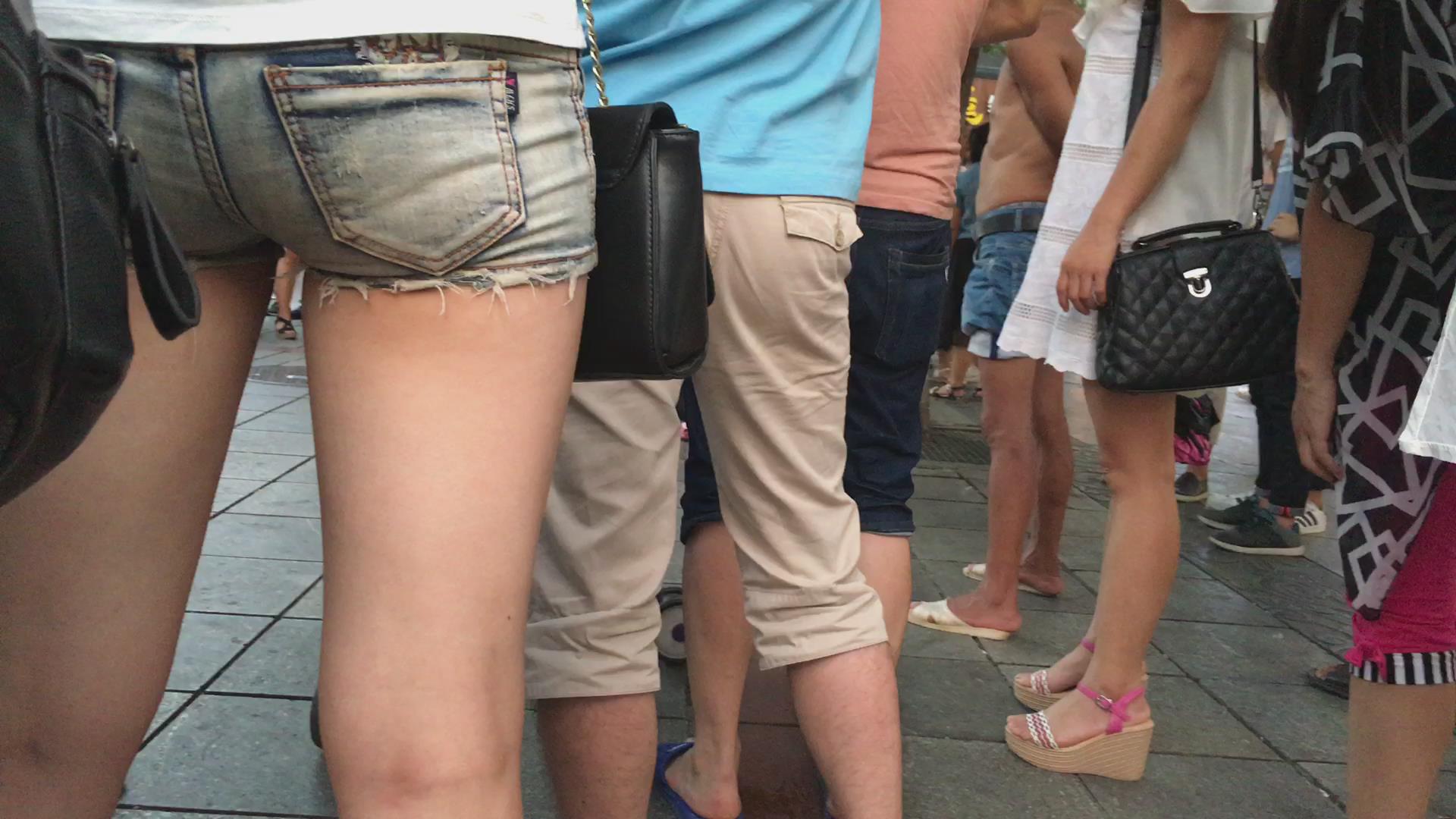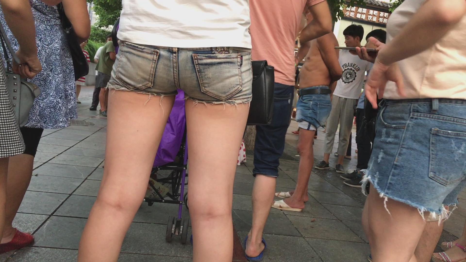 街拍超短紧身牛仔热裤饱满美三角的漂亮MM 编号4429