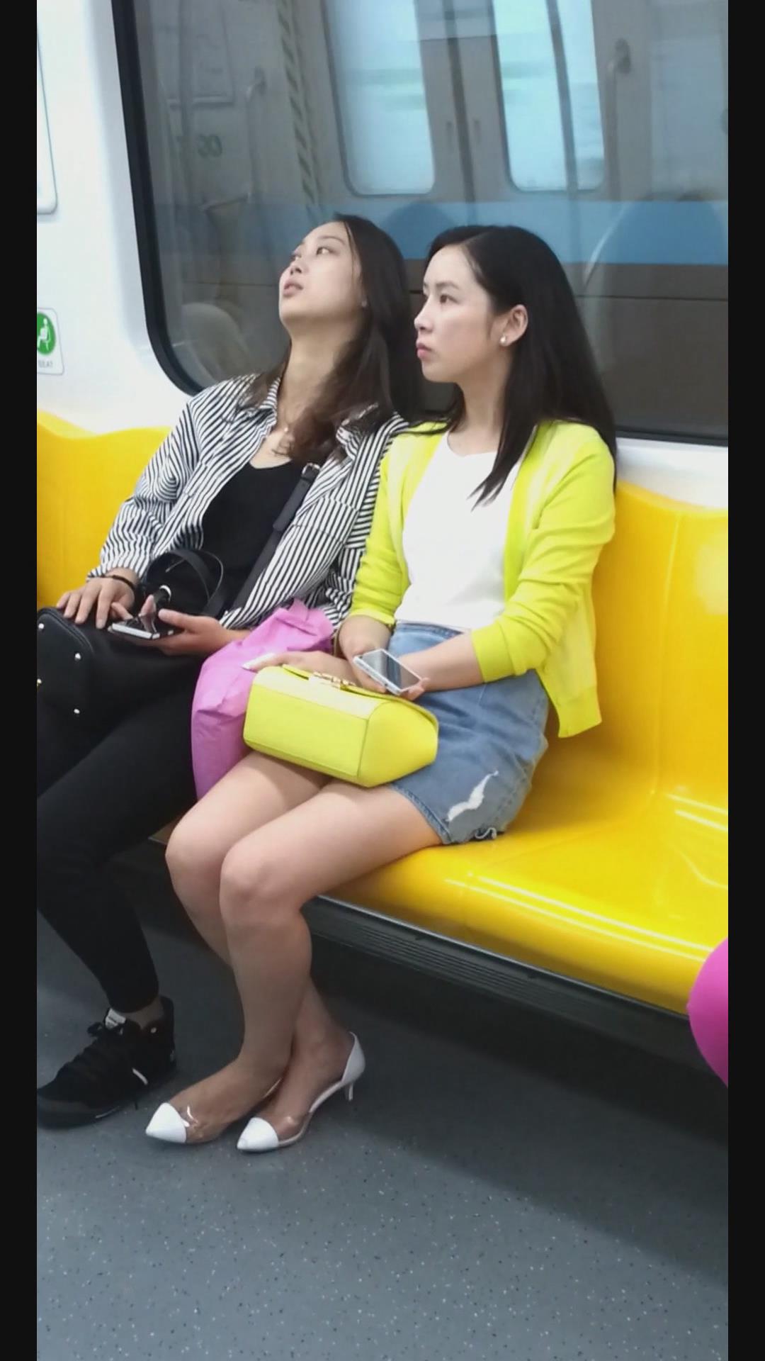 地铁拍摄两位高颜值美腿妹子 编号4454