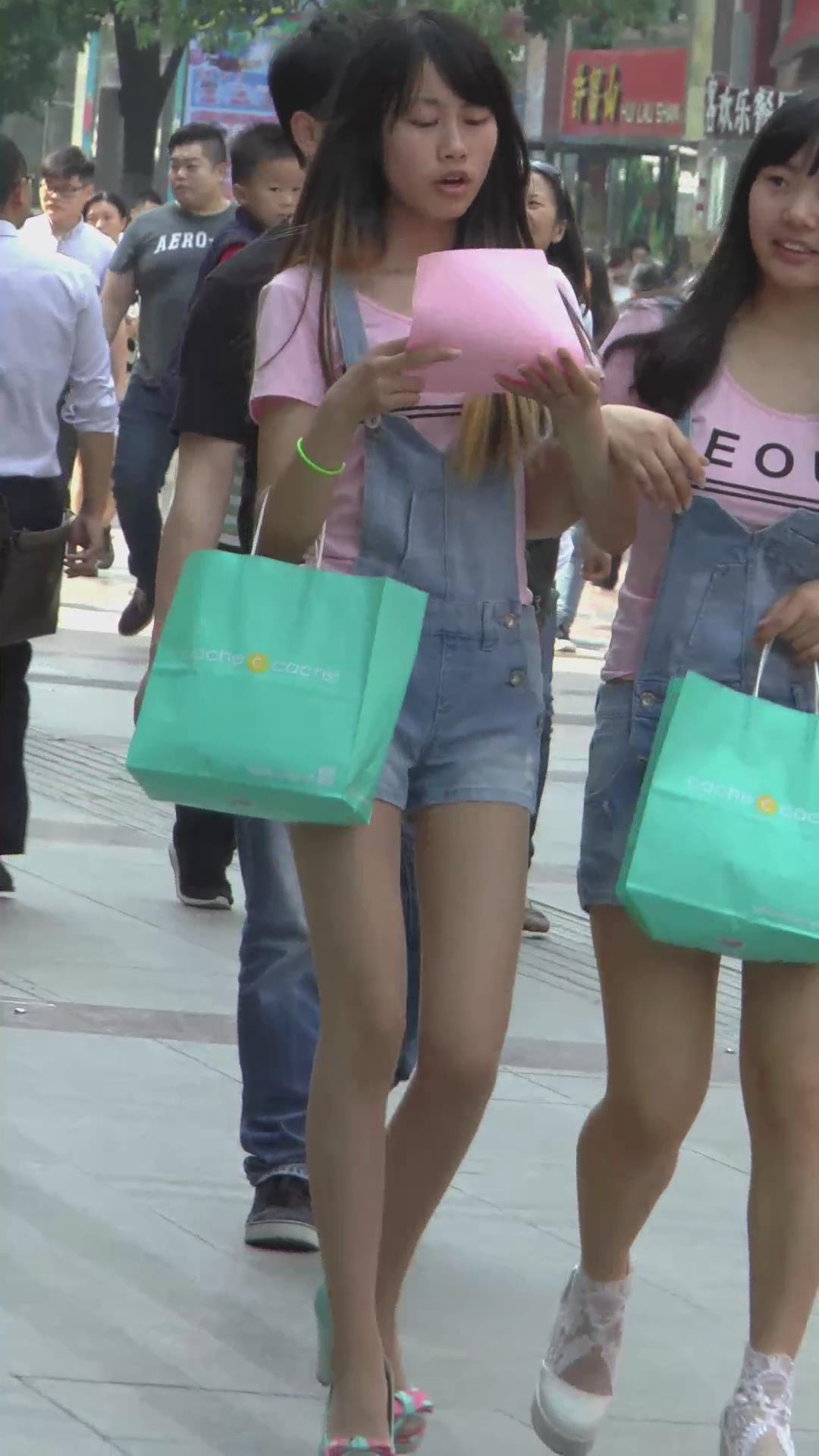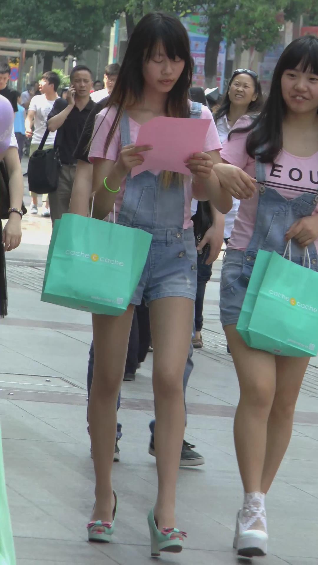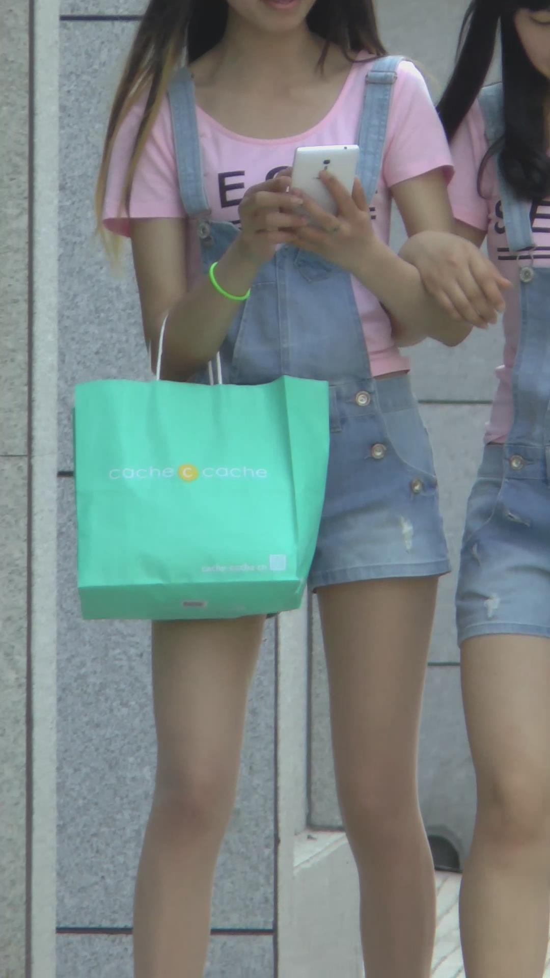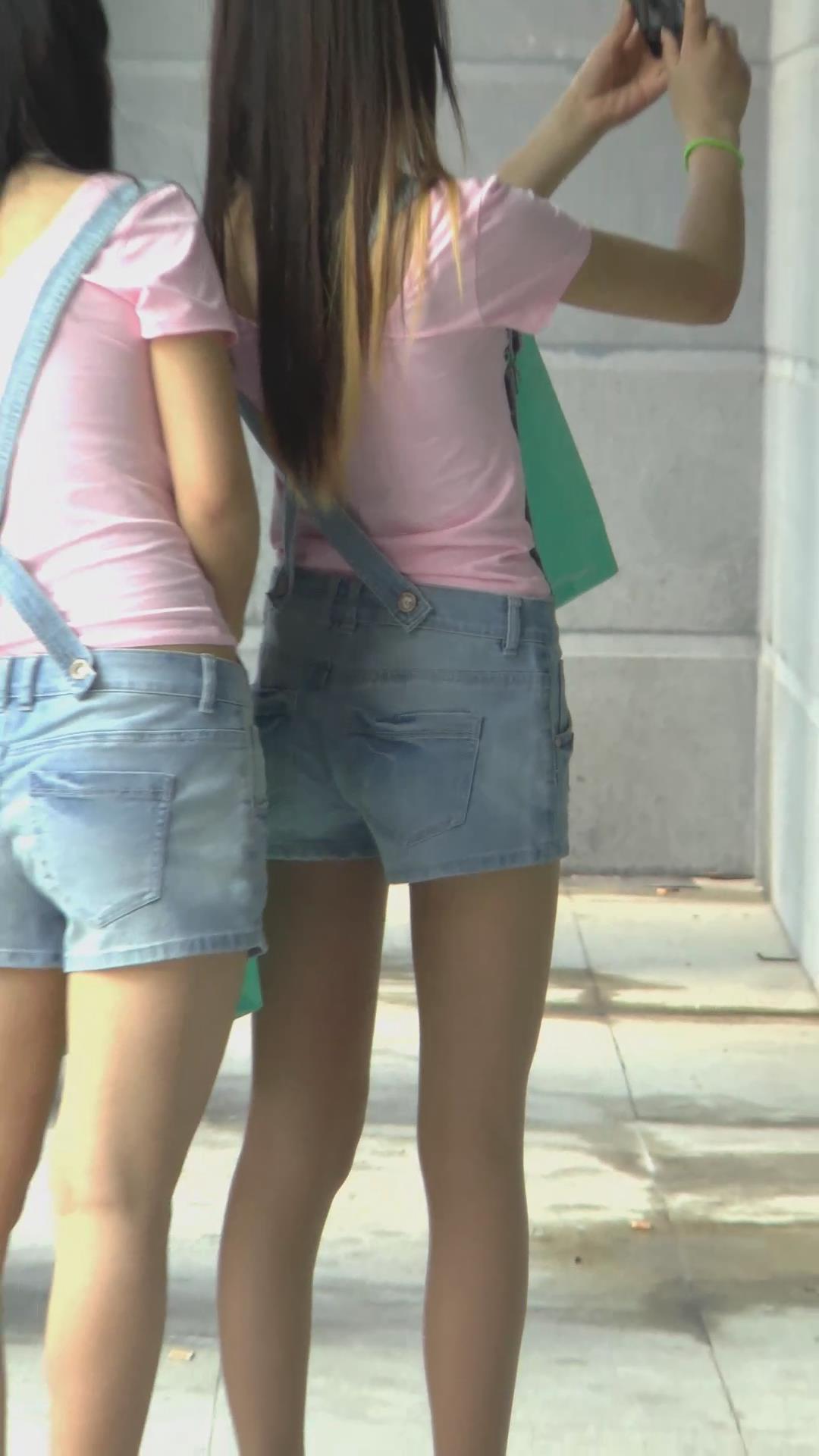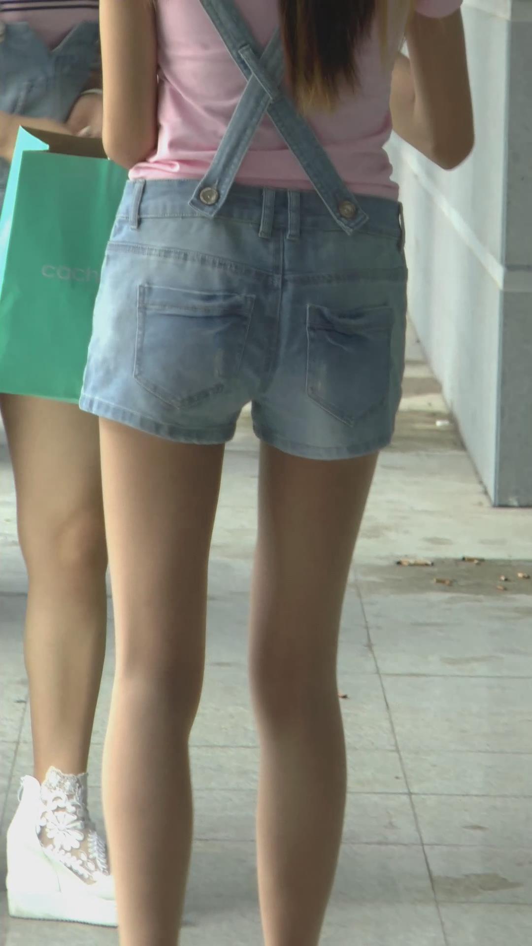 街拍肉丝袜牛仔热裤小妹,衣服一样 编号4467